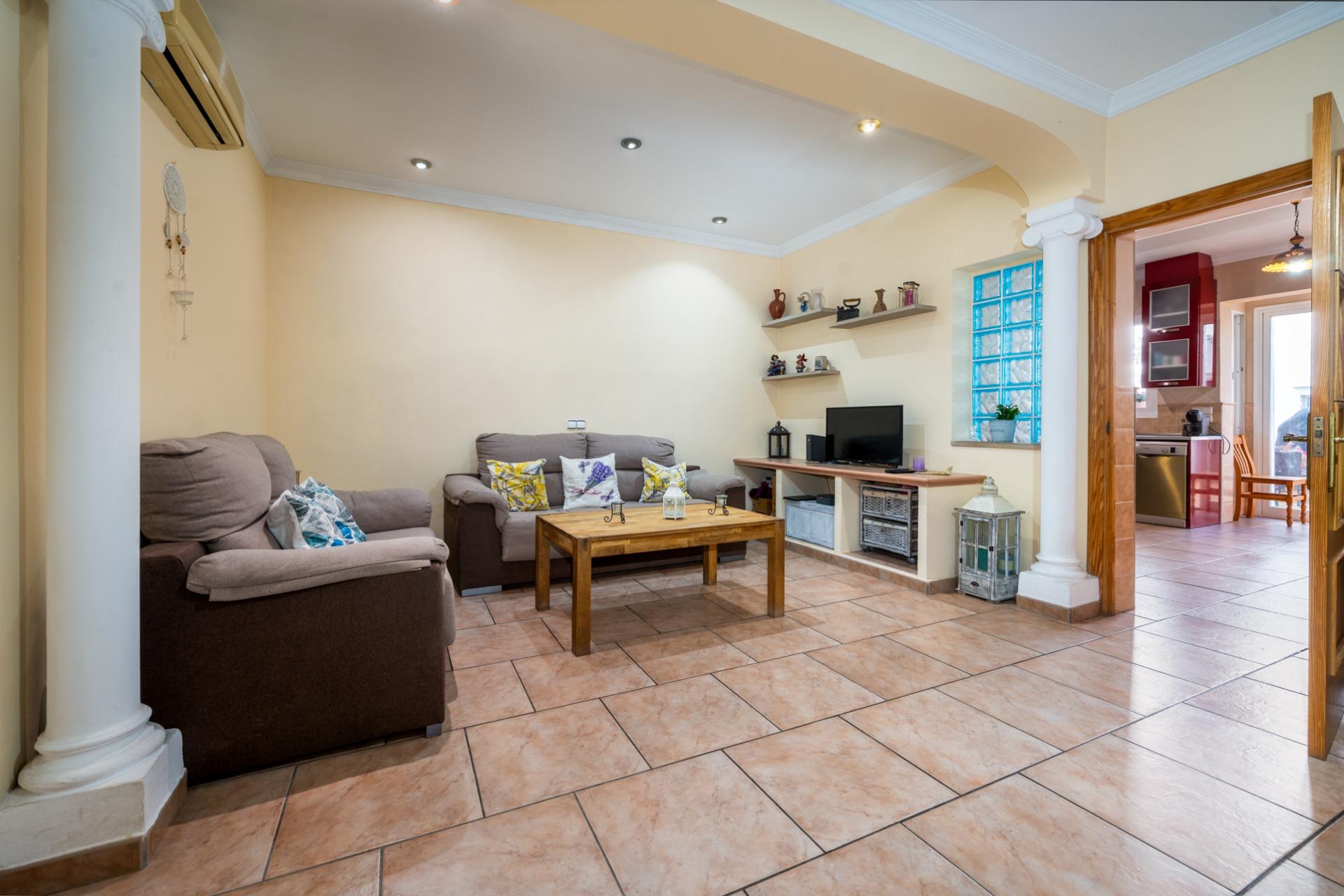 Se vende bonita planta baja de 76 m2 para entrar a vivir! Consta de 3 habitaciones, 1 bao completo con baera, cocina amueblada e independiente con prctica despensa y saln comedor con aire acondicionado fro- calor. Desde la cocina tenemos acceso a un fantstico patio interior que nos da acceso una estancia que se puede aprovechar como trastero, sala de juegos, zona de estudio, etc y otra habitacin que a da de hoy se emplea como zona de coladura y aseo exterior. Desde el mismo patio, mediante unas escaleras, tenemos acceso a una terraza tipo solarium Entre otras calidades, la propiedad posee solados de gres rstico, aire acondicionado fro- calor en el recibidor, termo de butano, carpintera interior de madera y exterior de aluminio con climalit. La finca es tranquila ya que tiene pocos vecinos y lo mejor es que no hay gastos comunitarios! Todos los contadores son individuales, brindndote total independencia sobre tus suministros. Precio: 360.000 euros.
