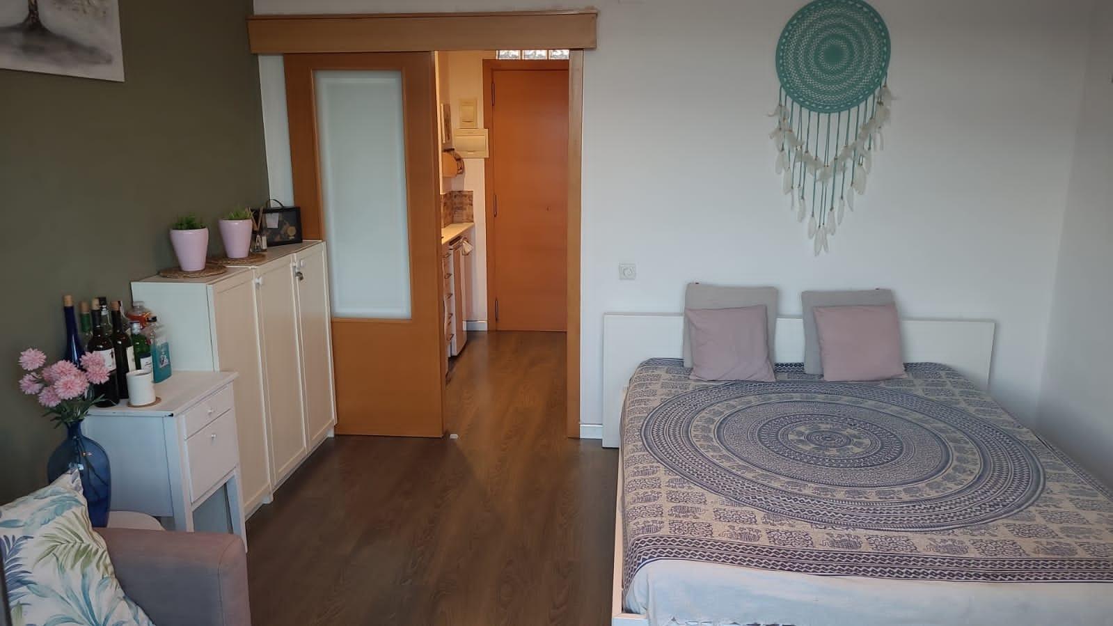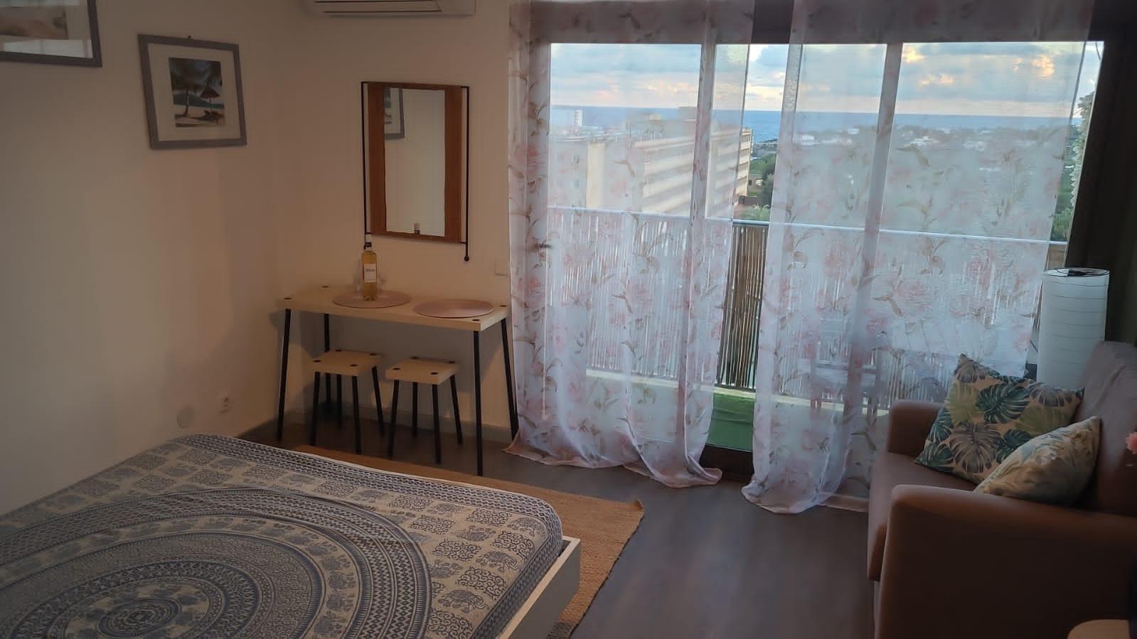MANACOR- CALAS DE MALLORCA- Se vende estudio reformado, ubicado en un edificio con ¡piscina comunitaria! Dispone de 32 m2 construidos, divididos en recibidor, cocina amueblada, baño completo con ducha y salón comedor desde el cual accedemos a un balcón con orientación sureste que nos proporciona vistas al mar. La vivienda está situada en una séptima altura, en último piso y la finca dispone de dos ascensores. Entre otras calidades la vivienda dispone de aire acondicionado frío-calor, termo eléctrico y solados de parquet. NO TIENE HABITACIÓN. Contadores de luz y de agua individuales. Precio: 144.900 euros.