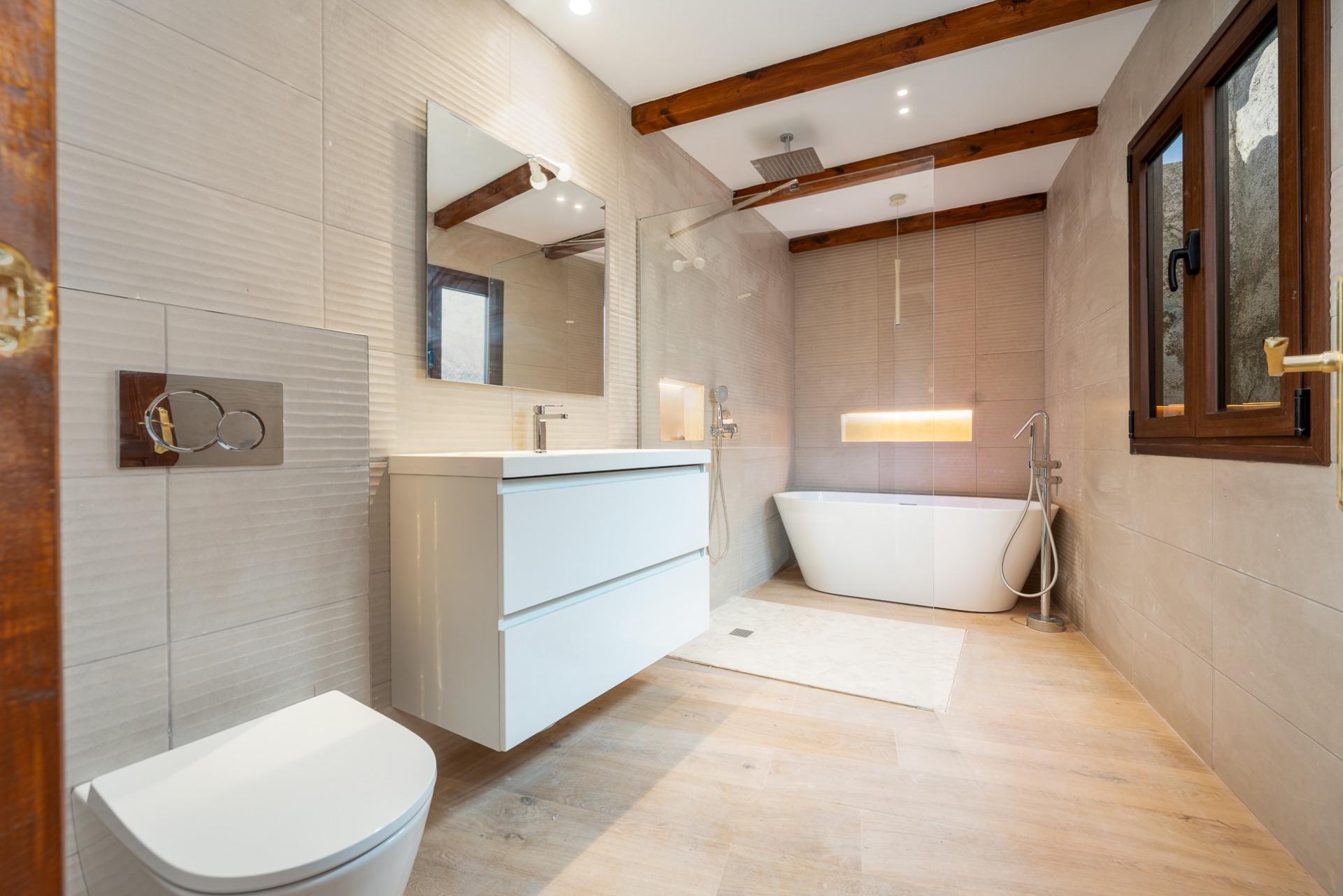 Entre otras calidades, encontramos carpintería exterior de PVC y climalit en su mayor parte, solados de gres en la planta baja y tarima flotante en la planta piso y la buhardilla, aire acondicionado con bomba de calor en la habitación principal y tejado nuevo.