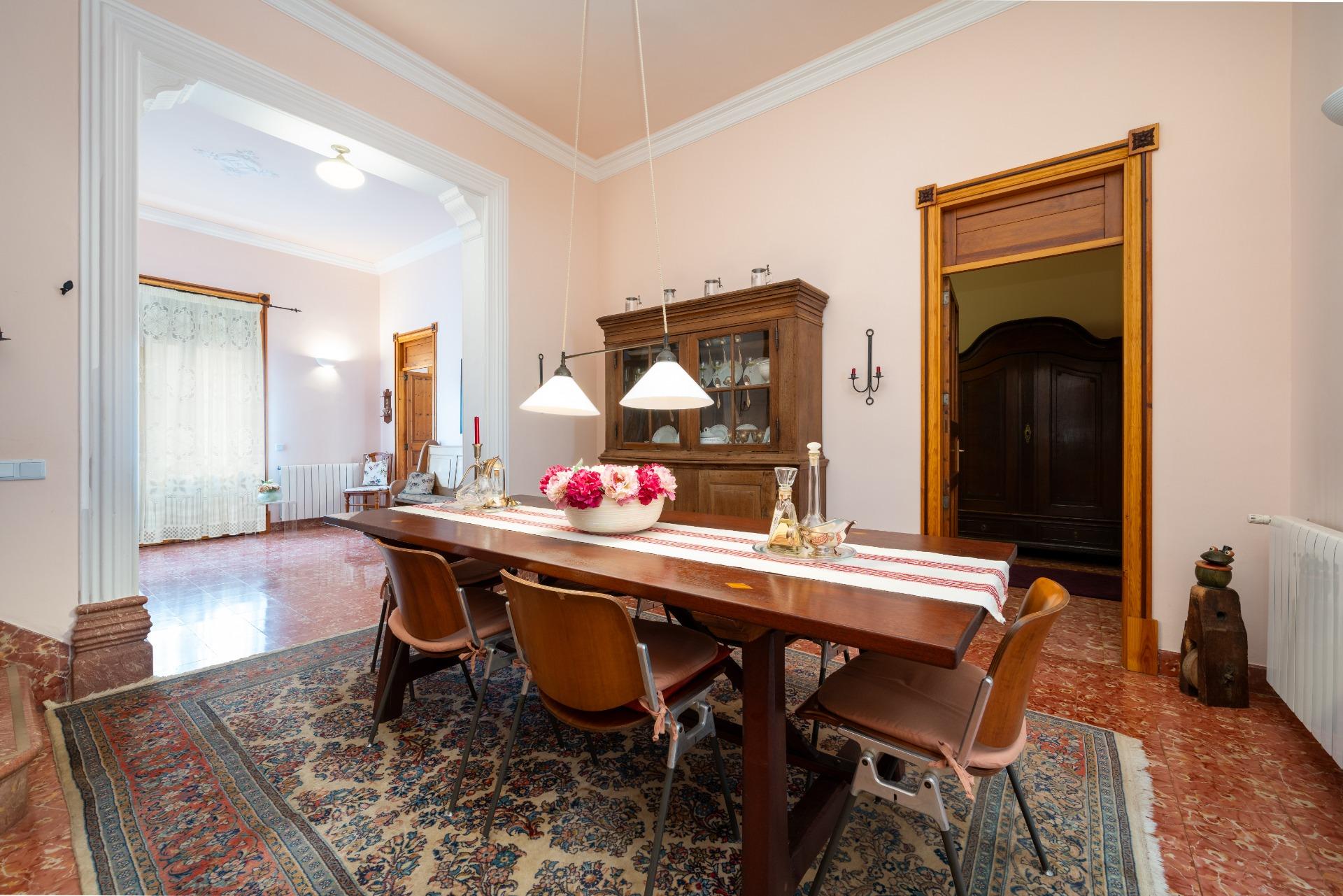 CAMPOS. Discover this magnificent property located in the heart of Campos, where tradition meets modernity. This impressive house completely renovated in 2014 has a built area of 307 m² and a usable area of 252 m², preserving the typical architectural elements that give it its incomparable charm. Enjoy its authentic character thanks to its hydraulic floors and doors and windows made of fine wood. The house has five bedrooms, four of which are on the ground floor, as well as other open-plan spaces such as the library and TV room, ideal for the whole family. It also has two full bathrooms and a half bathroom with a large shoe rack for added convenience. Its south-west orientation allows you to enjoy the sun throughout the day while relaxing in the courtyard with a small vegetable garden, or in the first-floor lounge on cooler, rainier days with a cosy library perfect for quiet moments. To save electricity, solar panels are used to heat water. Don't forget to explore the small wine cellar where you can taste your wines, and make efficient use of the water collected in the cistern designed to store rainwater used in both bathrooms and the kitchen. The location is unbeatable: on a very quiet street with all amenities just a few metres away, and only 11 km from the most beautiful beaches in Mallorca, allowing you to enjoy the beach without sacrificing tranquillity or rural style. Contact us at Inmogestión Balear Campos. Martin Tel.: +34 616 600 446 for more information or to arrange a viewing without obligation.