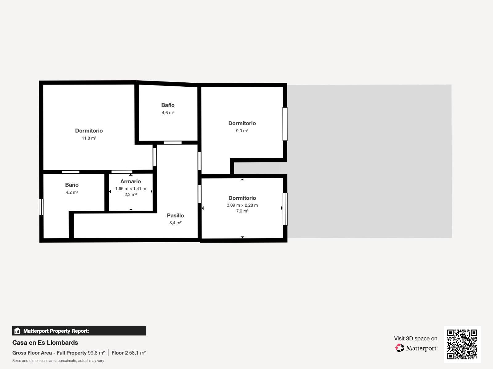 La zona de descanso se sitúa en la primera planta, con 3 habitaciones (2 dobles y 1 individual) y 2 baños, uno de ellos en suite. El dormitorio principal ofrece además espacio para vestidor.