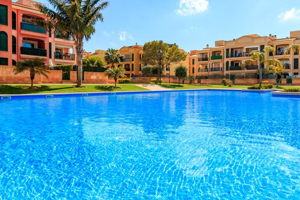 The complex features well-maintained communal pools and gardens, in a peaceful setting. Bus service and golf course nearby.