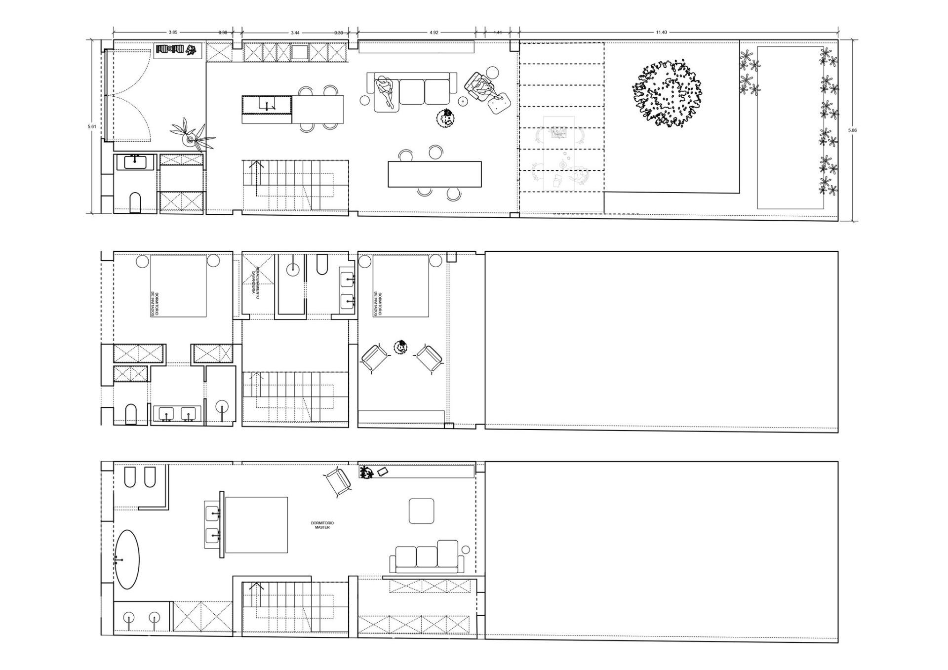 Espacio abierto y acogedor que integra cocina con isla, comedor y saln con salida directa al patio. Este espacio exterior ha sido concebido como una extensin natural del interior: un lugar para leer, compartir comidas al sol o refrescarse en la piscina durante los das de verano. Tambin se ha previsto un aseo de cortesa y zona de almacenamiento. Si se requiriese, existe la posibilidad de aadir una plaza de parking aprovechando la superficie edificable en detrimento del patio.