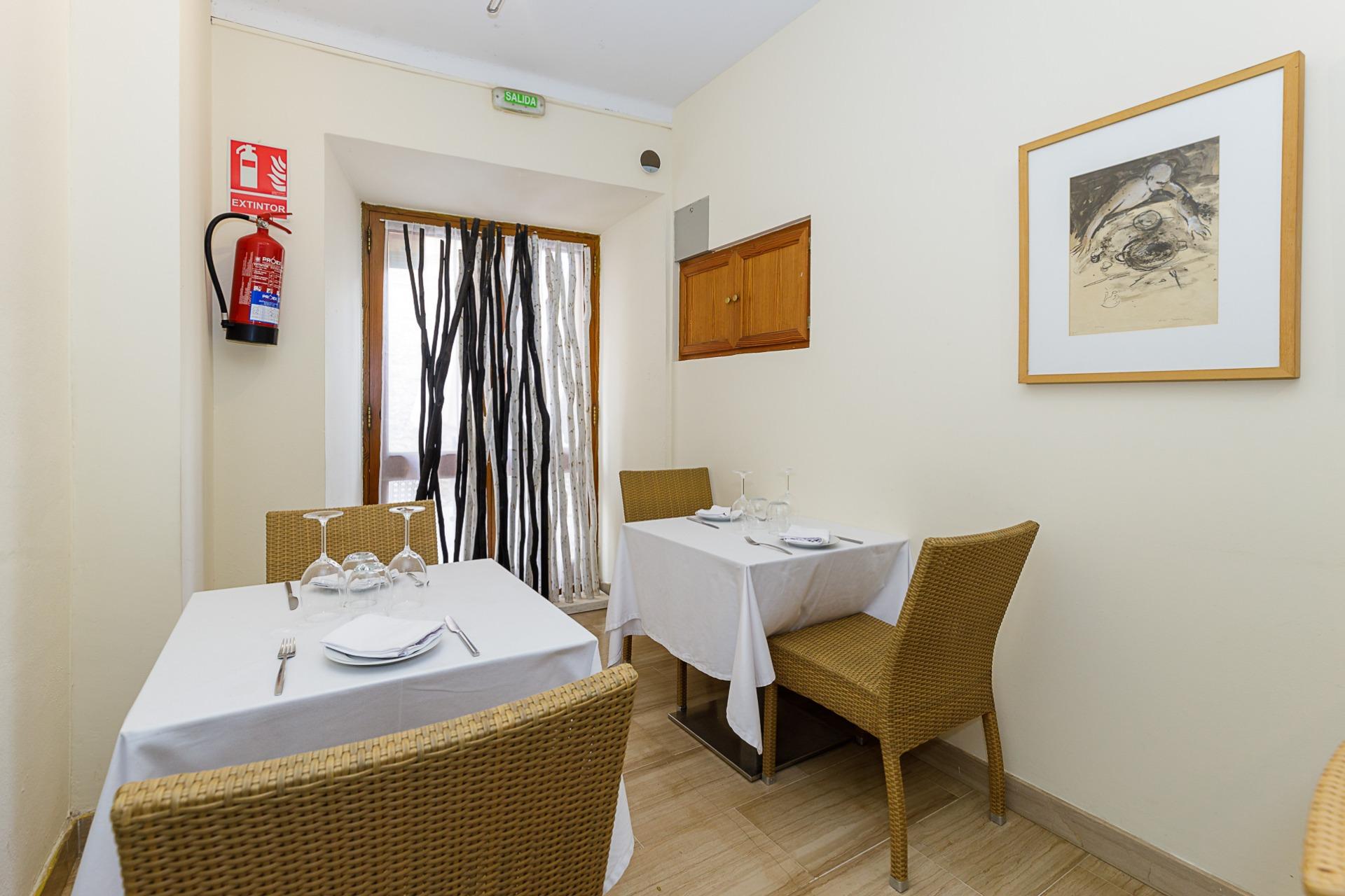 Listo para operar con el siguiente inventario: Cocina de 4 fogones, plancha 30x50cm, lavavajillas, lava-vasos, nevera alta vino blanco, 3 neveras medias vino tinto, 1 horno con 5 fogones, nevera industrial doble puerta, 2 microondas, nevera baja conservación doble puerta, mesa platos calientes, nevera baja 2 puertas, nevera alta refrescos, 2 frigoríficos, 2 congeladores horizontales y 1 vertical, mobiliario interior (mesas y sillas) para 40 comensales y mesas y sillas exteriores para terraza. (Precio inventario: 30.000€ negociables).