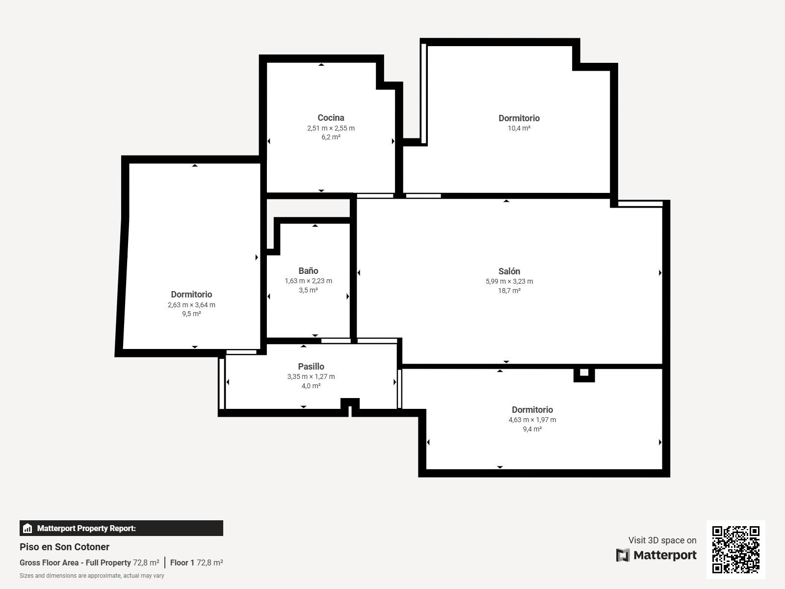 Te presentamos esta acogedora vivienda situada en la tranquila zona de Son Cotoner. Se trata de un cuarto piso SIN ASCENSOR ideal para quienes buscan un hogar funcional y bien ubicado. La propiedad se vende amueblada y cuenta con 3 habitaciones, dos de ellas dobles y una individual, perfectas para una familia, despacho o cuarto de invitados. Dispone de un baño completo y una cocina equipada, lista para entrar a vivir. El salón-comedor tiene acceso a un pequeño balcón que aporta luz natural y ventilación. Además, el edificio cuenta con una terraza comunitaria, ideal para disfrutar del aire libre. La vivienda se encuentra en buen estado, con suelo de gres y tarima flotante, aire acondicionado frío/calor, y carpintería exterior mixta de madera y Climalit, que ofrece un buen aislamiento térmico y acústico. Como extra, incluye un trastero privado. Una opción interesante en una zona bien comunicada, con todos los servicios cerca y a pocos minutos del centro de Palma. Precio: 285.000€