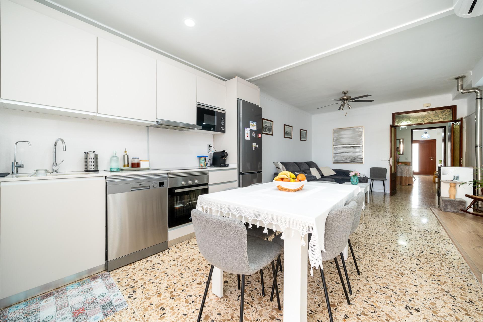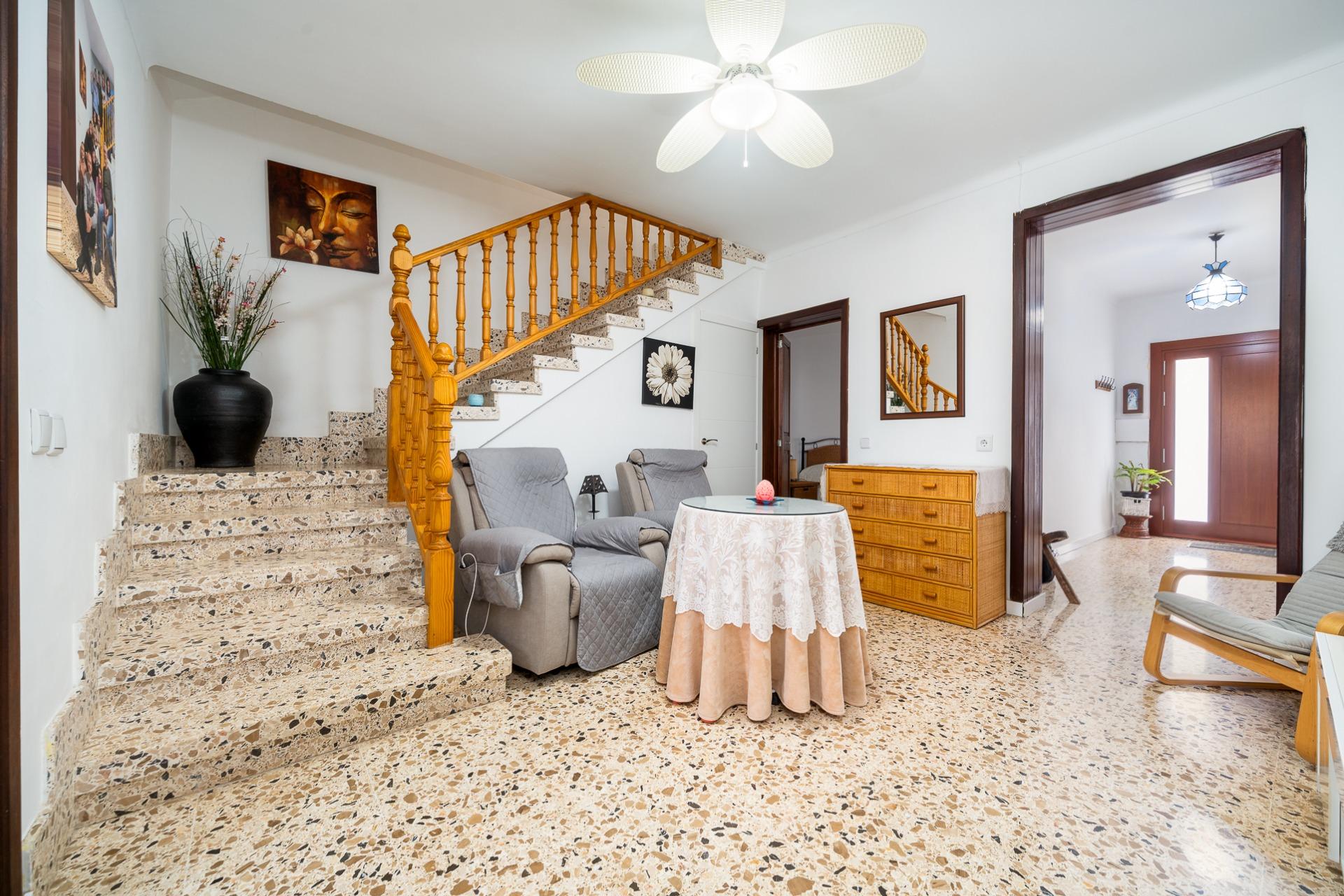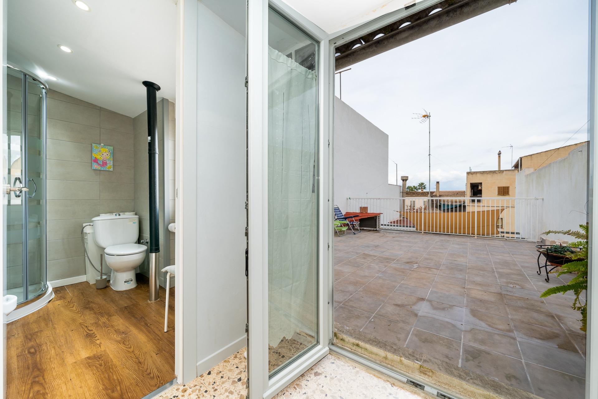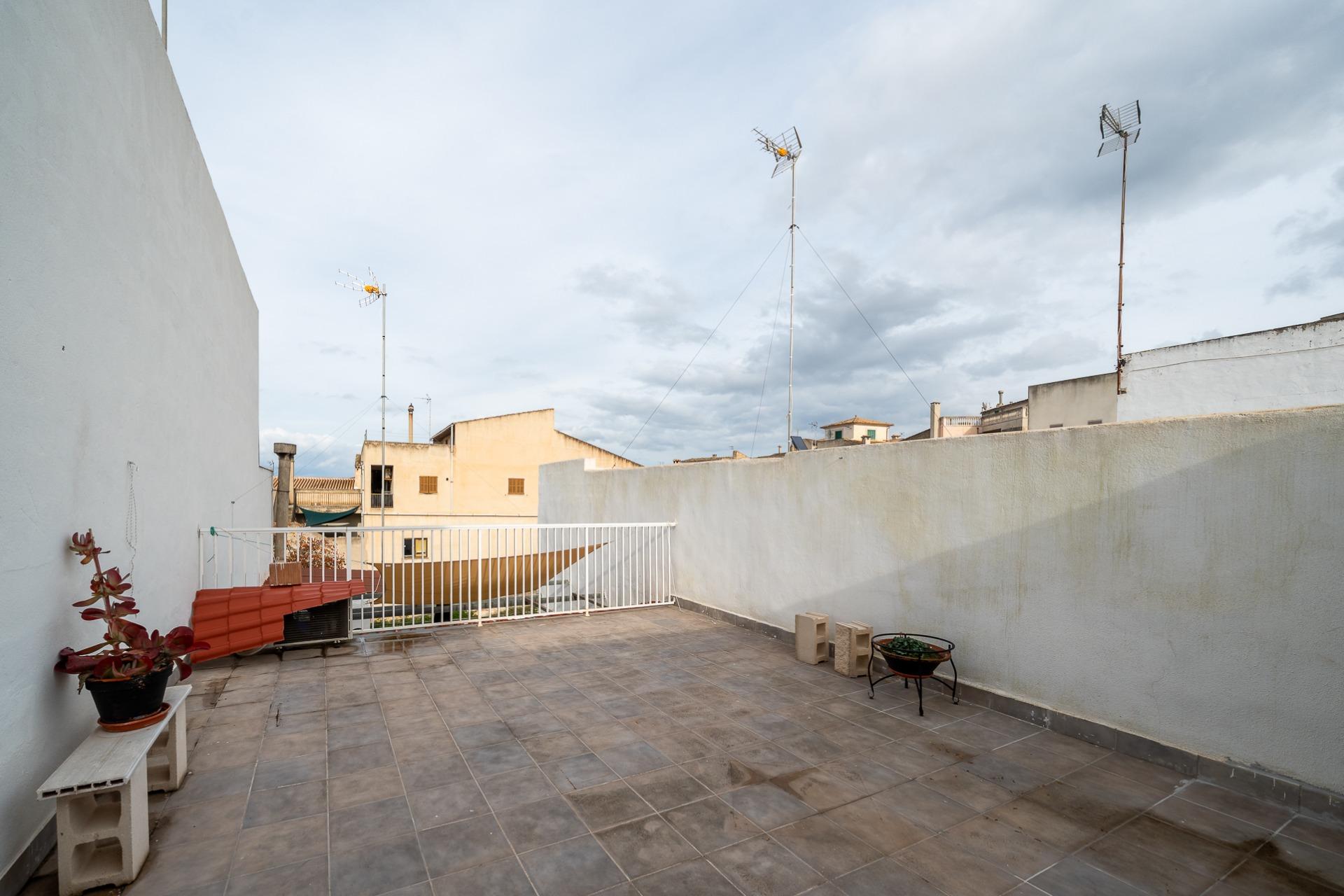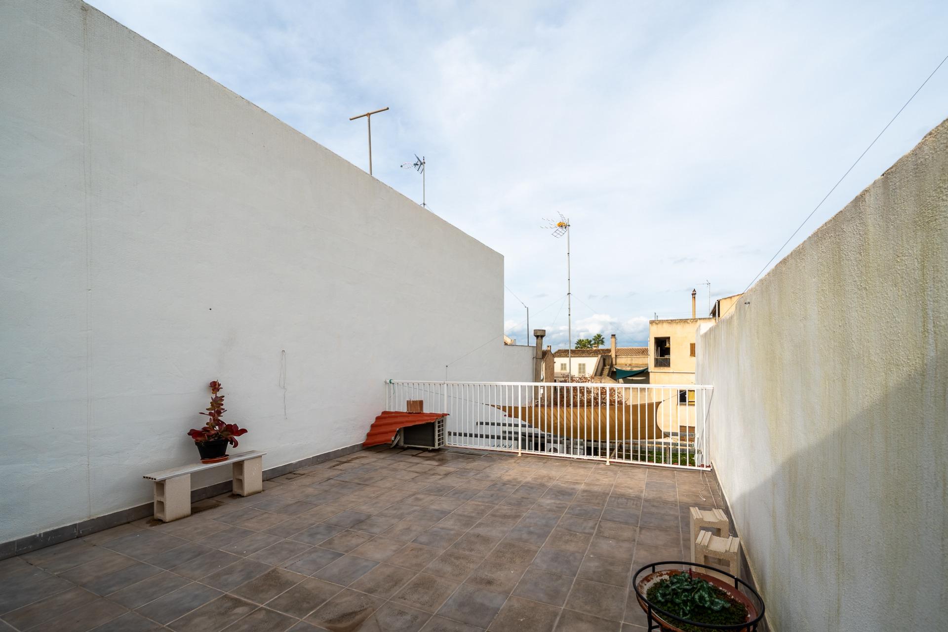 MARÍA DE LA SALUD- PLAÇA DEL POU. Se vende casa de pueblo de 178 m2 construidos, distribuidos en dos plantas más un práctico sótano que ofrece múltiples posibilidades. En la planta baja se ubica un amplio recibidor, una habitación doble, 1 baño completo, salita, comedor equipado con estufa de pellet y cocina amueblada desde donde se accede a un acogedor patio interior ideal para disfrutar momentos al aire libre. La planta piso alberga dos habitaciones dobles (una dotada con vestidor) junto a otro baño completo con ducha y terraza privada. El sótano es versátil e incluye espacio suficiente para aparcar varios vehículos, así como zona adicional destinada al almacenaje y bodega personal. Entre las características destacadas encontramos aire acondicionado frío- calor garantizando confort durante todo el año, suelos de terrazo y gres, carpintería interior lacada en blanco y la exterior de aluminio. Precio: 375.000 euros.