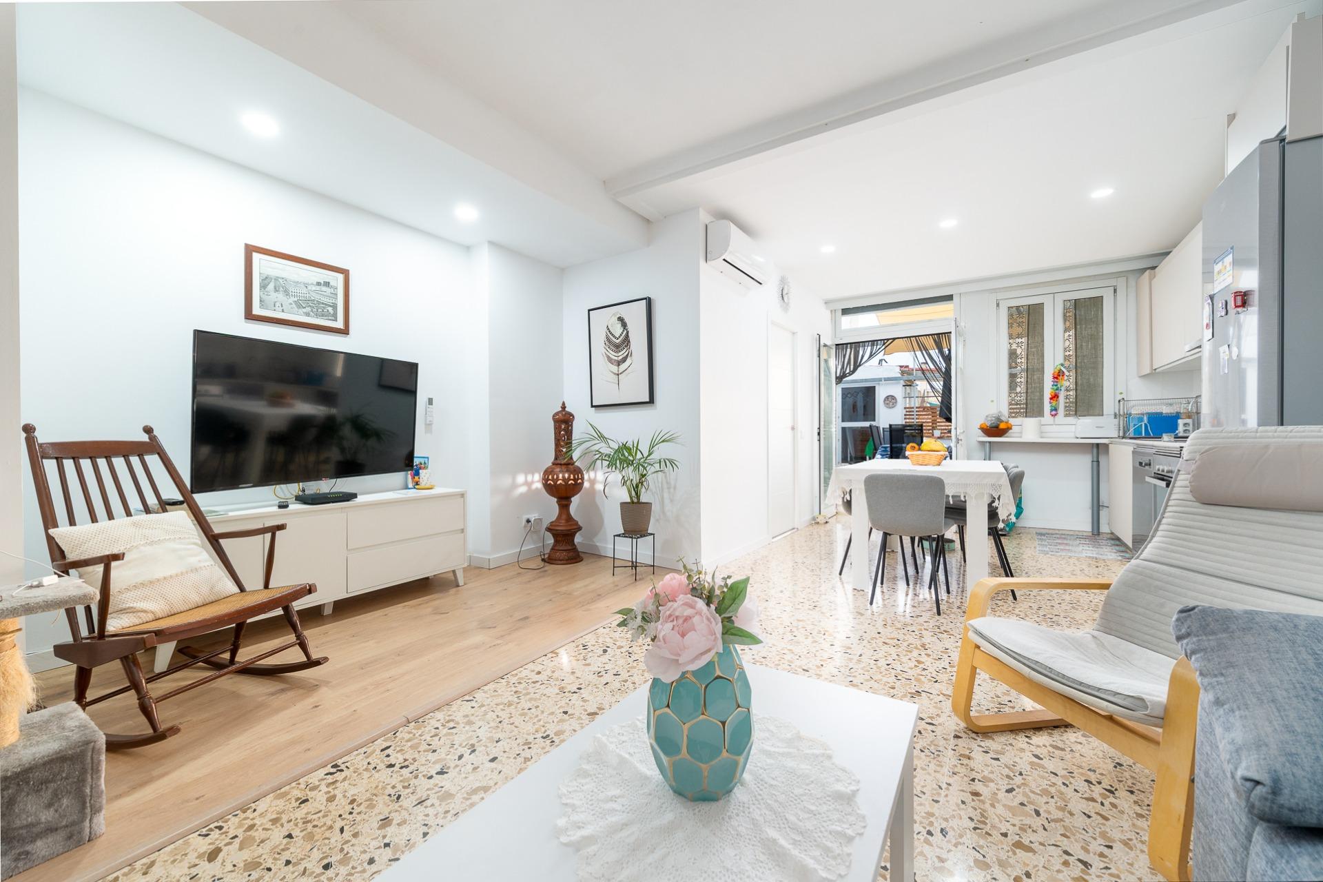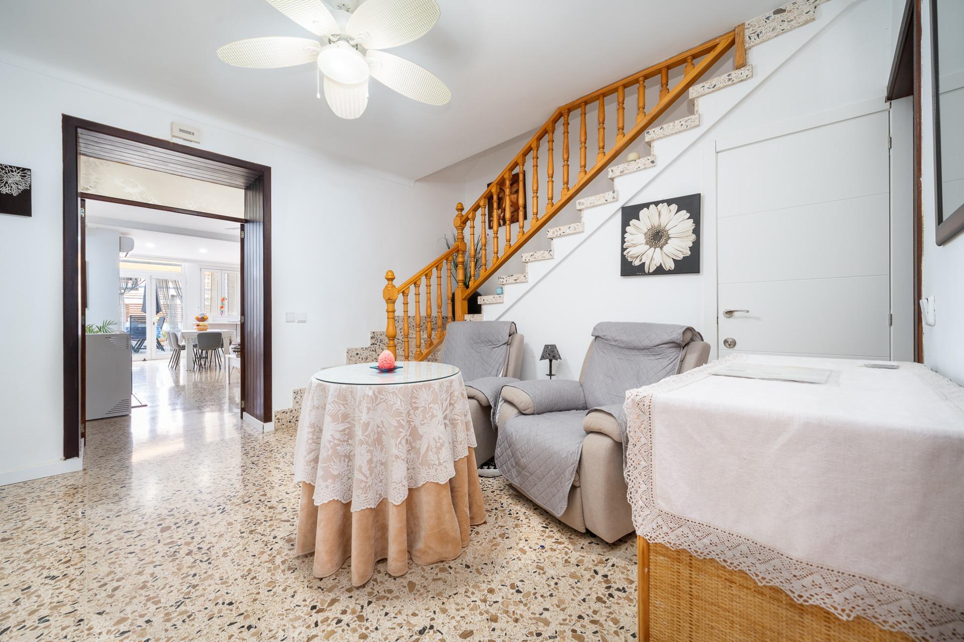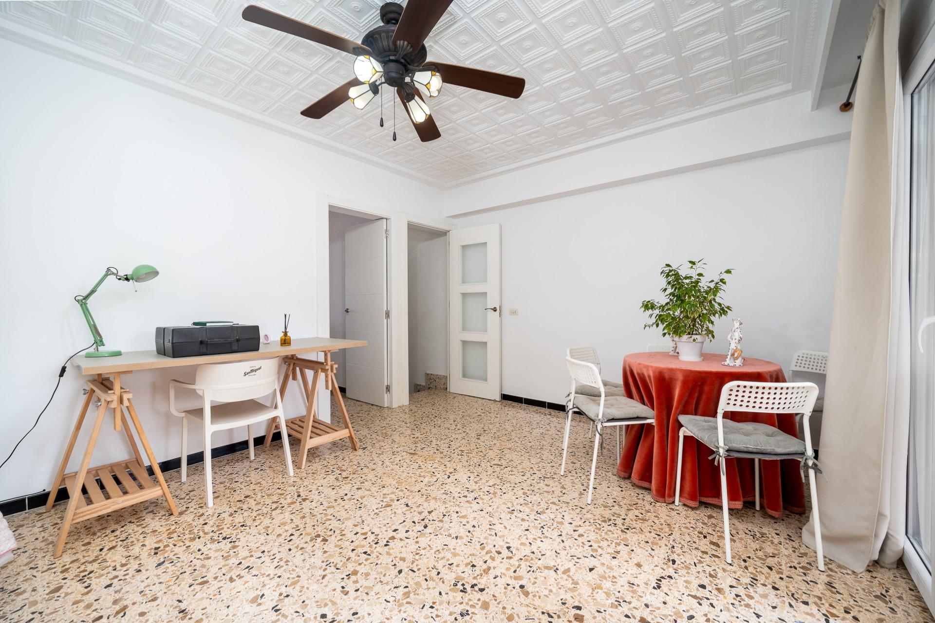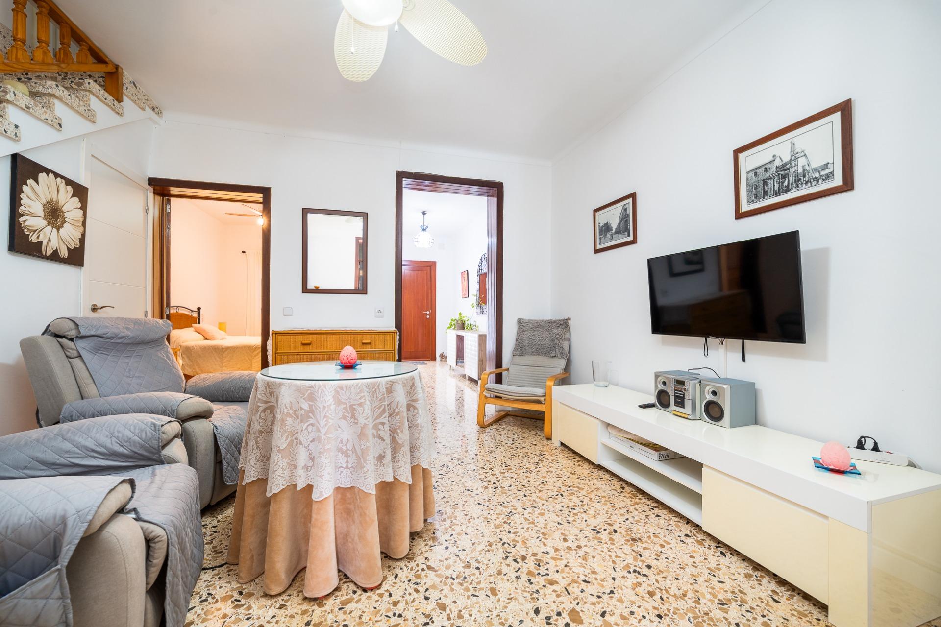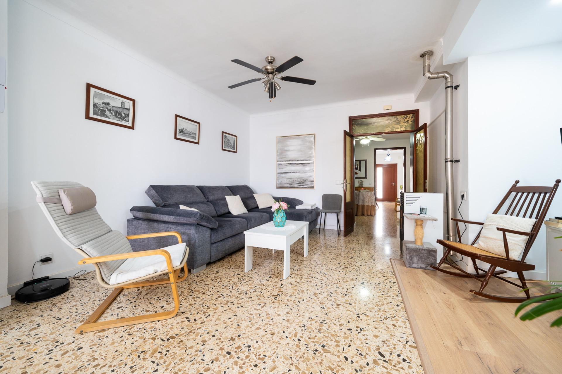 MARÍA DE LA SALUD- PLAÇA DEL POU. Se vende casa de pueblo de 178 m2 construidos, distribuidos en dos plantas más un práctico sótano que ofrece múltiples posibilidades. En la planta baja se ubica un amplio recibidor, una habitación doble, 1 baño completo, salita, comedor equipado con estufa de pellet y cocina amueblada desde donde se accede a un acogedor patio interior ideal para disfrutar momentos al aire libre. La planta piso alberga dos habitaciones dobles (una dotada con vestidor) junto a otro baño completo con ducha y terraza privada. El sótano es versátil e incluye espacio suficiente para aparcar varios vehículos, así como zona adicional destinada al almacenaje y bodega personal. Entre las características destacadas encontramos aire acondicionado frío- calor garantizando confort durante todo el año, suelos de terrazo y gres, carpintería interior lacada en blanco y la exterior de aluminio. Precio: 375.000 euros.