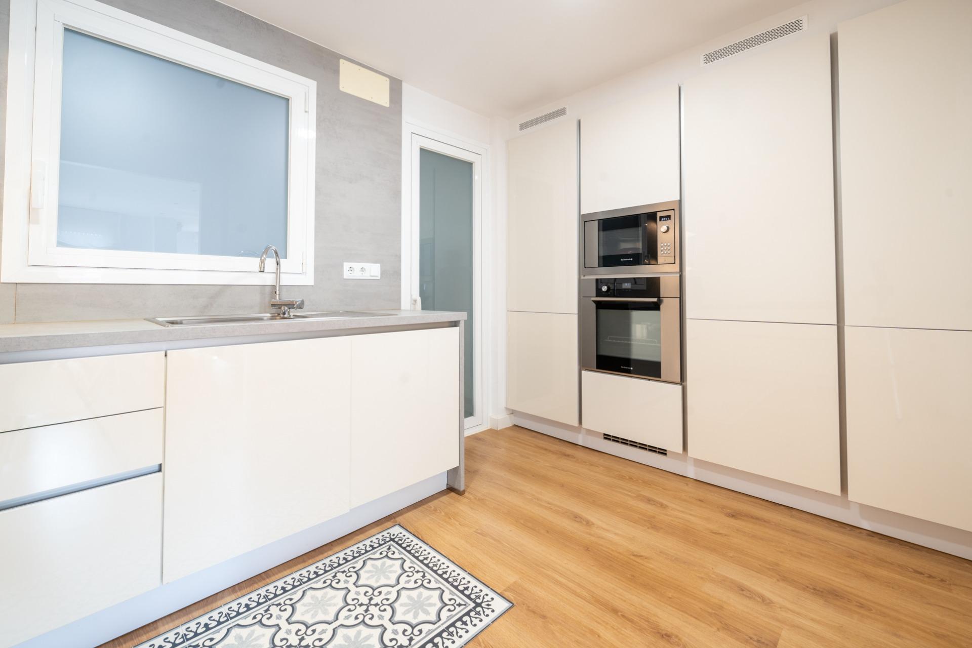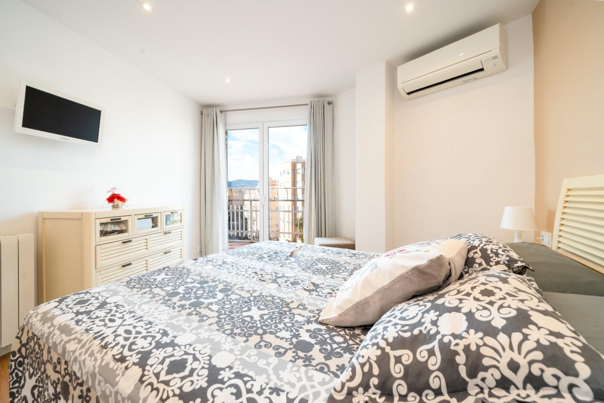 El inmueble está estratégicamente distribuido en cuatro habitaciones dobles bien iluminadas, ideales para familias o para quienes buscan espacio adicional, con armarios empotrados en todas las habitaciones, para optimizar el espacio. Cuenta también con dos baños completos, uno de ellos en suite con ducha y otro para invitados con bañera. Dispone también de zona de coladuría, con lavadora y secadora, así como una pila para lavar a mano las prendas más delicadas.