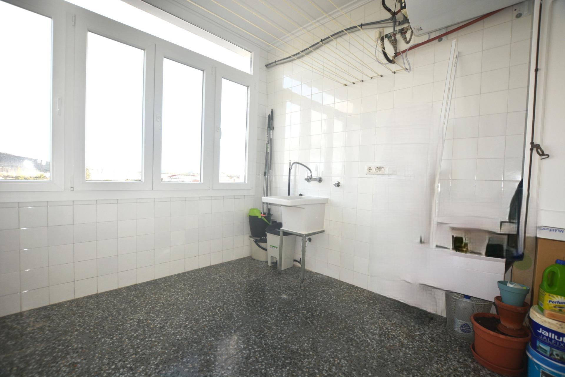 El pasillo acaba en el lavadero de muy buen tamaño, completamente cerrado en climalit y con las tan deseadas vistas as barranc de S´Engolidor. En dicho lavadero tenemos el termo que se calienta con placas solares que se encuentran en la azotea comunitaria del inmueble.