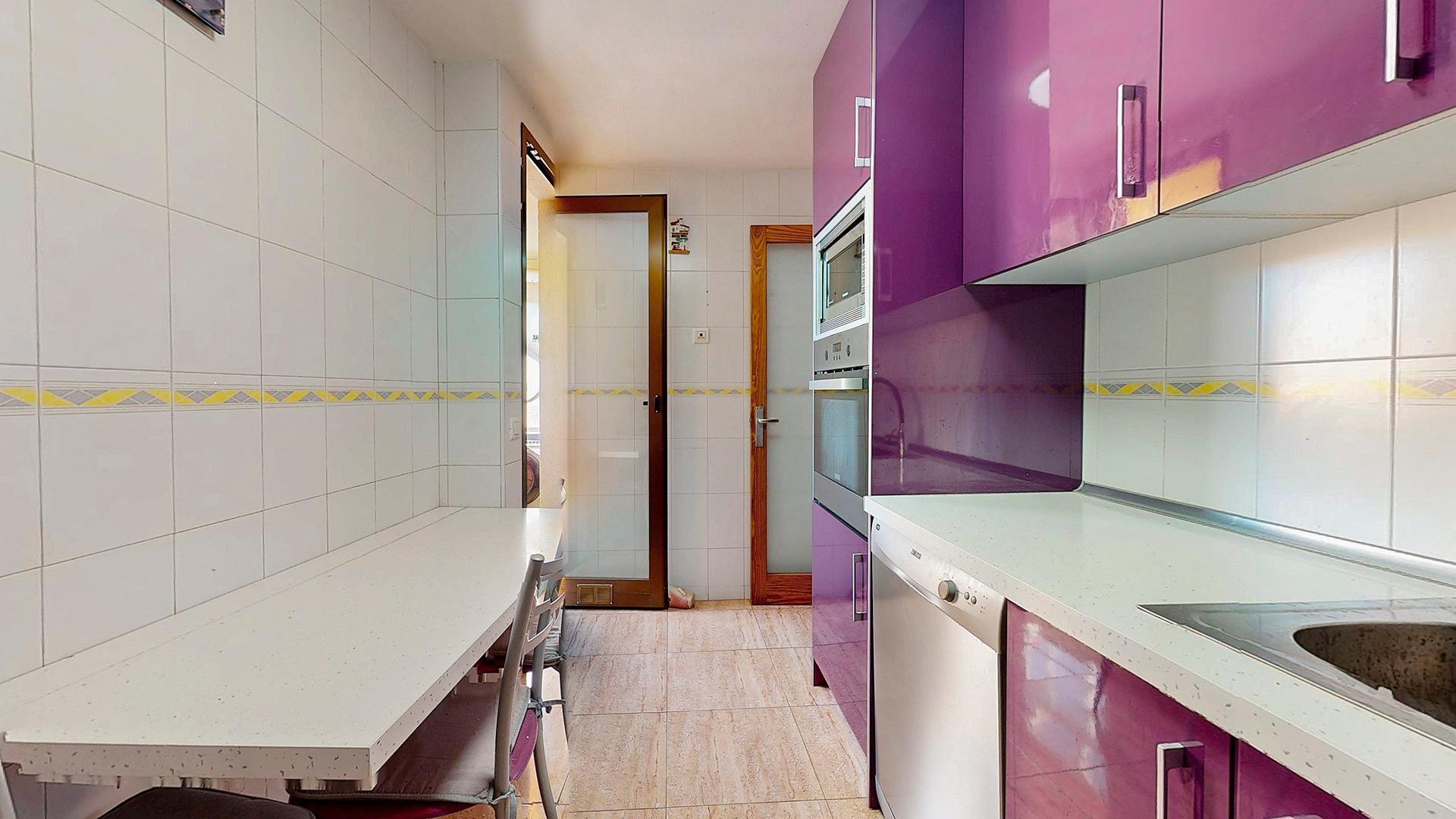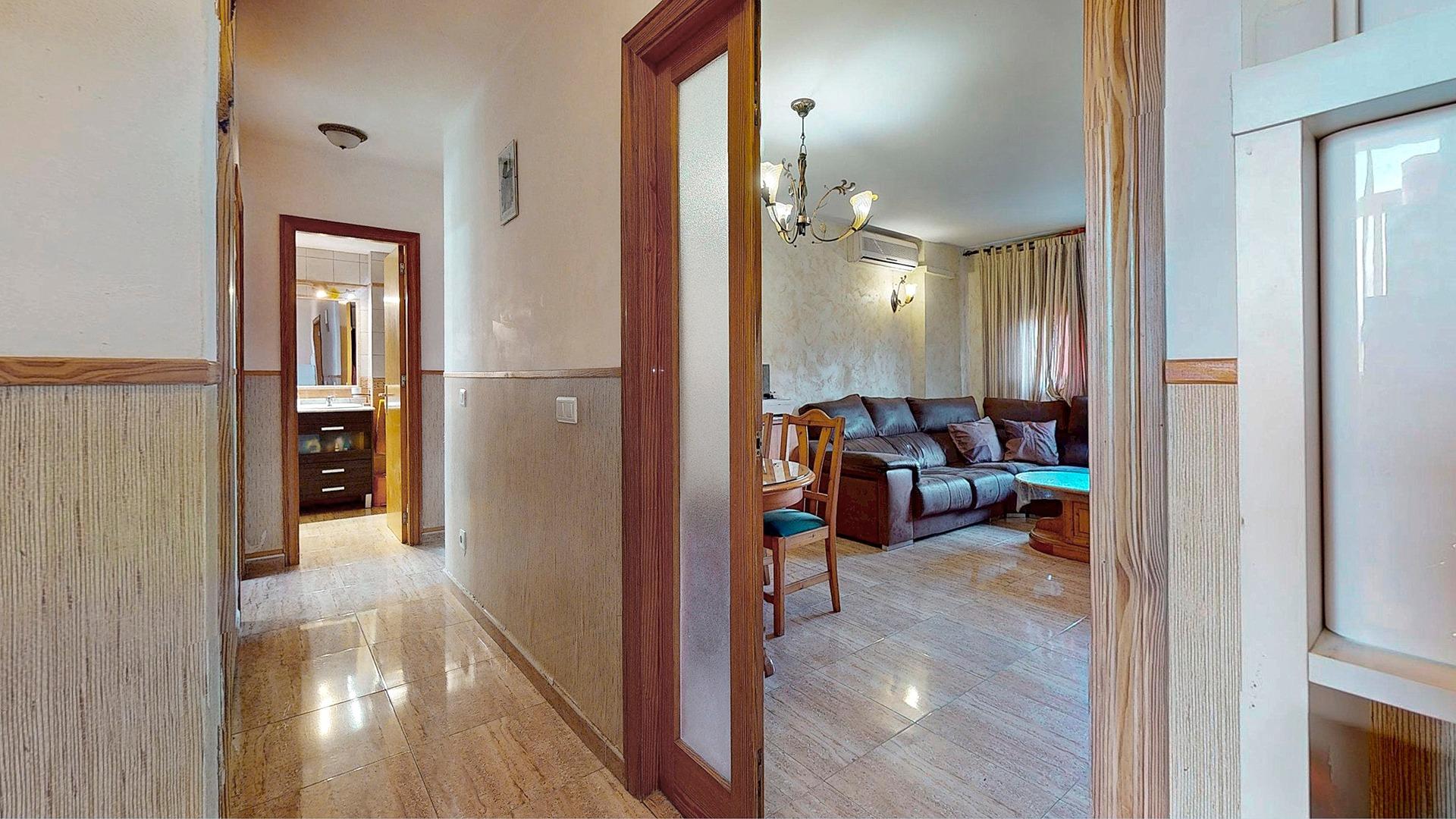 La vivienda se distribuye desde un pasillo / recibidor central. Las estancias principales son el salón comedor, con acceso a un balcón a pie de planta y la cocina independiente con una coladuria amplia y luminosa.