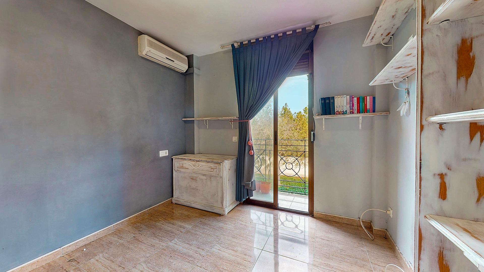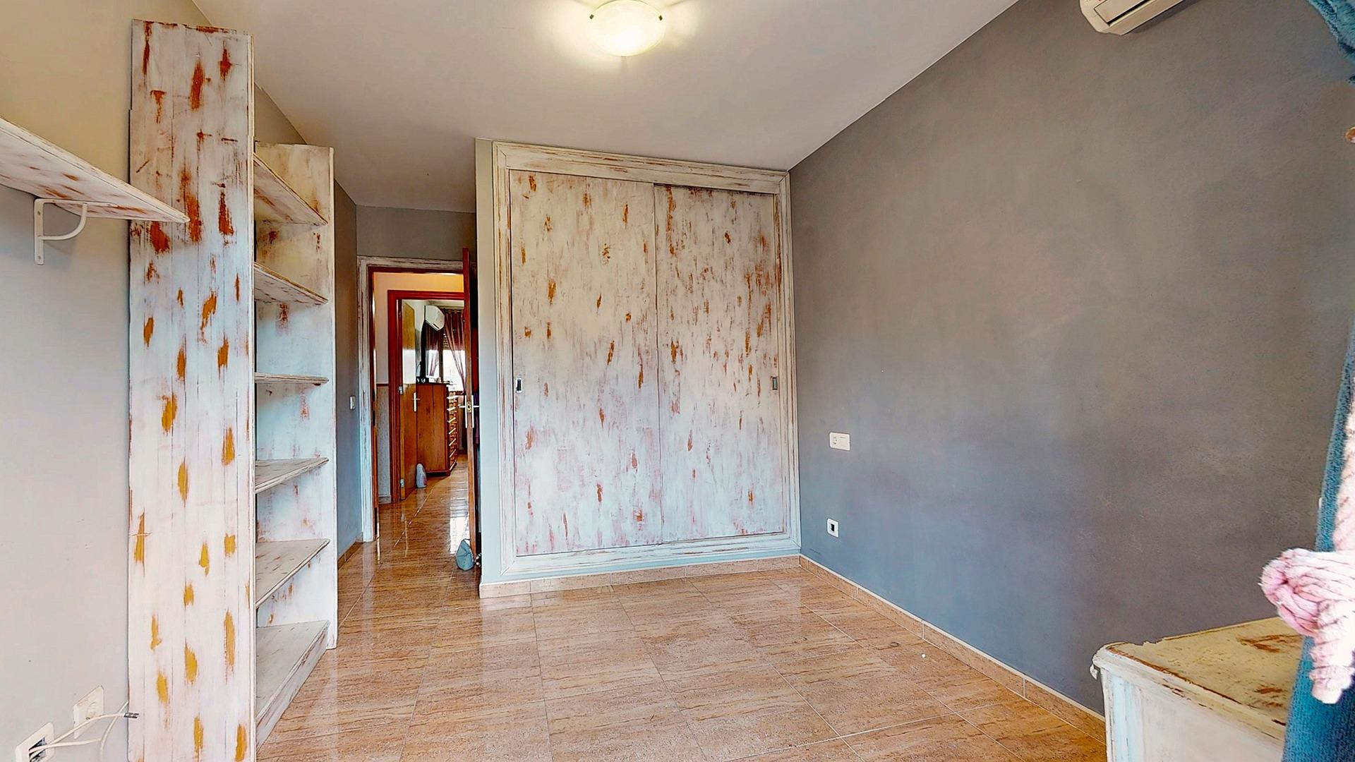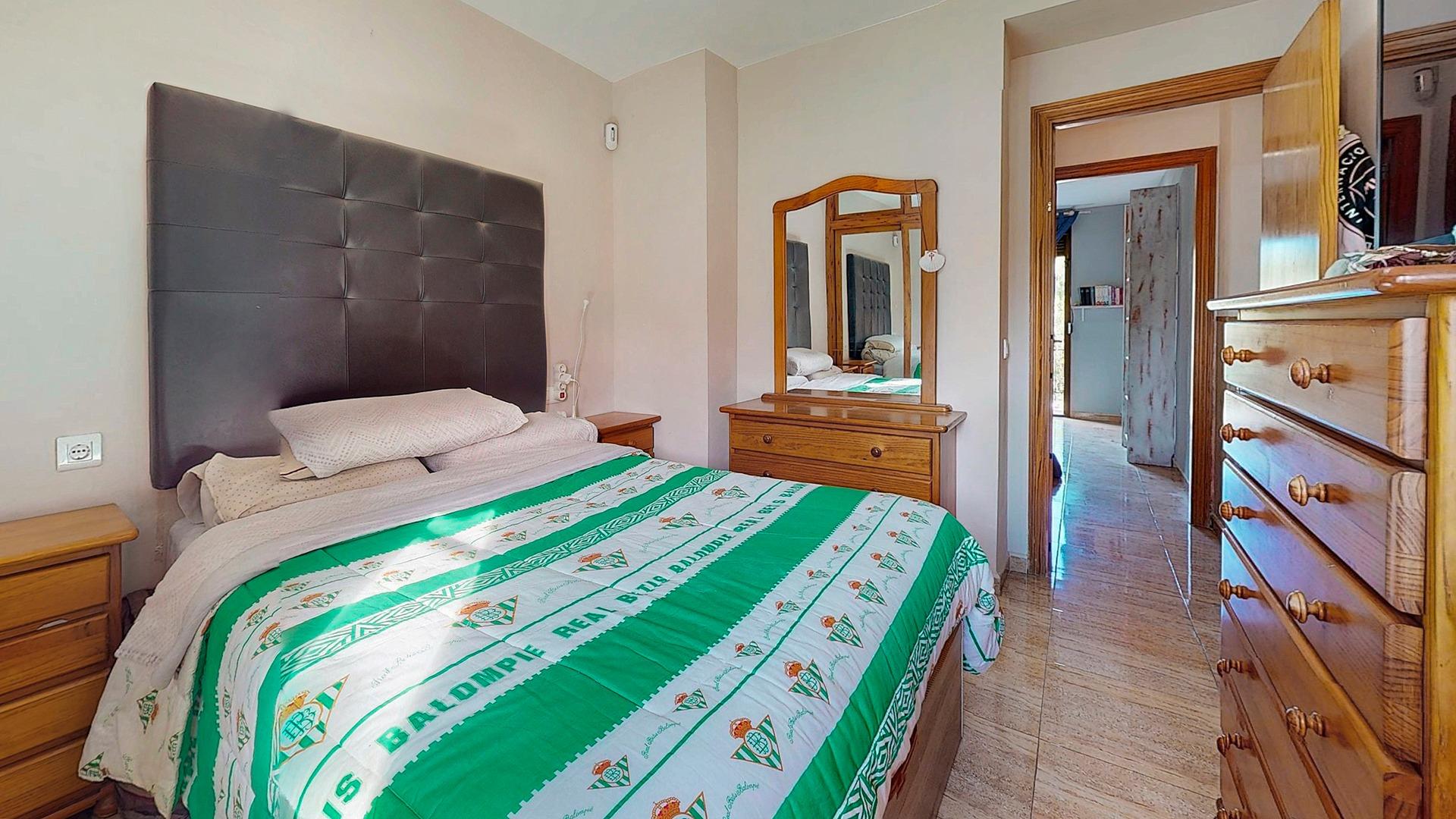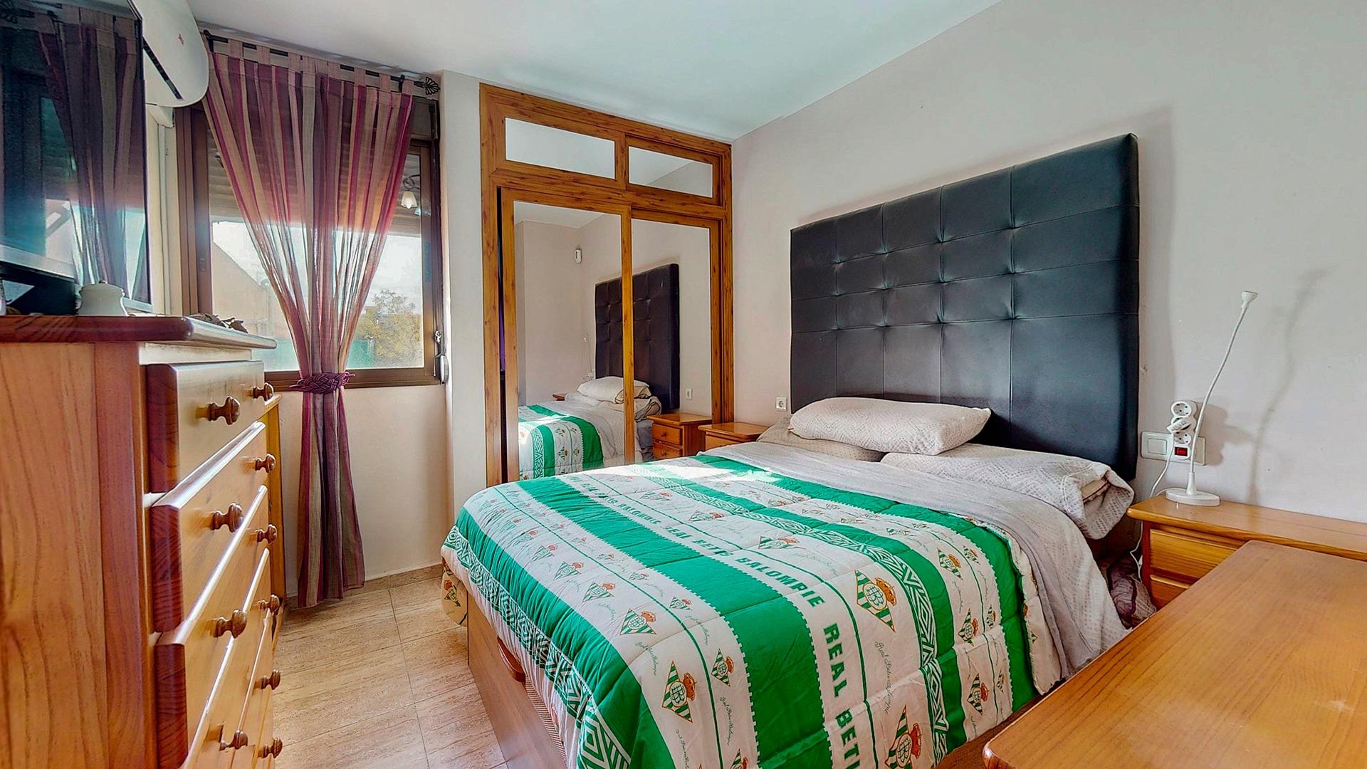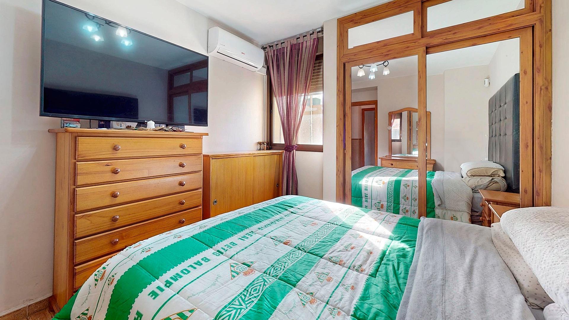 Cuenta con tres habitaciones. Dos de ellas son dobles (una de ellas con balcón privado) y la tercera estancia, una habitación individual, se utiliza actualmente como almacenamiento. Todas las habitaciones están equipadas con armarios empotrados y sistema de bomba frío/calor (aire acondicionado), garantizando confort en cualquier estación. Un baño completo da servicio a la vivienda.