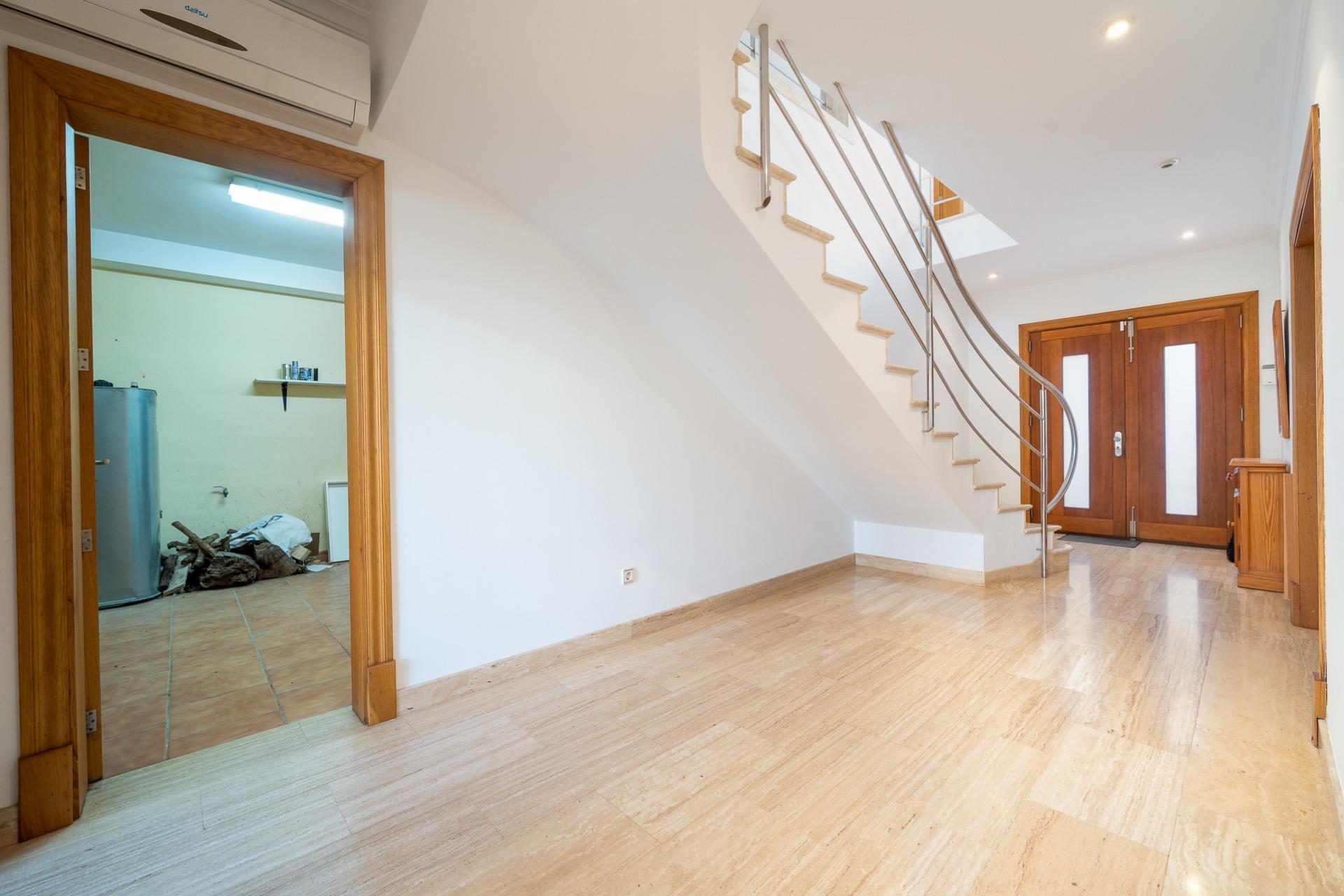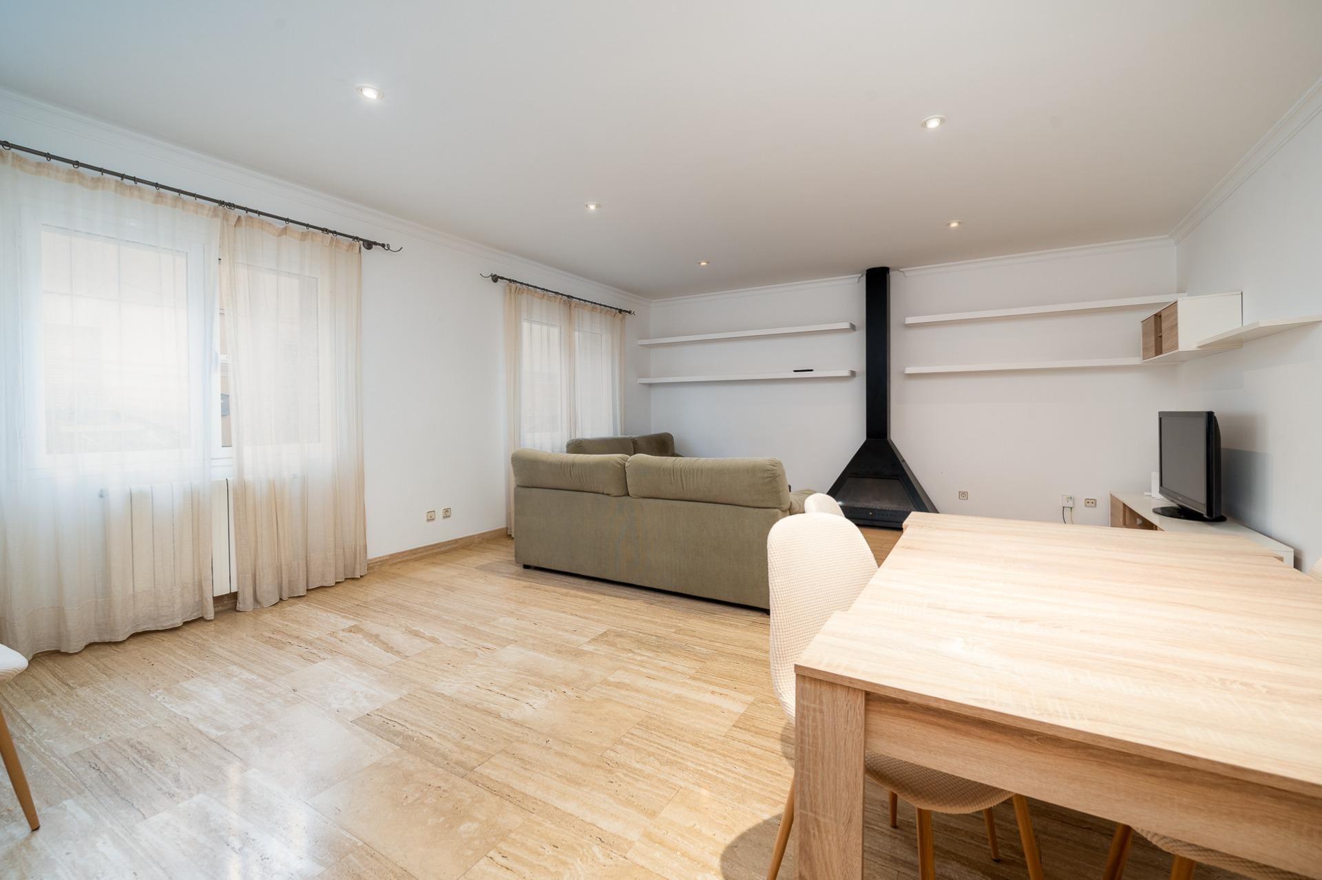 La planta superior dispone de un amplio hall, tres habitaciones dobles con armarios empotrados y acceso a una gran terraza, un baño completo, un despacho y una acogedora sala de estar con chimenea y horno de leña, ideal para los meses de invierno.