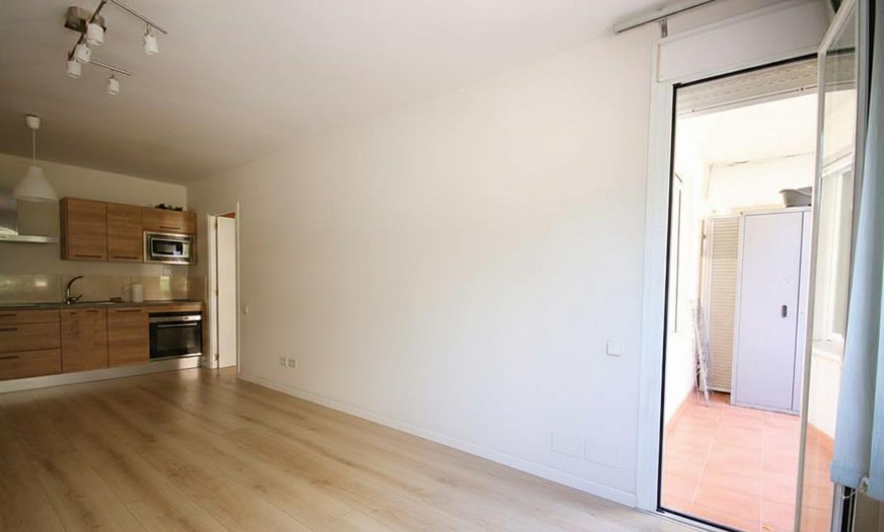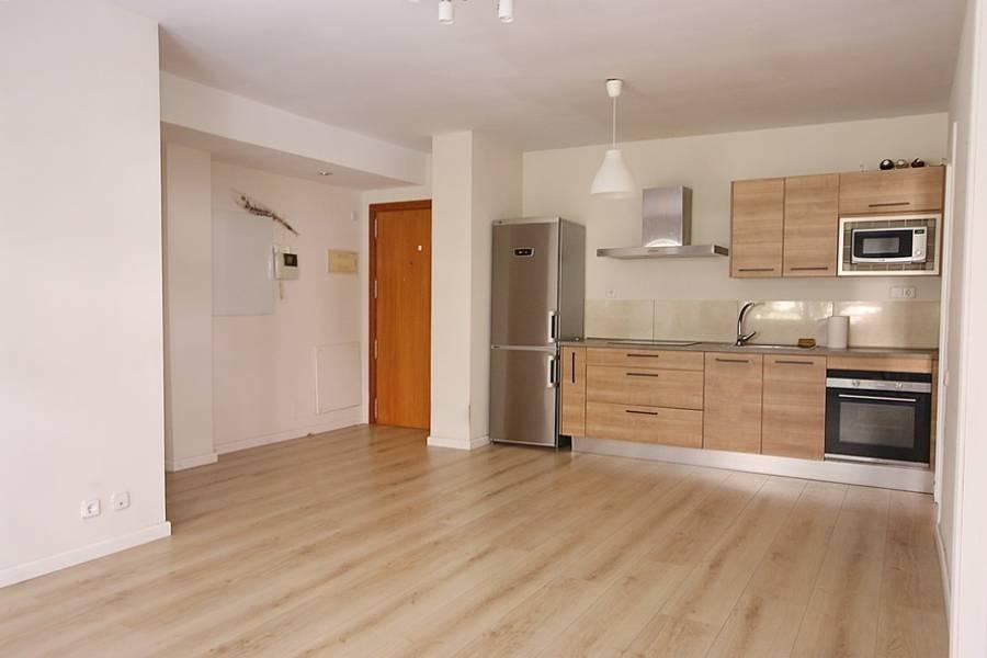 Apartamento en alquiler situado en la zona de Parc de ses Fonts. Dispone de 1 habitación doble, 1 baño completo con bañera, cocina americana amueblada y equipada con electrodomésticos, y salón-comedor con acceso a balcón.
