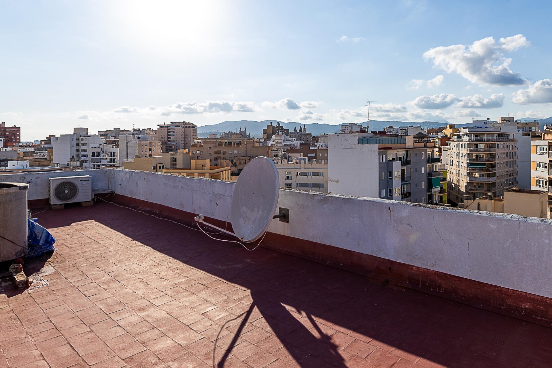 Sobre ático en zona Foners - Palma. - LEER TODA LA DESCRIPCIÓN DEL ANUNCIO *Nota importante: Algunas de las fotografías aportadas son una simulación de cómo podría quedar esta vivienda con algunas mejoras o cambios de mobiliario (en la primera foto) En la actualidad esta vivienda está en buen estado, pero también aportamos ejemplos en caso de que se quisiera remodelar y amueblar con diferentes estilos. INFORMACIÓN IMPORTANTE: Vivienda alquilada con contrato en vigor hasta febrero de 2029 - Renta de 870 euros al mes. Se vende con inquilino. La vivienda tiene una superficie de 45 m2. Distribuidos de la siguiente manera: 1 Dormitorio doble y exterior con armario empotrado. Salón comedor con salida a una terraza cerrada. Cocina independiente de unos 5 m2. Con ventana exterior. 1 Cuarto de baño completo con plato de ducha. Terraza cerrada que ahora es una estancia más separada con una puerta desde el salón. Coladuría. Finca de siete alturas con ascensor. Vivienda muy luminosa con vistas a toda la ciudad y al mar desde terraza comunitaria. Zona cercana a servicios y transportes públicos. No se puede disponer de cédula de habitabilidad. No lo dude y solicite más información.