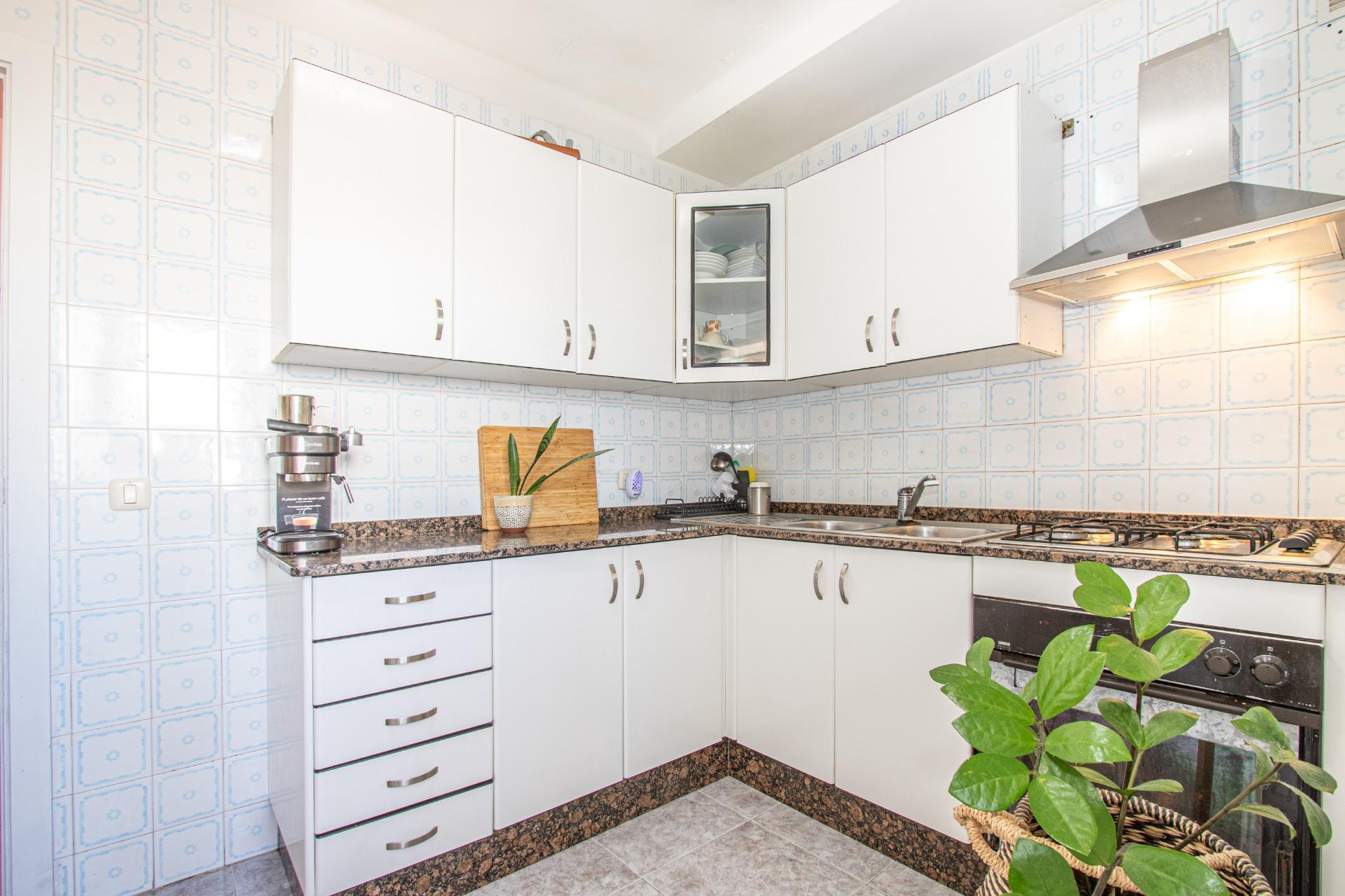 Corazón del hogar: Un salón acogedor y una cocina equipada que cuenta con una práctica coladuría, ideal para organizar la colada y el almacenaje extra que toda familia necesita.