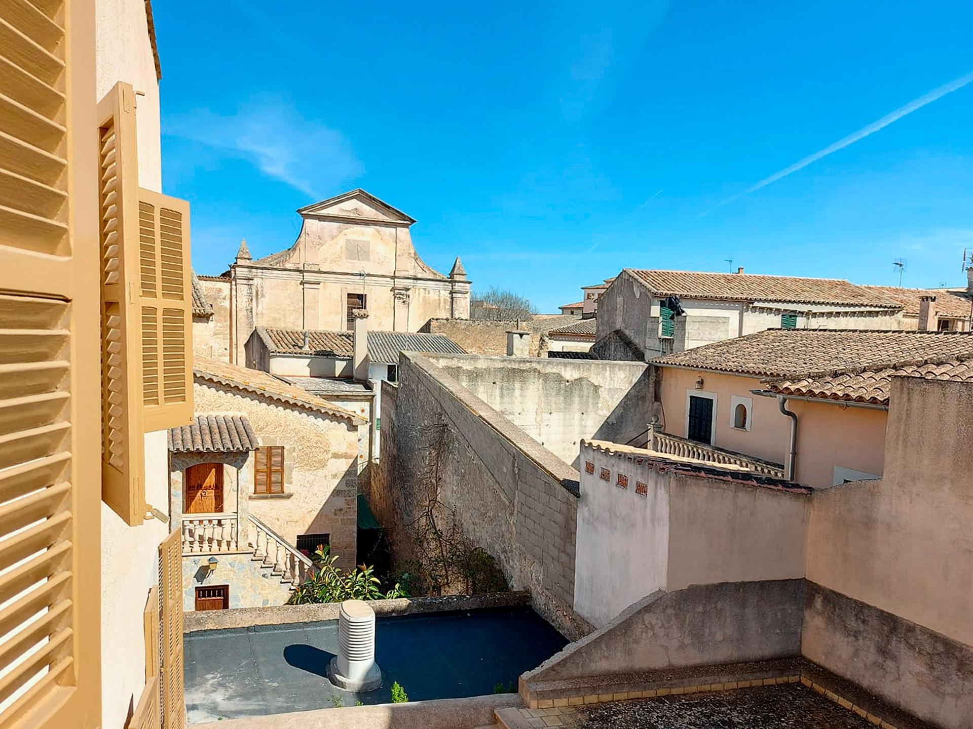 Terraza en la primera planta, con vistas al casco antiguo de Sineu.