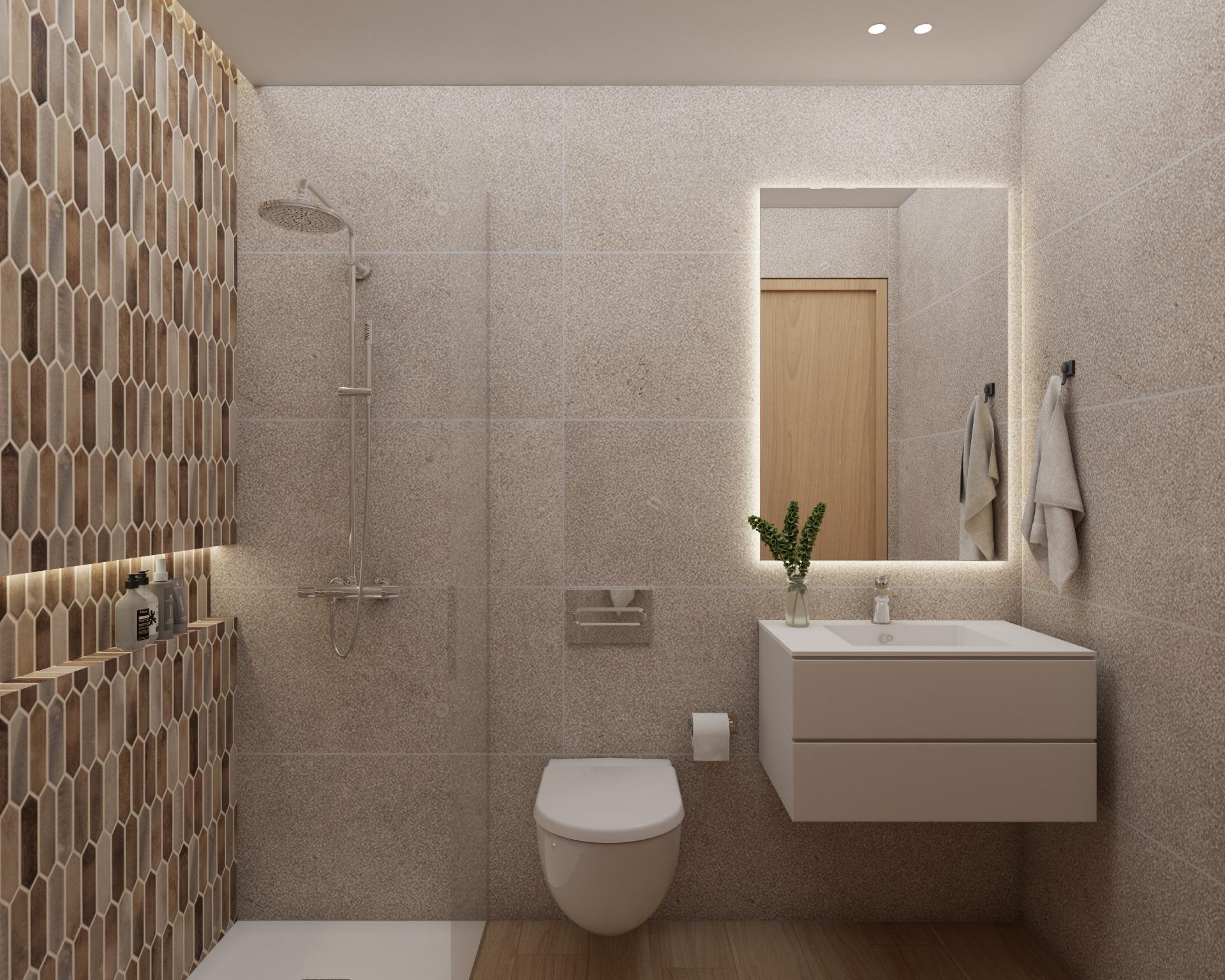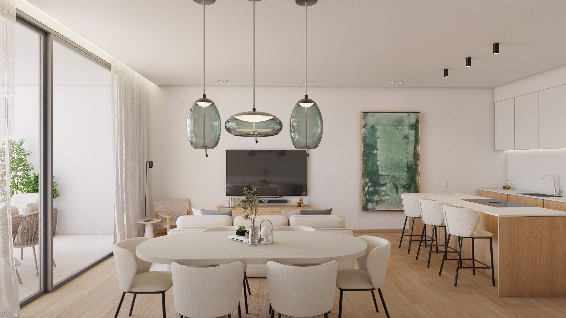 La primera planta, a la que se accede mediante escalera interior, alberga el espacio destinado a cocina office abierta con isla, la cual se presupuesta aparte, permitiendo al futuro propietario personalizarla según sus gustos y necesidades, integrada en un amplio y luminoso salón comedor, además de un aseo de cortesía. Desde aquí se accede a dos terrazas adicionales, una interior y otra frontal con orientación sur y vistas semi despejadas.