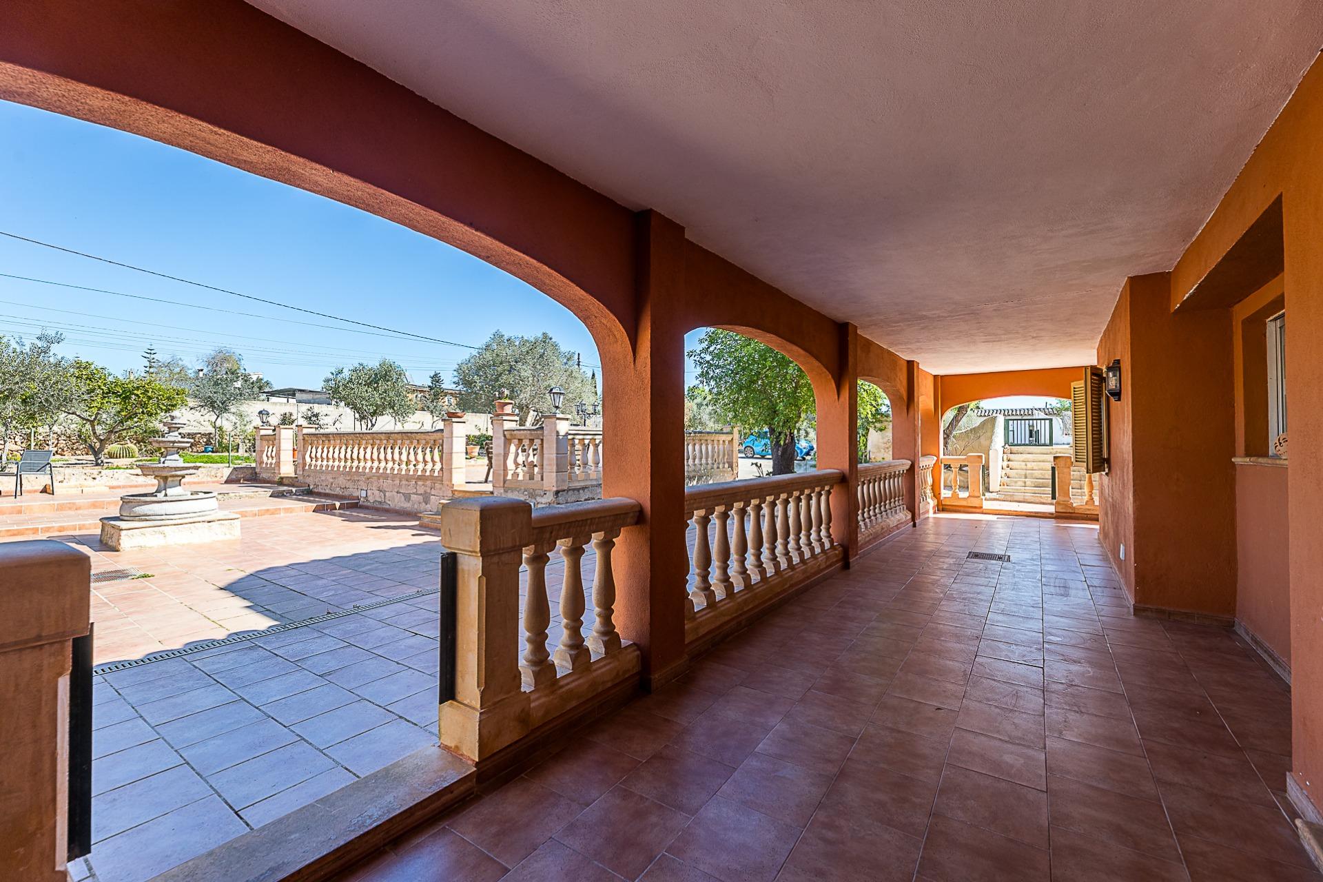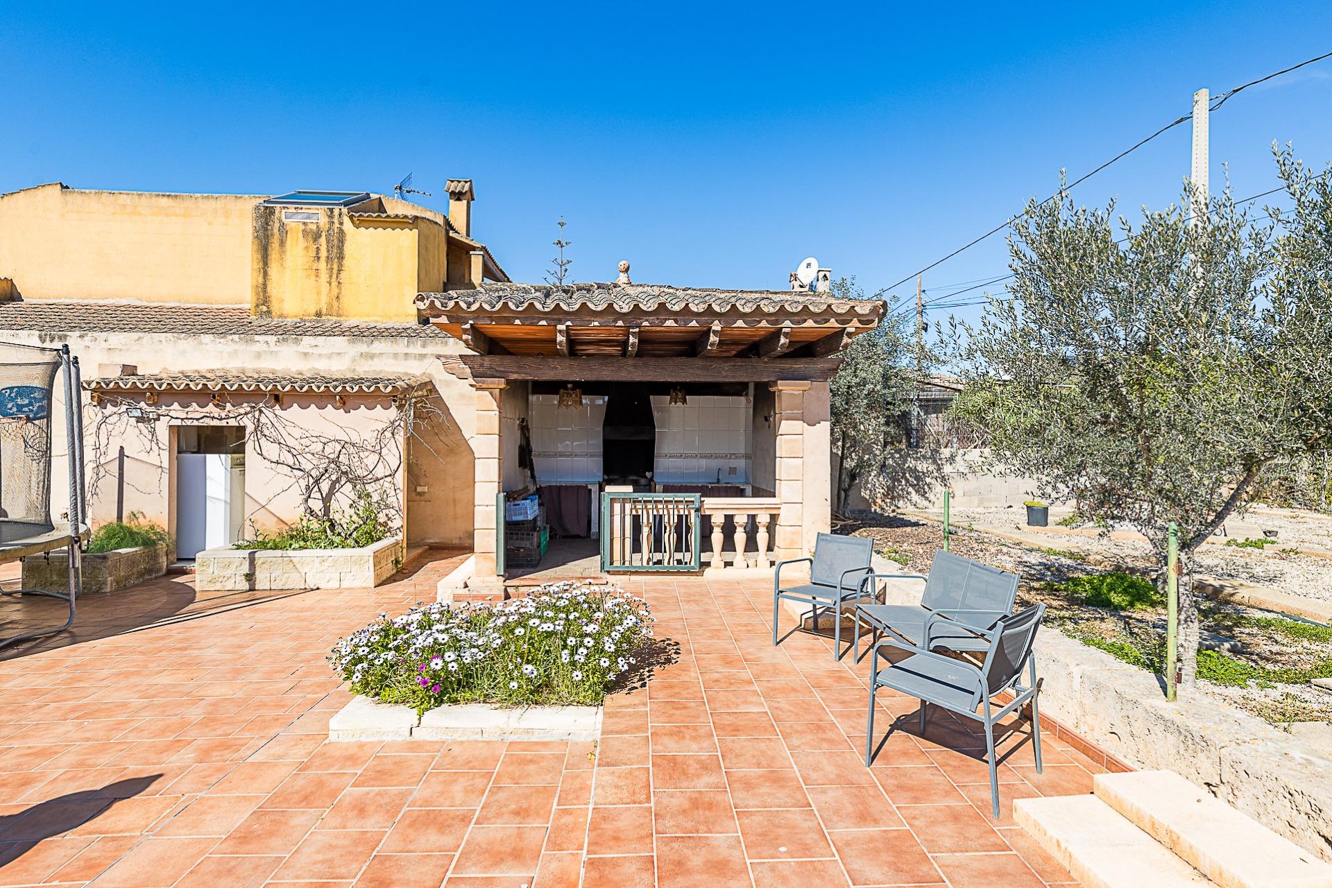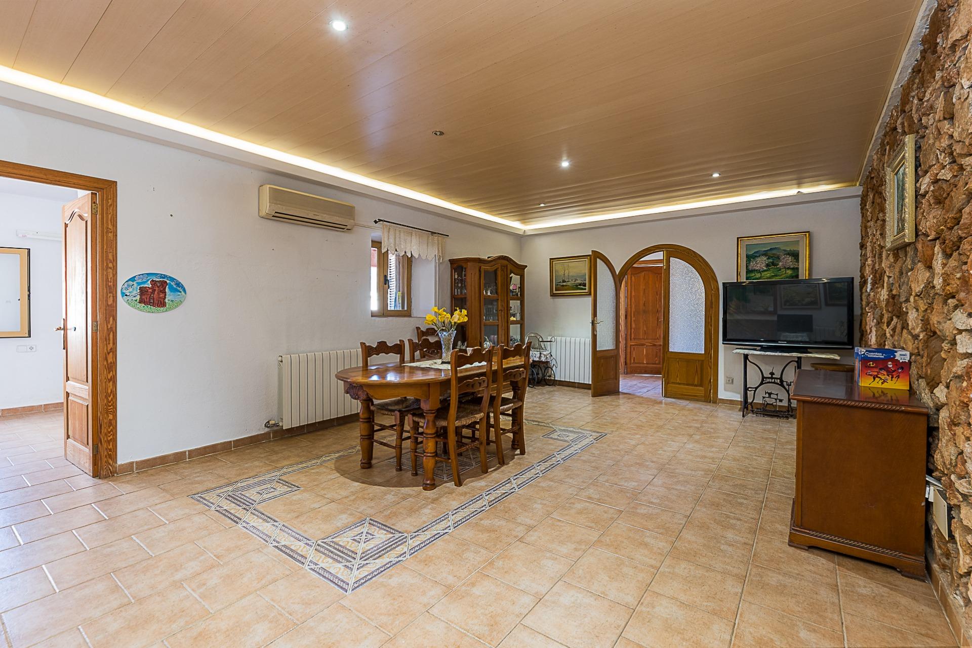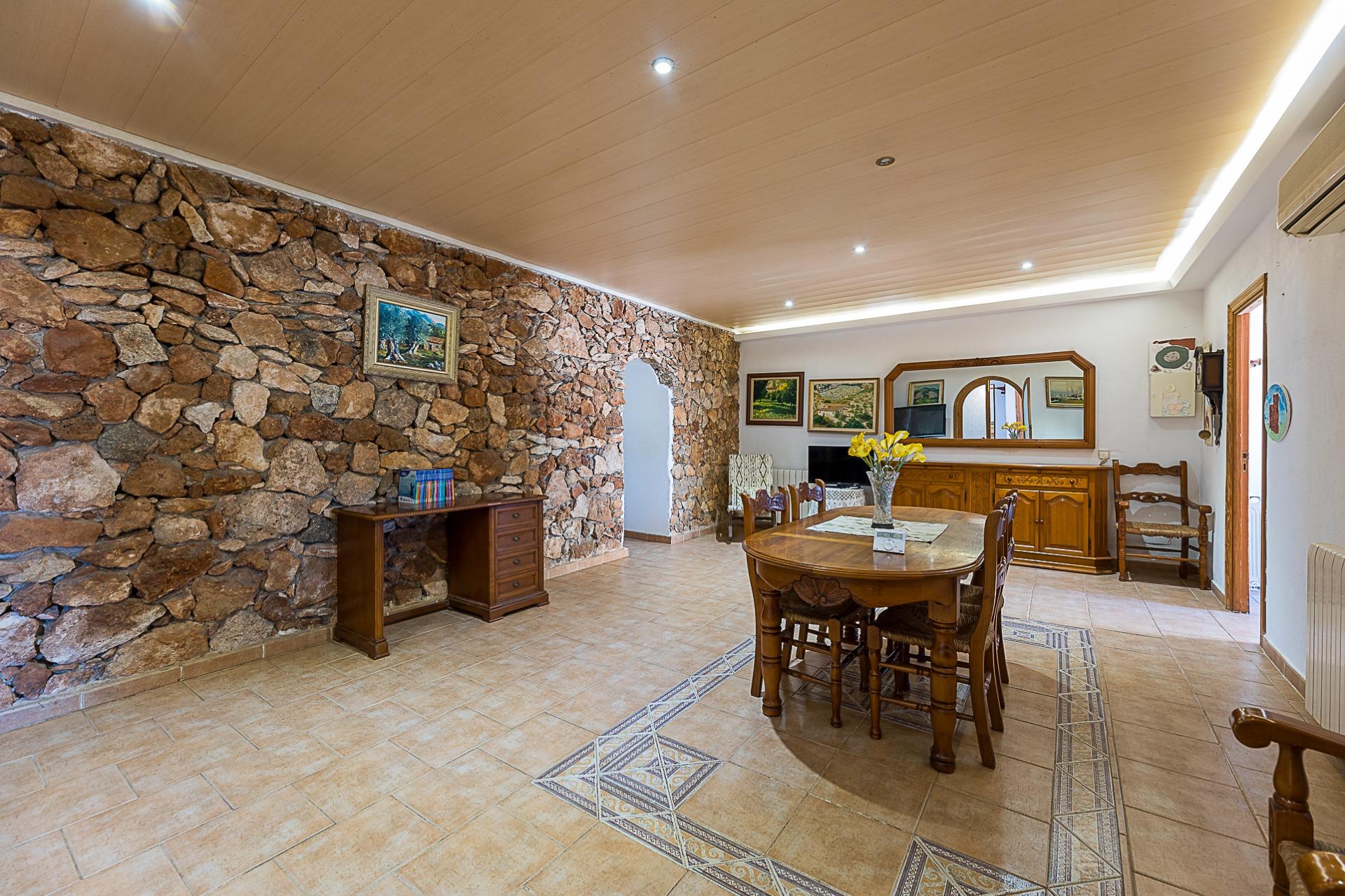 Espectacular casa rústica unifamiliar en urbanización Can Valent. Vivienda con 560 m2. Construidos y aproximadamente 350 m2. útiles, divididos en tres plantas que se distribuyen de la siguiente manera: Planta baja: Superficie aproximada: 177 m2. Recibidor. 4 Habitaciones, dos de ellas con baño en suite. Amplio salón comedor de aproximadamente 40 m2. Cocina independiente de unos 35 m2. Con despensa. Lavandería. Porche de unos 57 m2. Que rodea la parte delantera haciendo esquina y otro baño en la parte de la entrada. Planta Primera: Superficie de unos 173 m2. 2 Habitaciones, una de ellas con balcón propio y gran baño en suite + vestidor. La otra habitación tiene salida a una terraza. Planta Tercera: Amplia terraza solárium. Información extra sobre la vivienda: Solar de aproximadamente 2283 m2. Calefacción por gasoil en todas las estancias de la casa con 17 radiadores en total. Agua de pozo de 18 m3 (traída con camión) Además de otro pozo de 6 metros que da servicio de agua a toda la casa con dos bombas de presión. Sistema de regadío por toda la finca. Depósito de gasoil de 1.500 litros (Para calefacción y agua caliente con un termo de 150 litros) - Fosa séptica de 80 m3 - Zona de piscina con 60 m2. - Zona de barbacoa de 14 m2. - Zonas ajardinadas. - Zona de huerto. - Sala de máquinas (piscina) Adicionalmente: Tiene una construcción de aproximadamente 55 m2. En la actualidad es un trastero pero se podría destinar a casa de invitados. Ofrecemos una simulación mediante IA de cómo podría quedar la estancia. También dispone de una construcción destinada a cuarto de herramientas y almacén de unos 13 m2. Se vende semi amueblada (consultar inventario) Dispone de: Cédula de habitabilidad Certificado energético Todas las construcciones están registradas. Zona muy tranquila, de buen acceso y cercano a Palma. No lo dude y solicite más información.