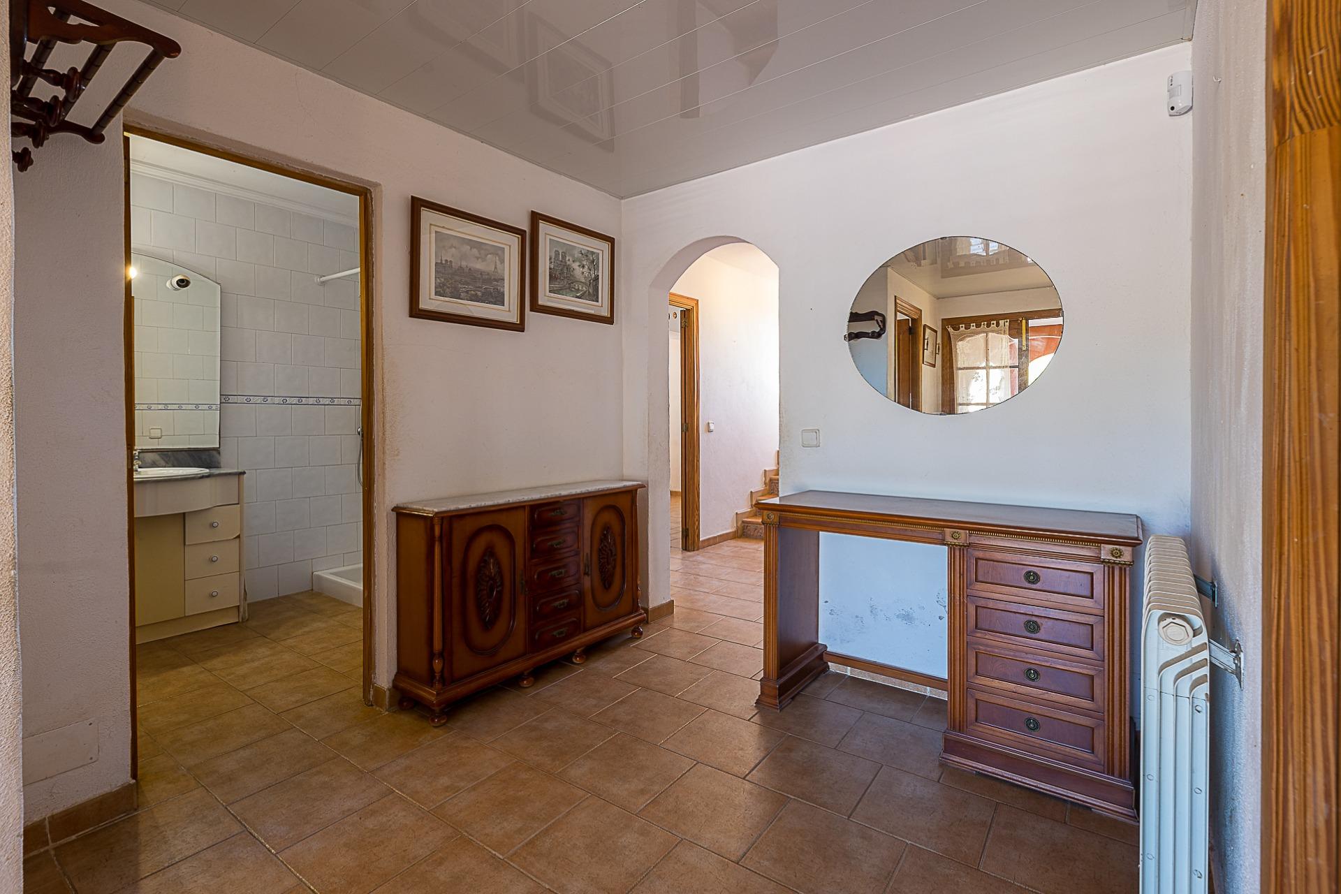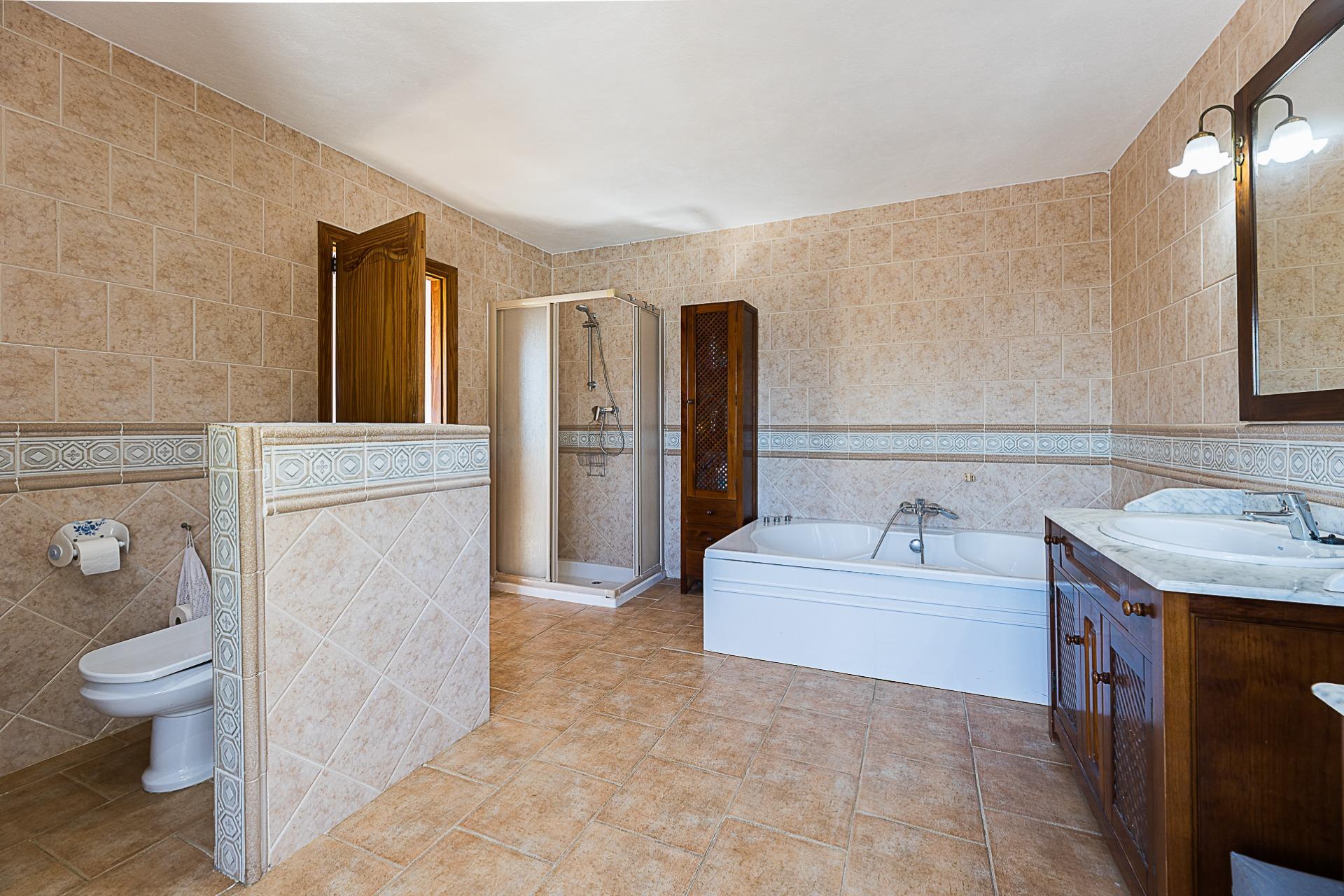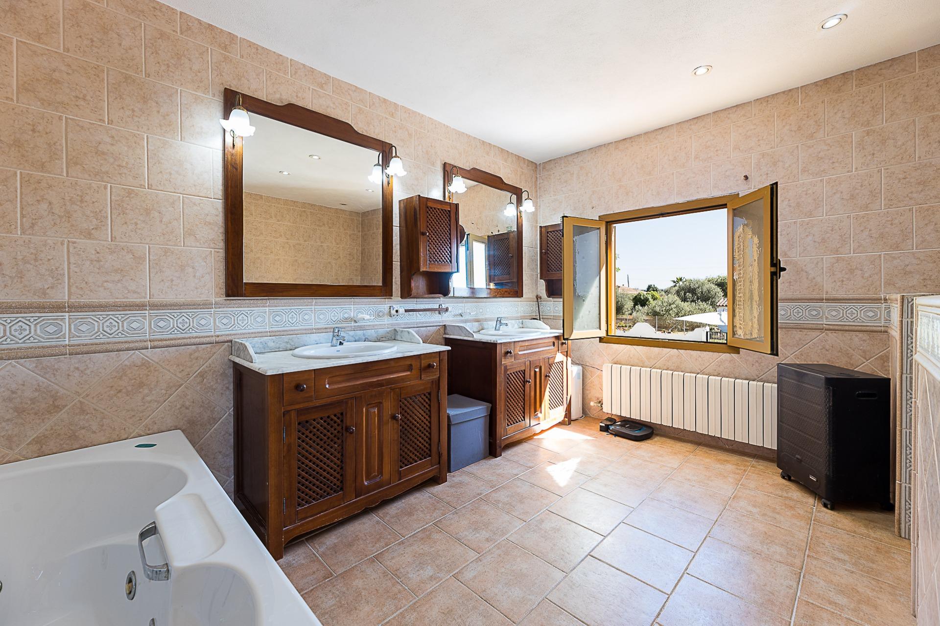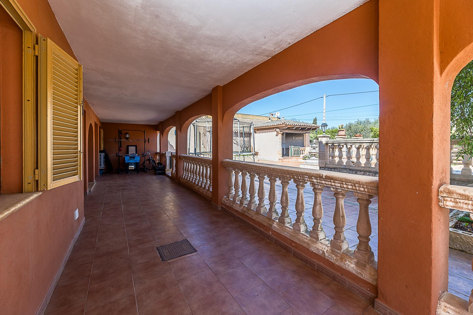 Espectacular casa rústica unifamiliar en urbanización Can Valent. Vivienda con 560 m2. Construidos y aproximadamente 350 m2. útiles, divididos en tres plantas que se distribuyen de la siguiente manera: Planta baja: Superficie aproximada: 177 m2. Recibidor. 4 Habitaciones, dos de ellas con baño en suite. Amplio salón comedor de aproximadamente 40 m2. Cocina independiente de unos 35 m2. Con despensa. Lavandería. Porche de unos 57 m2. Que rodea la parte delantera haciendo esquina y otro baño en la parte de la entrada. Planta Primera: Superficie de unos 173 m2. 2 Habitaciones, una de ellas con balcón propio y gran baño en suite + vestidor. La otra habitación tiene salida a una terraza. Planta Tercera: Amplia terraza solárium. Información extra sobre la vivienda: Solar de aproximadamente 2283 m2. Calefacción por gasoil en todas las estancias de la casa con 17 radiadores en total. Agua de pozo de 18 m3 (traída con camión) Además de otro pozo de 6 metros que da servicio de agua a toda la casa con dos bombas de presión. Sistema de regadío por toda la finca. Depósito de gasoil de 1.500 litros (Para calefacción y agua caliente con un termo de 150 litros) - Fosa séptica de 80 m3 - Zona de piscina con 60 m2. - Zona de barbacoa de 14 m2. - Zonas ajardinadas. - Zona de huerto. - Sala de máquinas (piscina) Adicionalmente: Tiene una construcción de aproximadamente 55 m2. En la actualidad es un trastero pero se podría destinar a casa de invitados. Ofrecemos una simulación mediante IA de cómo podría quedar la estancia. También dispone de una construcción destinada a cuarto de herramientas y almacén de unos 13 m2. Se vende semi amueblada (consultar inventario) Dispone de: Cédula de habitabilidad Certificado energético Todas las construcciones están registradas. Zona muy tranquila, de buen acceso y cercano a Palma. No lo dude y solicite más información.