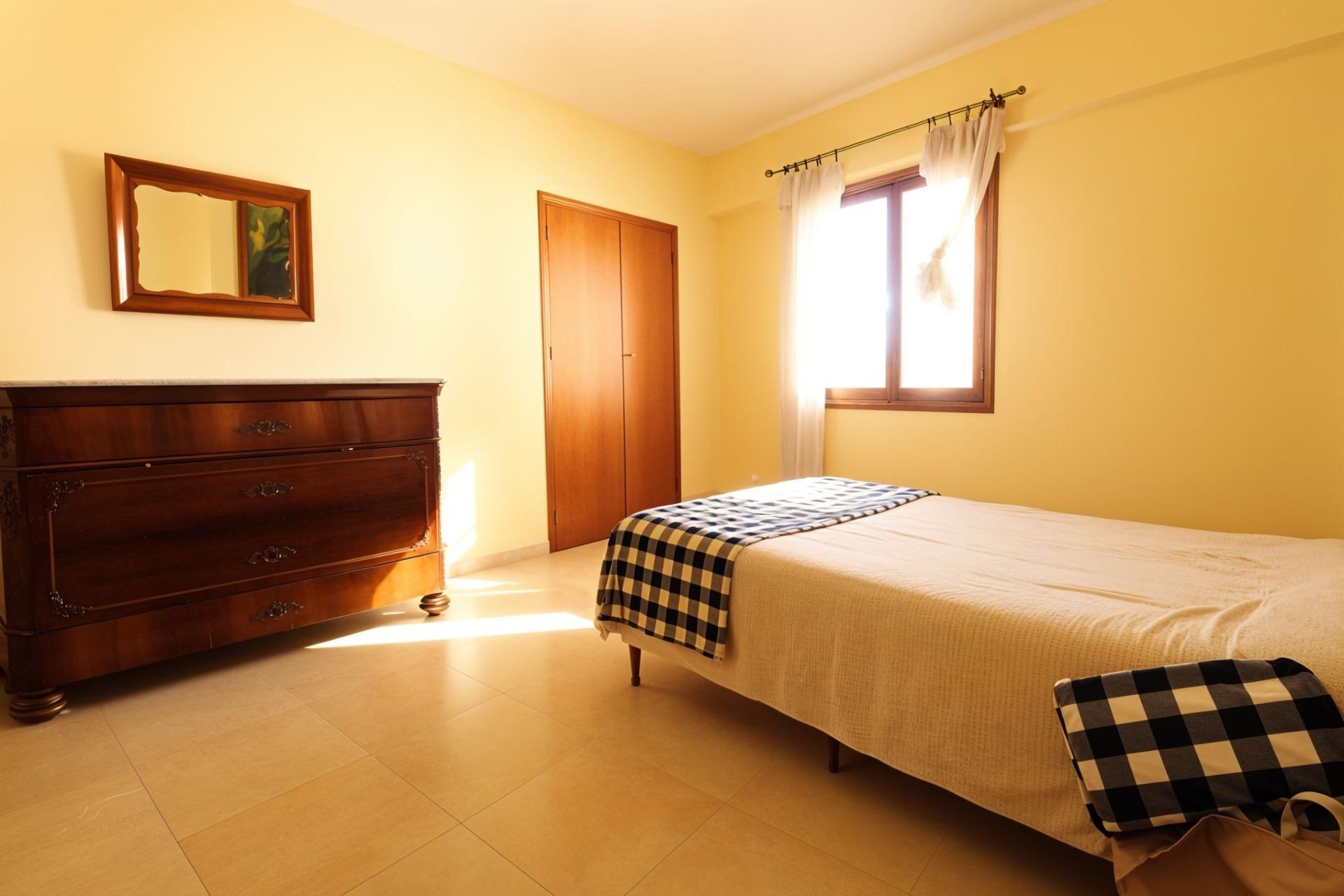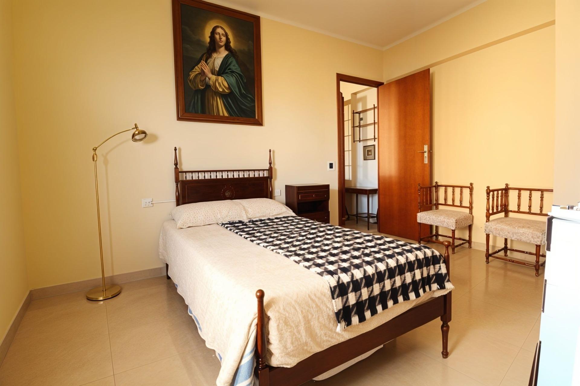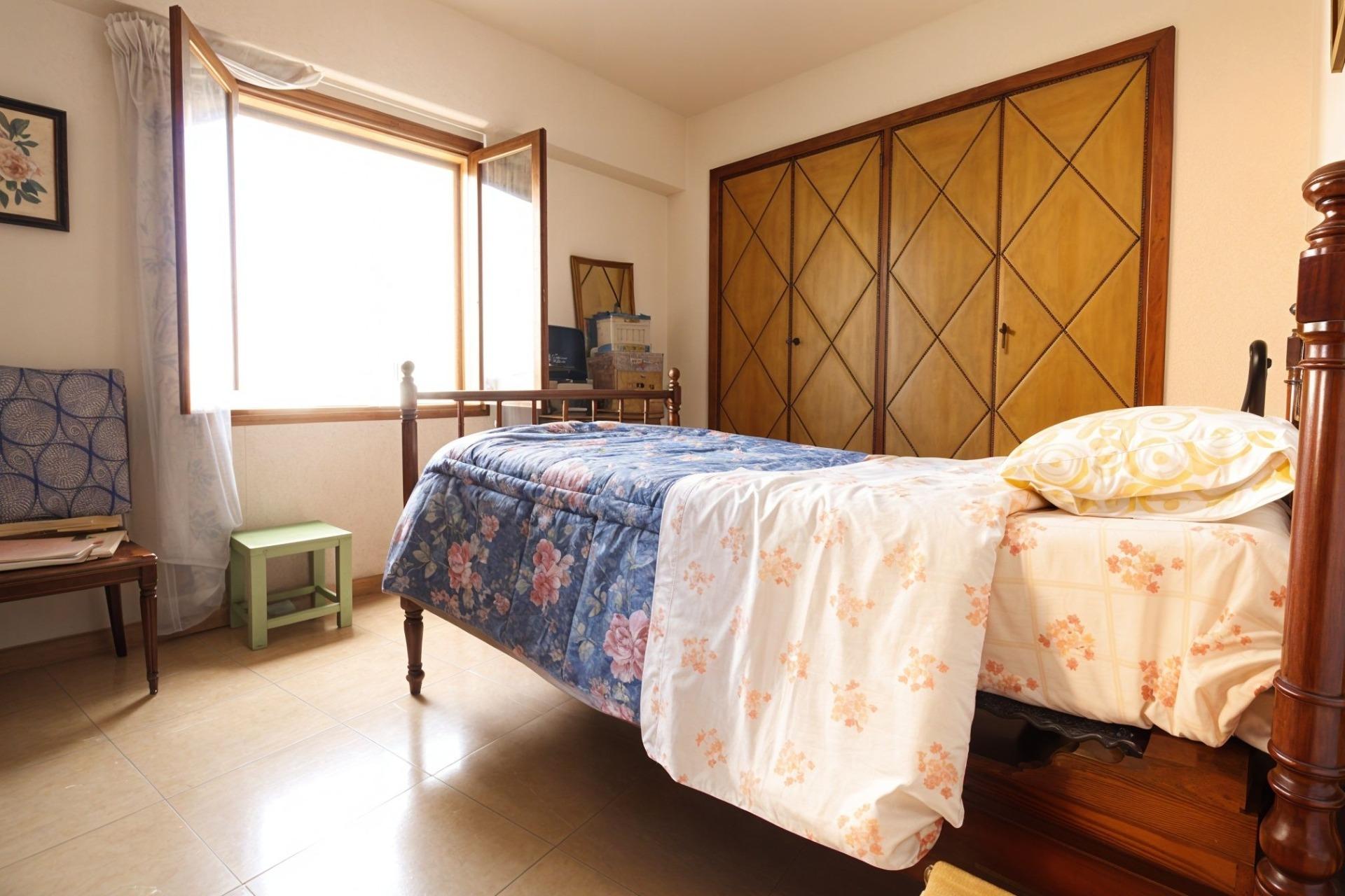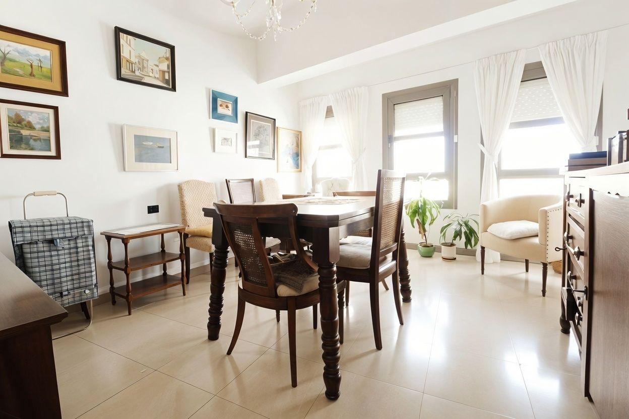 Espectacular vivienda en zona céntrica Vivienda con una superficie construida de 112 m2. Que se distribuye de la siguente manera: 4 Dormitorios dobles, todos son exteriores y dos de ellos tienen armario empotrado. Una de las habitaciones está en uso en la actualidad como un salón. Amplio y luminoso salón comedor de aproximadamente 25 m2. Con salida a balcón. Cocina independiente, amueblada, de unos 8 m2. Despensa. Coladuría exterior con pequeña terraza. 1 Cuarto de baño completo y reformado y 1 aseo simple. Cuarto piso con ascensor. Excelentes vistas despejadas y a la montaña. Zona céntrica, cercana a todos los servicios, transportes públicos y fácil de ir a pie al centro de Palma. No lo dude y solicite más información. *Nota: Algunas imágenes son simulación mediante IA de cómo podría quedar la vivienda haciendo una pequeña reforma y con muebles más modernos. El estado actual es: Buen estado - de origen.