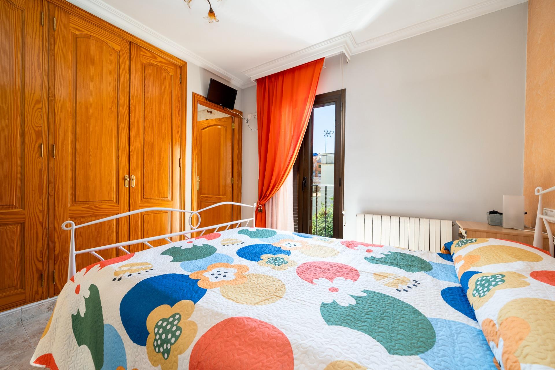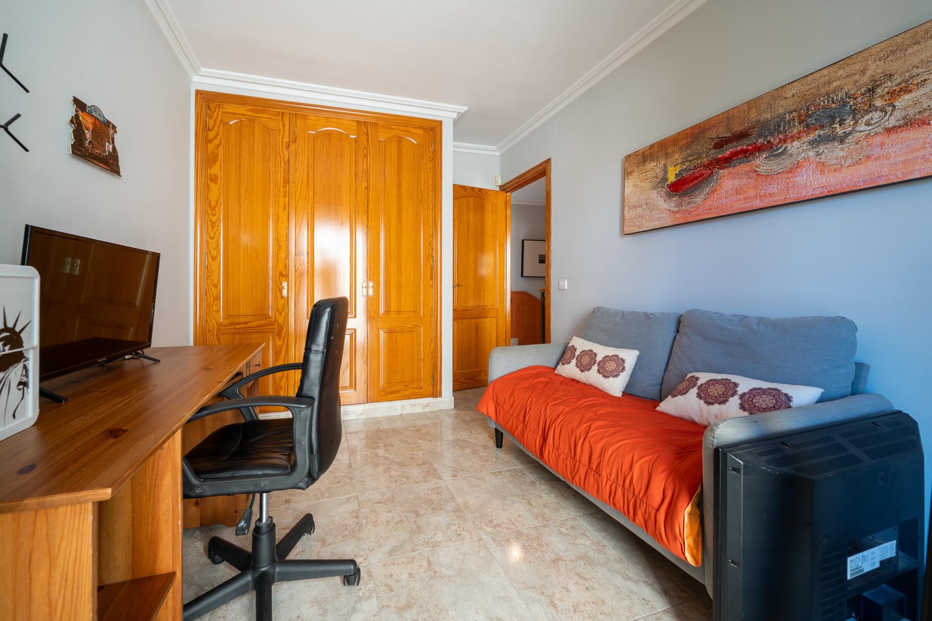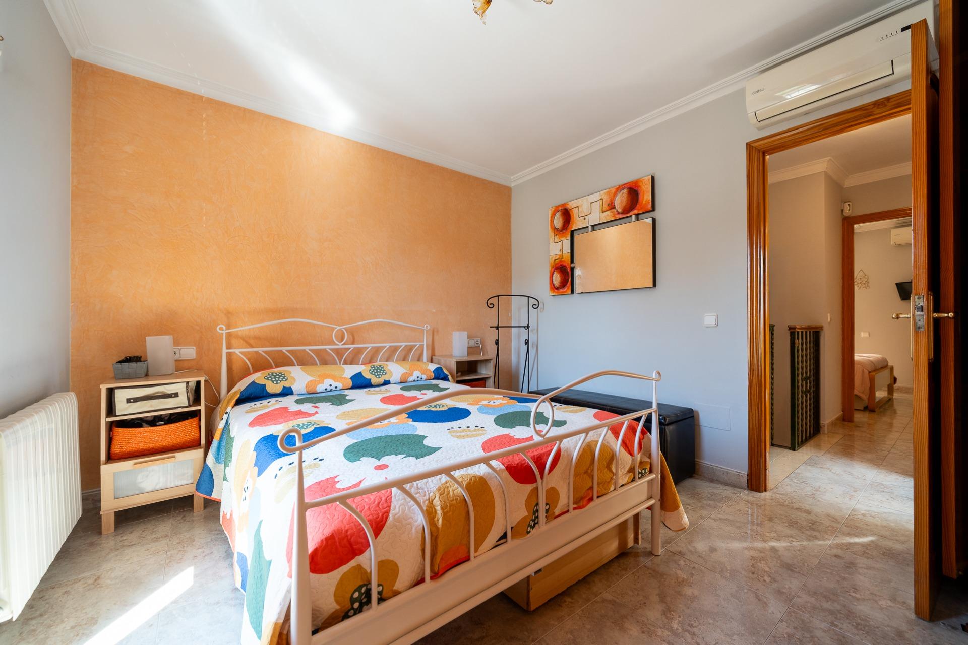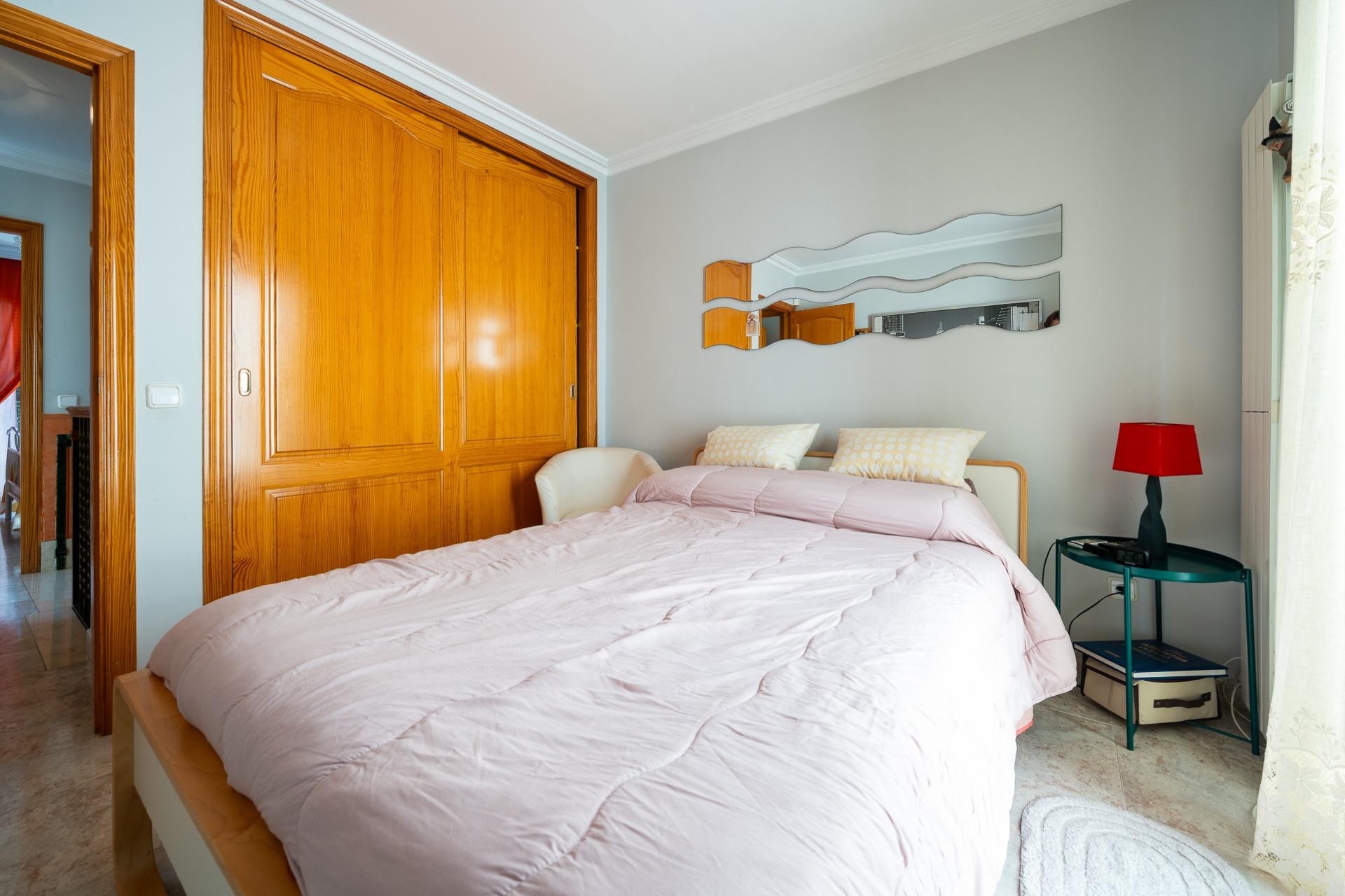 La planta piso, con una superficie construida de unos 54 m2, se distribuye en: tres habitaciones dobles con armarios empotrados, además tendrás a tu disposición dos baños completos; la habitación principal incluye su propio baño en suite. Desde una de las habitaciones, mediante una escalera de caracol exterior, accedemos a una terraza solarium.