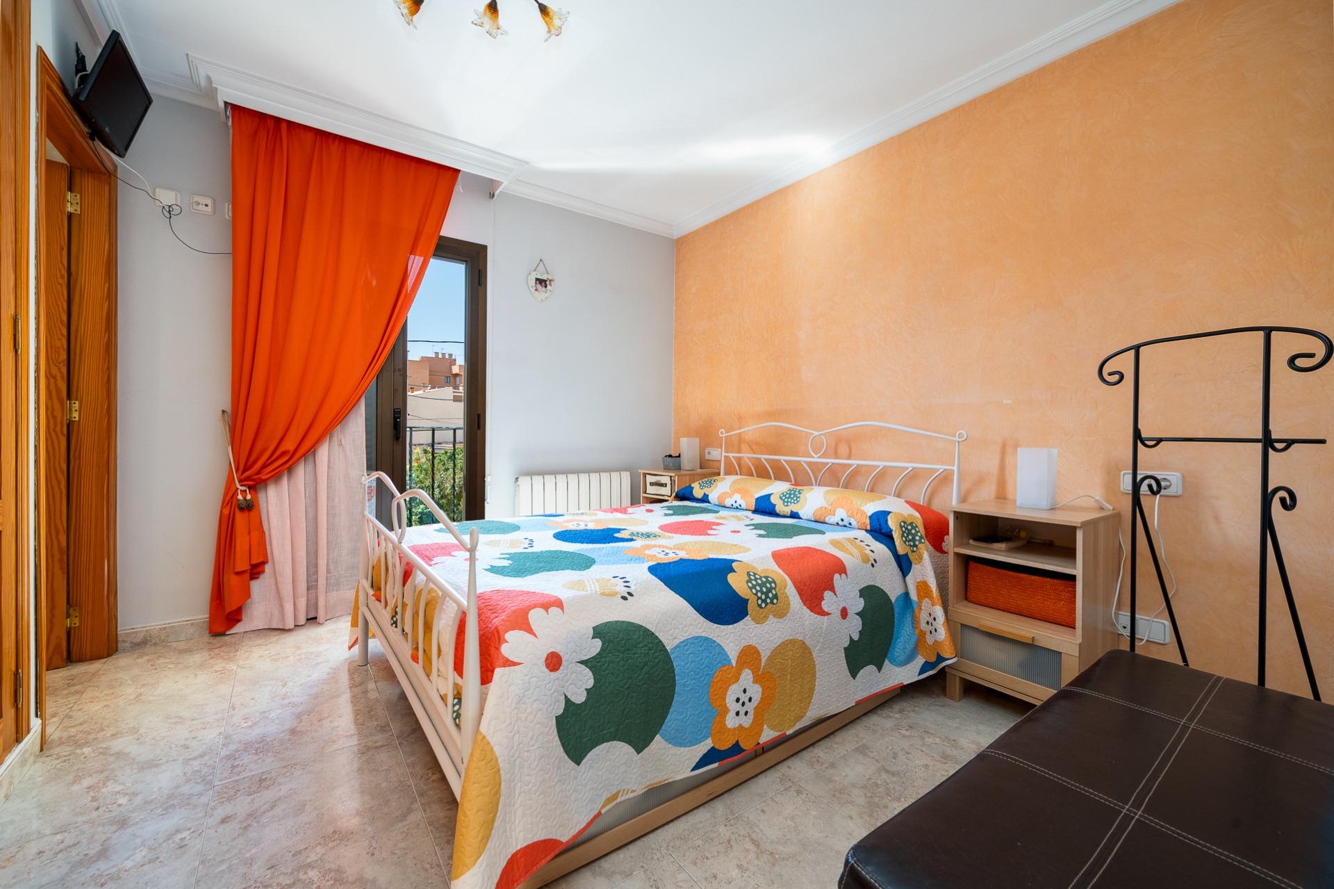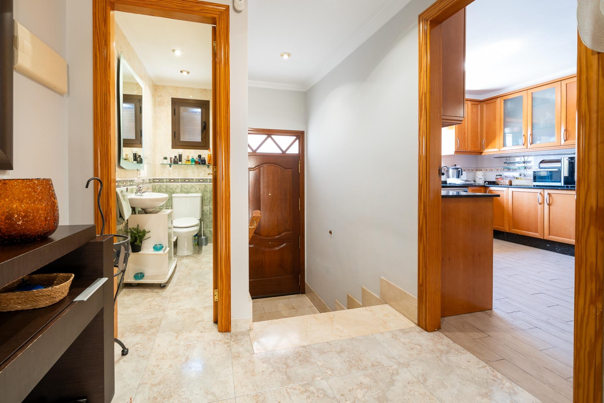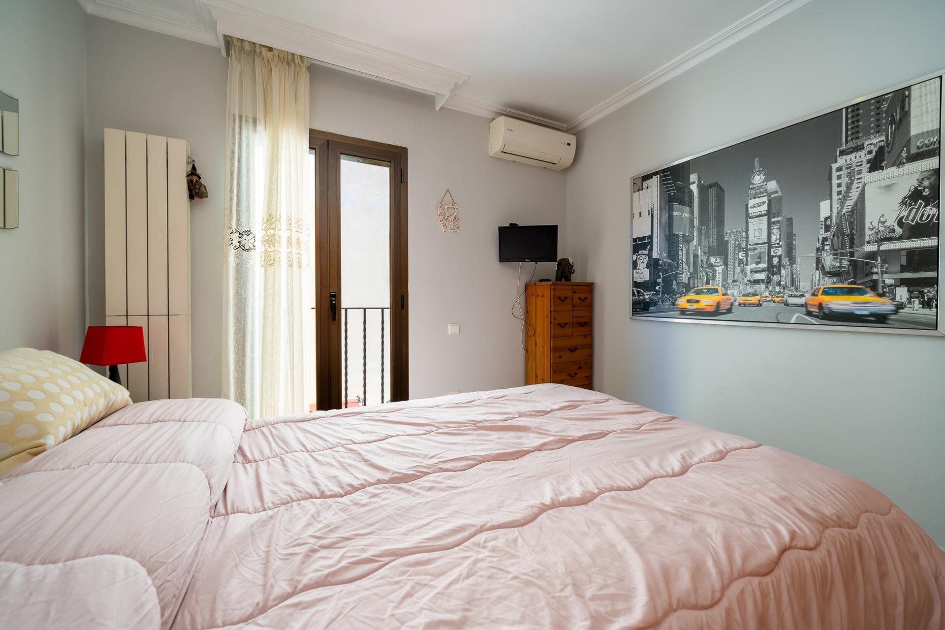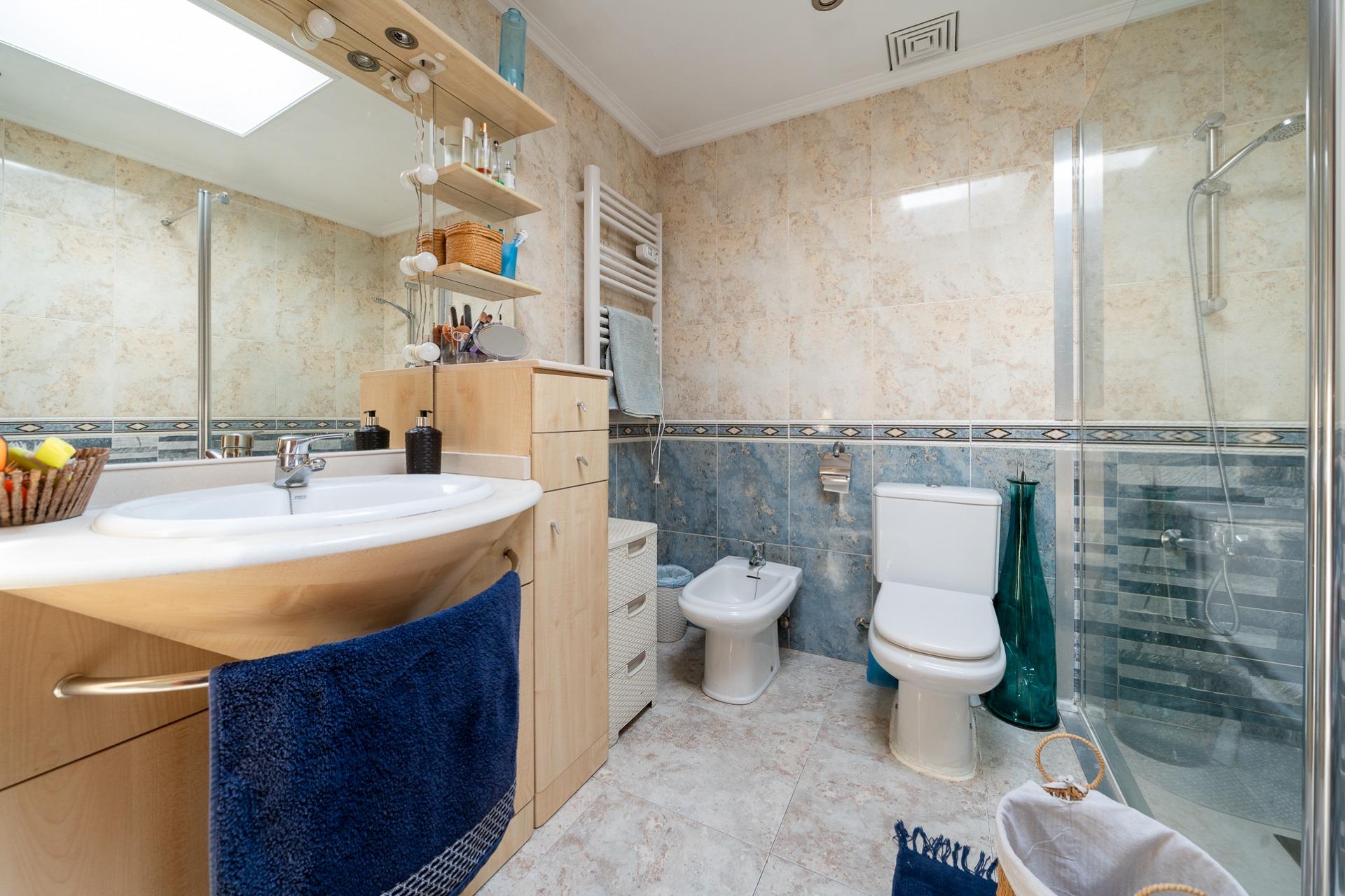 La planta piso, con una superficie construida de unos 54 m2, se distribuye en: tres habitaciones dobles con armarios empotrados, además tendrás a tu disposición dos baños completos; la habitación principal incluye su propio baño en suite. Desde una de las habitaciones, mediante una escalera de caracol exterior, accedemos a una terraza solarium.
