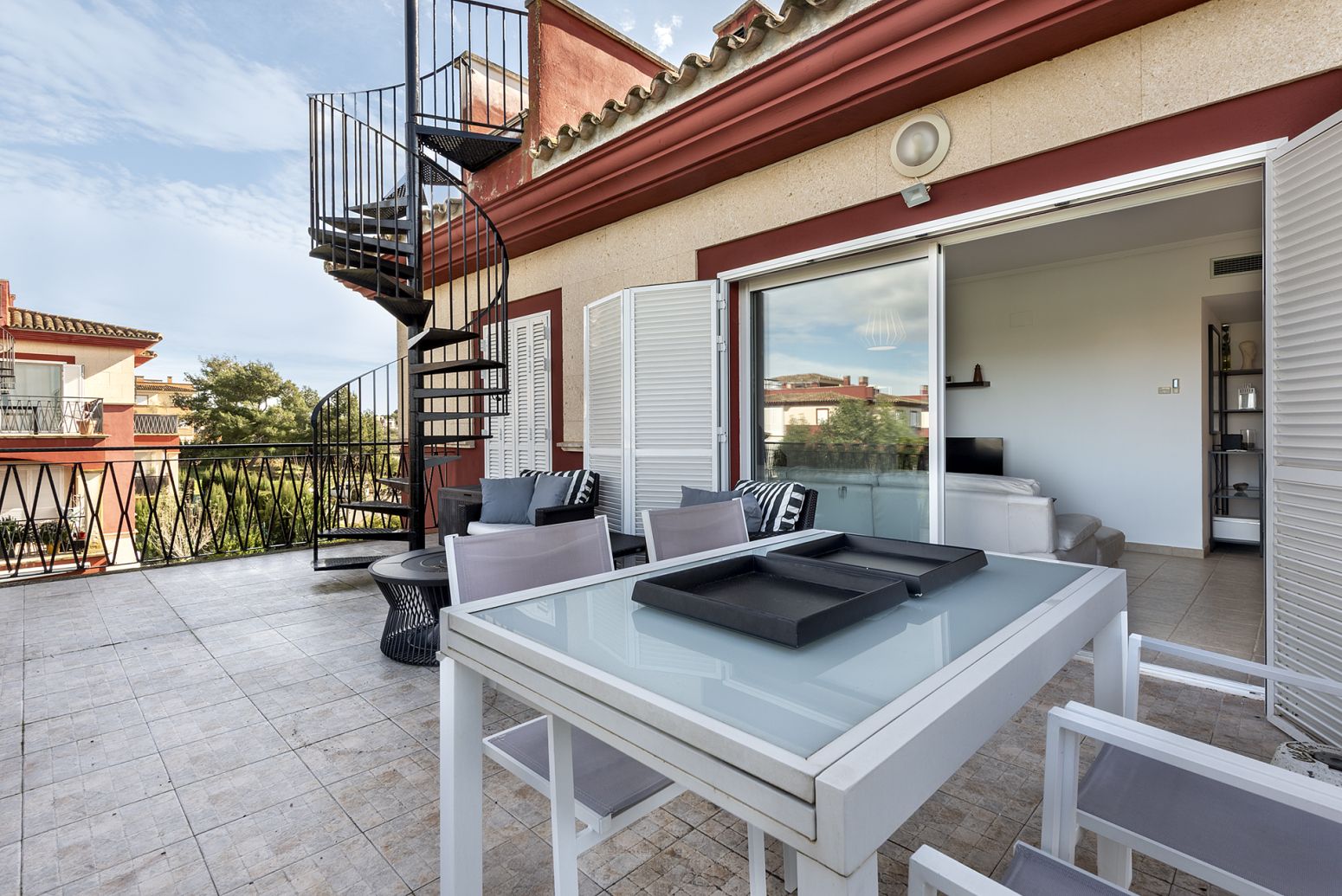 Goloso ático situado en la bonita urbanización de Son Gual, perteneciente al término municipal de Palma. Ubicada a las afueras de la ciudad, esta zona ofrece el equilibrio perfecto y la tranquilidad de un entorno natural.Una propiedad que destaca por su impecable estado de conservación, y una distribución pensada para el máximo confort.La vivienda, de 4 habitaciones dobles, ha sido diseñada para ofrecer un almacenamiento inteligente y estético:Todas las habitaciones cuentan con armarios empotrados completamente vestidos, optimizando cada metro cuadrado de la casa.Salón-comedor de grandes dimensiones con chimenea para los días de invierno y sistema de bomba de frío/calor centralizada en toda la vivienda.Cocina independiente totalmente equipada y 3 baños completos con acabados actuales. La propiedad está lista para entrar a vivir sin preocupaciones.El ático cuenta con dos espacios exteriores excepcionales:1. Terraza en Planta: Con acceso directo desde la zona social, equipada con barbacoa privada, ideal para disfrutar de cenas al aire libre.2. Solárium Superior: A través de una elegante escalera de caracol situada en la terraza principal, se accede a una impresionante terraza superior. Un espacio íntimo con vistas despejadas y sol durante todo el día.La vivienda se encuentra ubicada en un complejo residencial con muchas comodidades, extensas zonas ajardinadas, piscina comunitaria, parque infantil y área deportiva exclusiva para residentes.Tiene también dos plazas de aparcamiento privadas y un amplio trastero.¿Es esta la casa de sus sueños? No deje escapar este ático único en Son Gual por su equipamiento, privacidad y estado impecable.El precio de venta del inmueble incluye los honorarios de la agencia inmobiliaria que serán satisfechos por la parte vendedora y no incluye el impuesto de ITP que será 8% hasta compraventas por importe de 400.000 EUR o IVA correspondiente. Los gastos notariales y registrales se estiman orientativamente en un 2% del valor de la compraventa, y deberán ser abonados al firmar la correspondiente escritura pública por los compradores. El porcentaje de los impuestos se calculan sobre el precio final de escritura pública y puede variar, en función de las subvenciones, ayudas, edad, precio de compraventa y otras circunstancias del contribuyente.Inmobiliaria inscrita en el Registro Oficial d'Agents Inmobiliaris de les Illes Balears con el NÚMERO DE REGISTRO: GOIBE730402/2024.