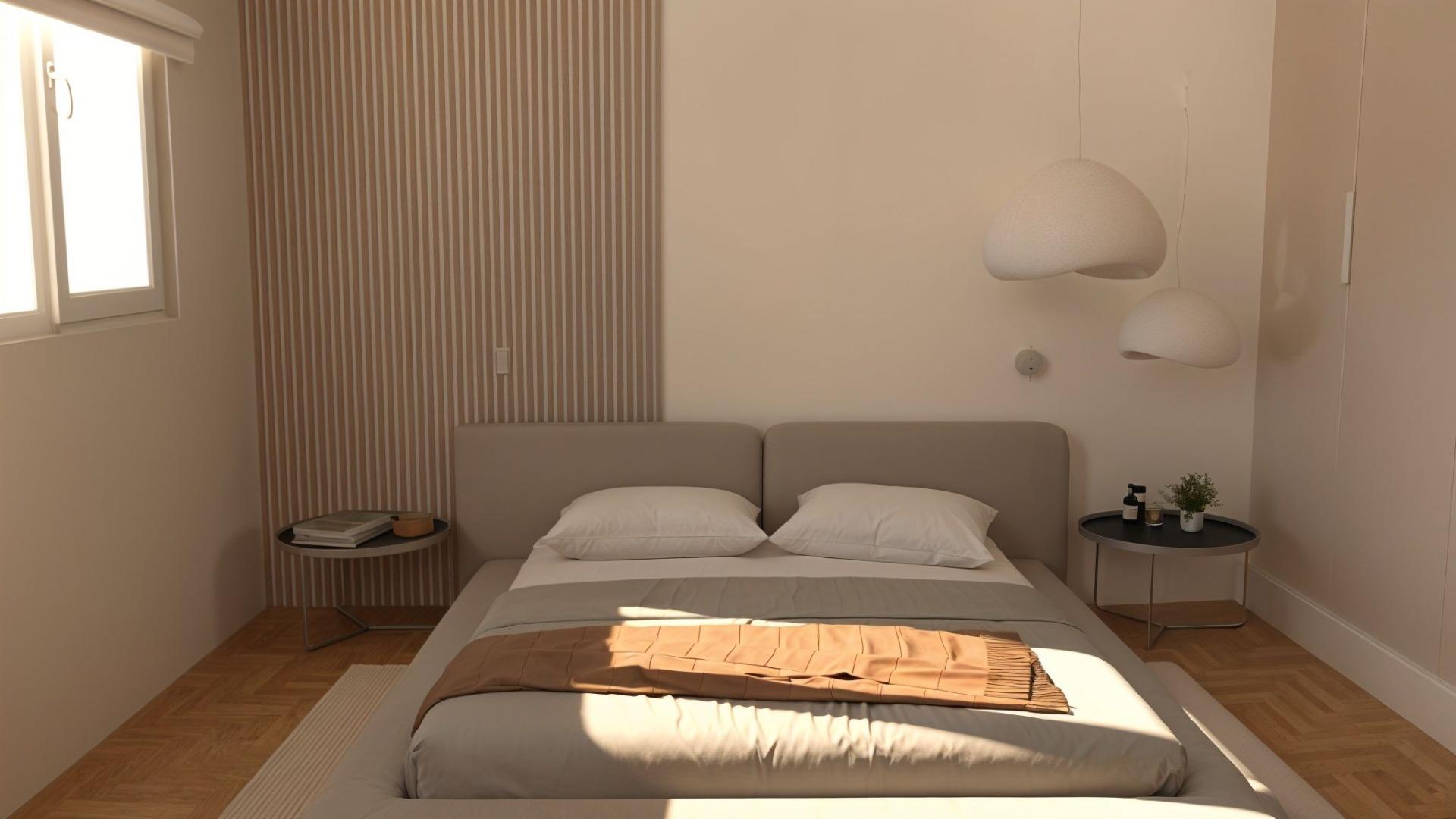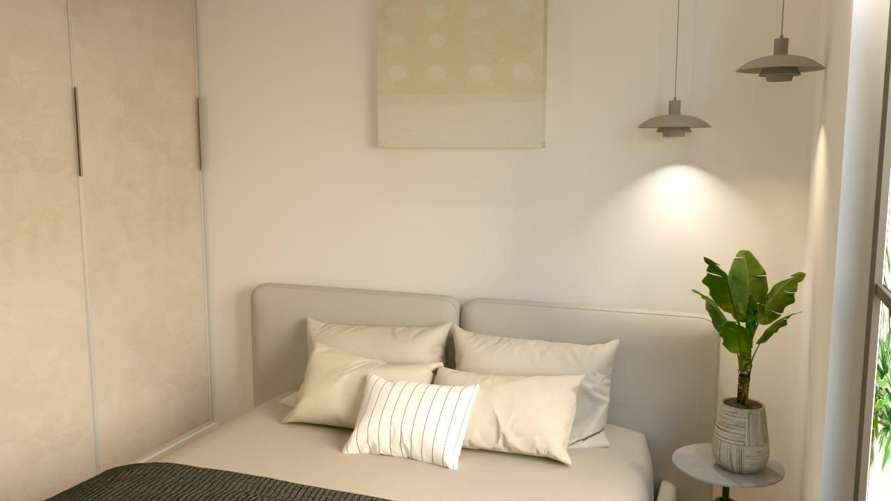 En cuanto a los dormitorios, la propuesta de reforma plantea tres habitaciones, dos de ellas dobles y una individual, ofreciendo así la posibilidad de adaptarse a las necesidades de cualquier comprador: una familia, una pareja que precise de un despacho en casa, o incluso como segunda residencia con capacidad para invitados.