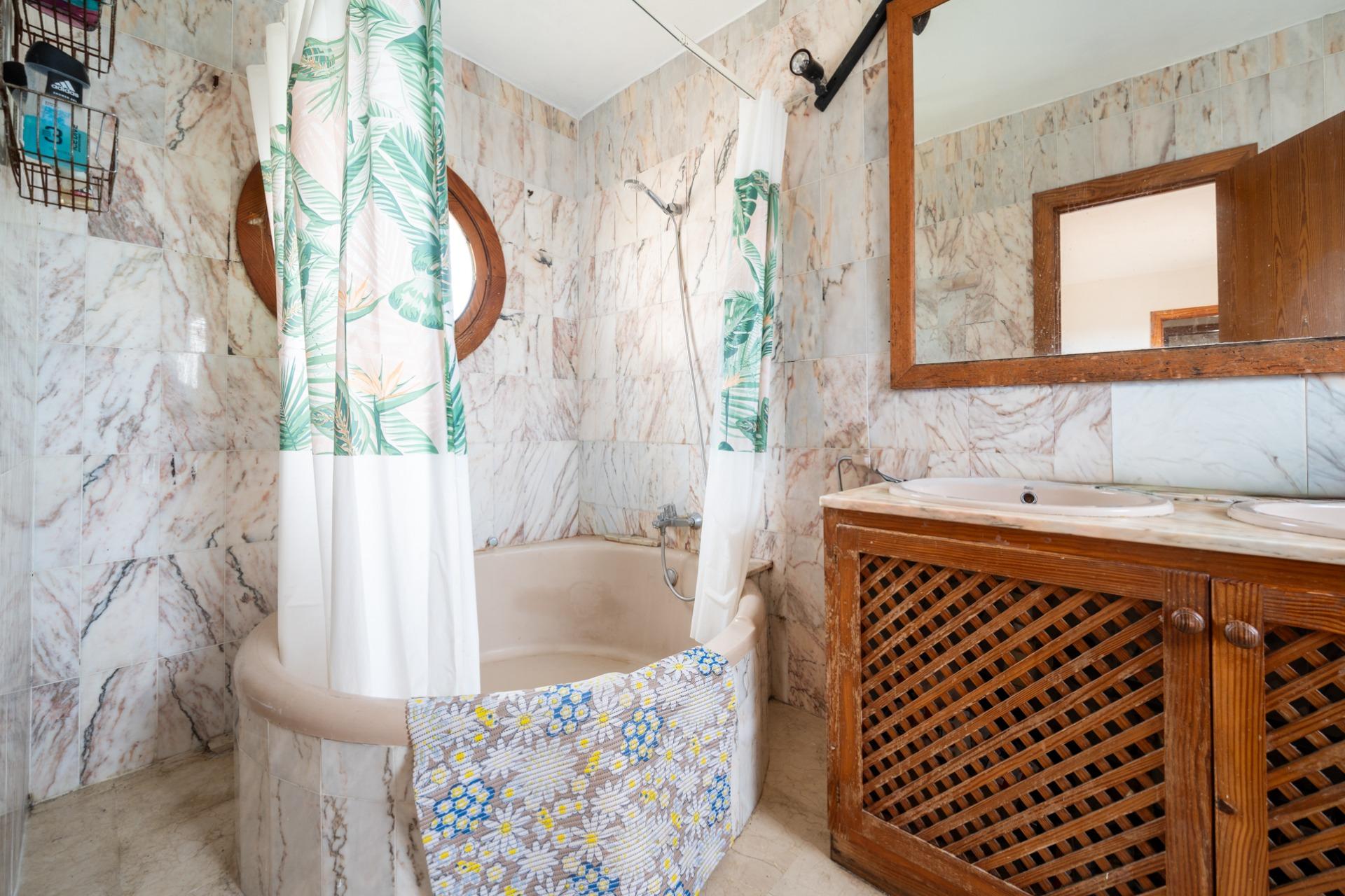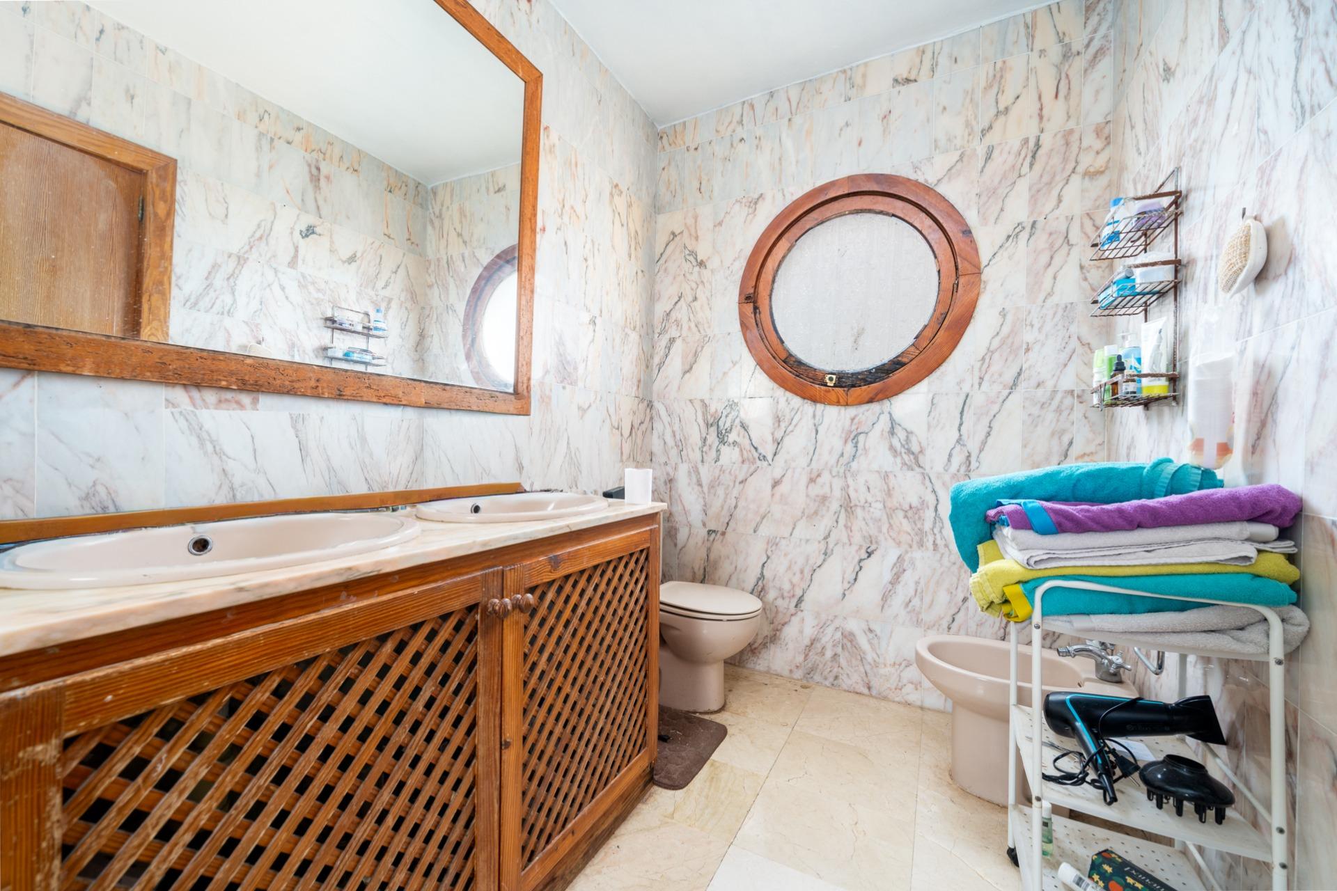 The villa has four bedrooms (one with an en-suite bathroom), as well as two full bathrooms and a guest toilet. On the upper floor, a large terrace with sea views invites you to relax and enjoy the sunsets.
