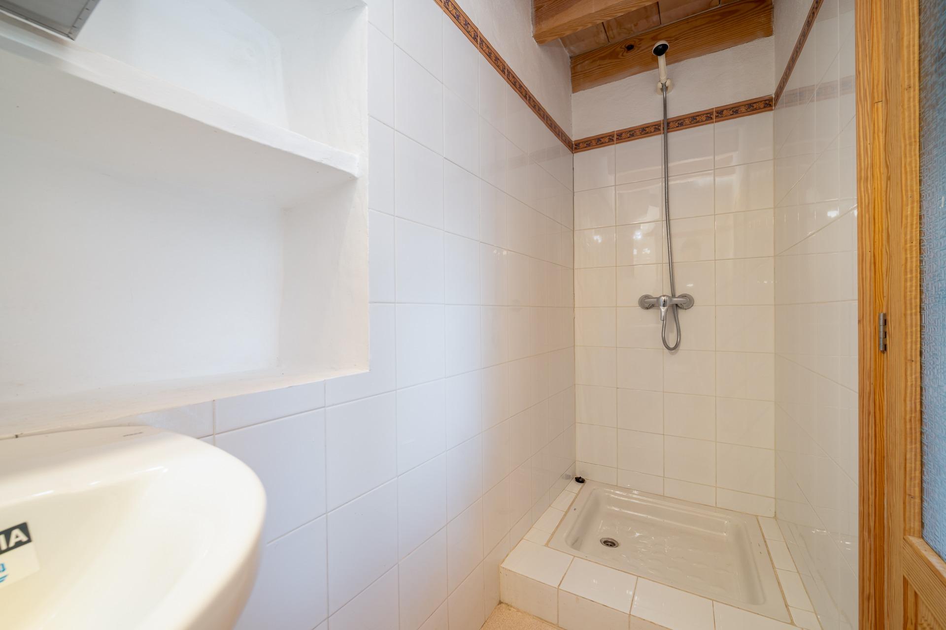 The first floor features a main bedroom with a built-in wardrobe and a full bathroom equipped with a walk-in shower.