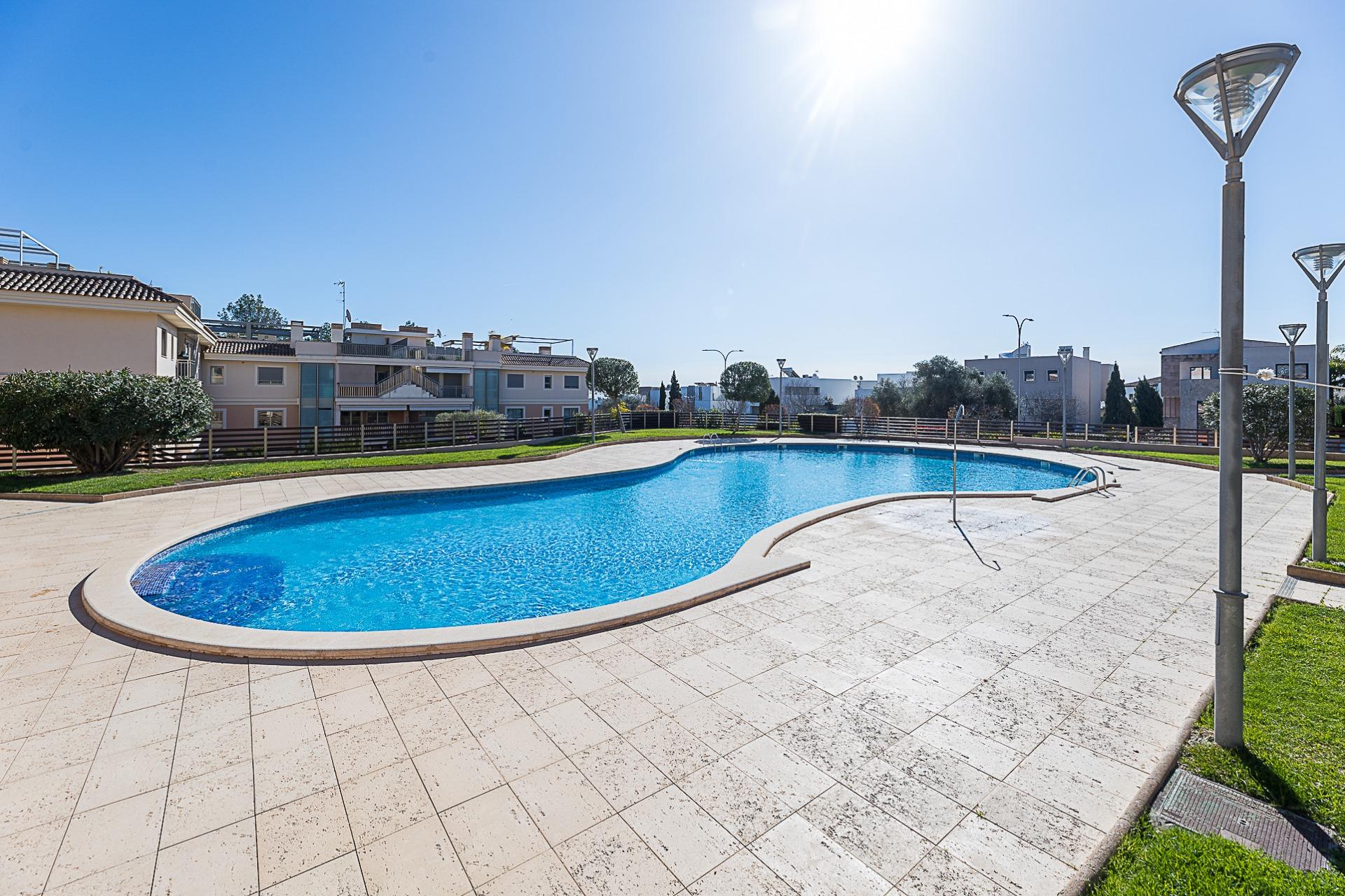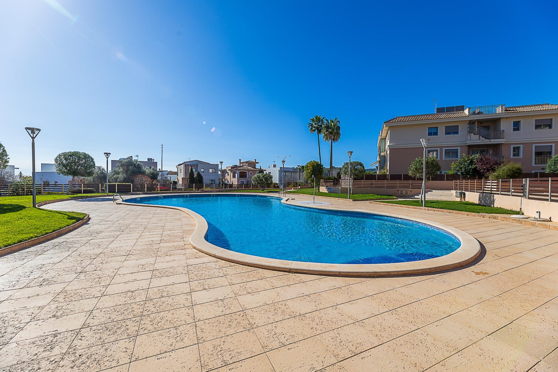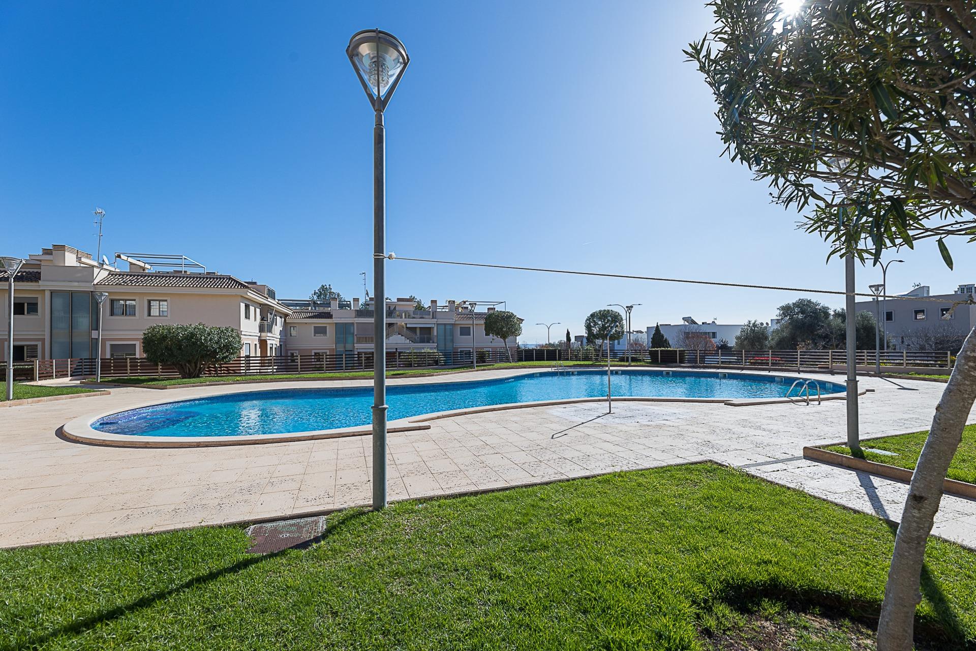 It is part of a well-maintained residential community with a swimming pool and communal areas, designed for comfort and year-round living. Key features include a fully equipped kitchen, built-in wardrobes, air conditioning, lift, private parking space and storage room. An ideal option both as a permanent residence or a second home in Mallorca.