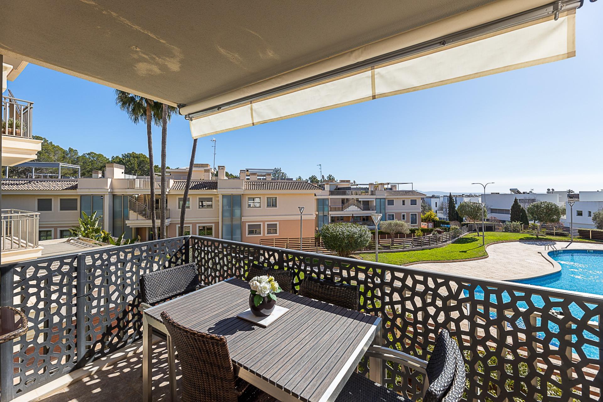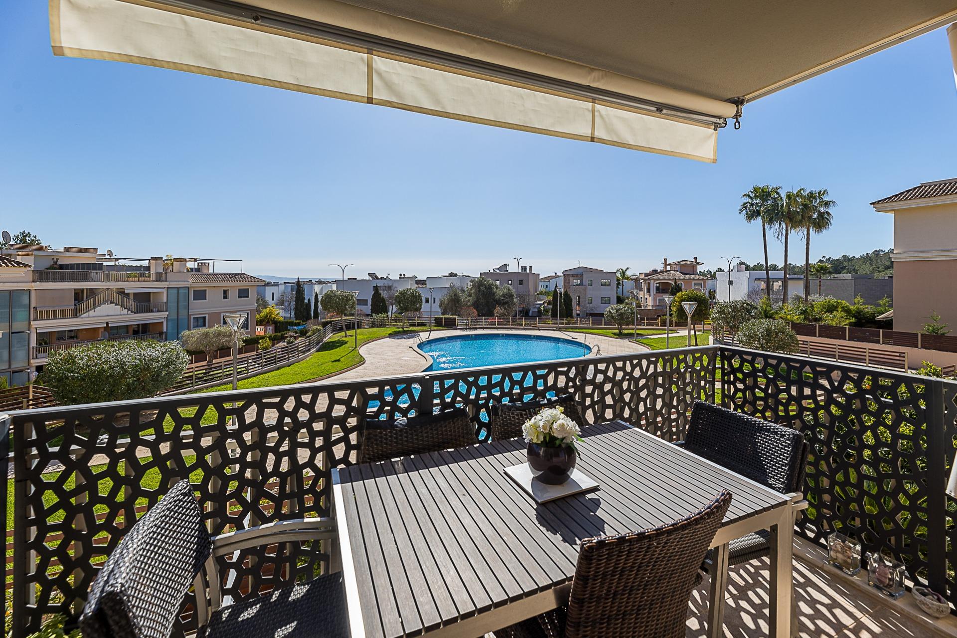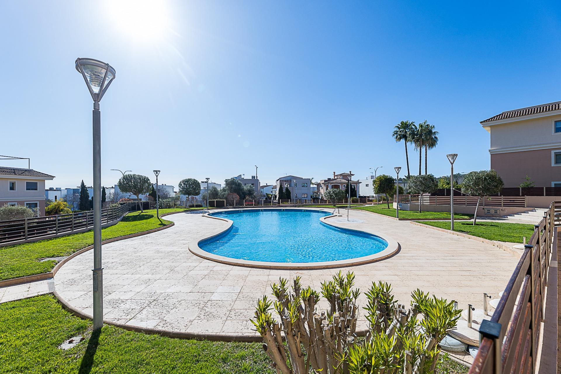 It is part of a well-maintained residential community with a swimming pool and communal areas, designed for comfort and year-round living. Key features include a fully equipped kitchen, built-in wardrobes, air conditioning, lift, private parking space and storage room. An ideal option both as a permanent residence or a second home in Mallorca.