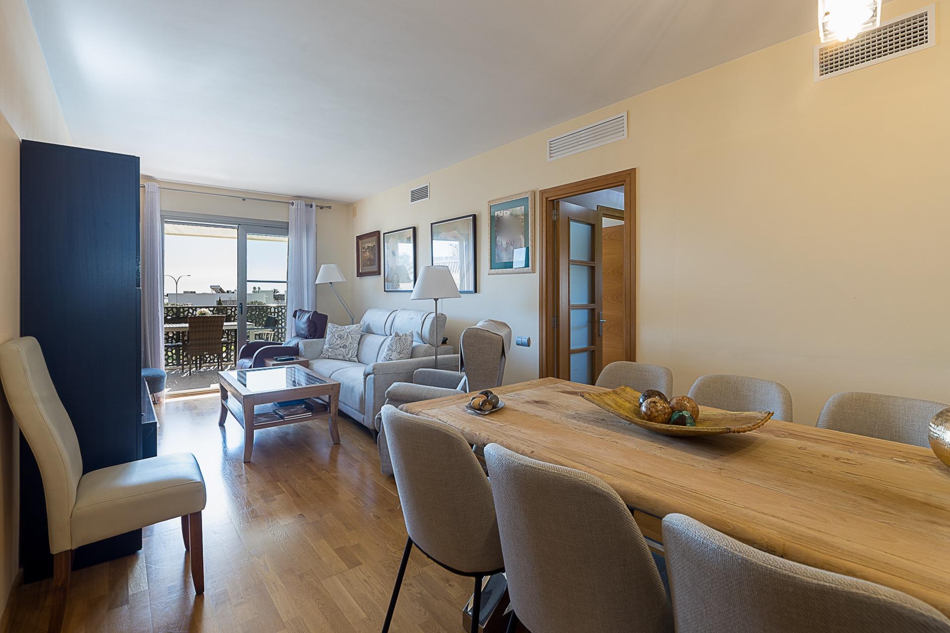 The property offers approximately 89 m² built area, with 77 m² of usable space and a pleasant 12 m² terrace. It is distributed into 3 bedrooms, 2 full bathrooms and a spacious living-dining area with direct access to the terrace.
