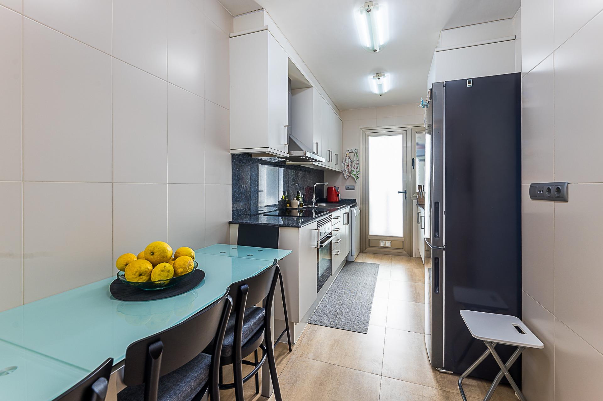 Inside, the living-dining area stands out for its brightness and direct connection to the terrace, creating a comfortable and inviting space. The terrace, with open views over the pool, is one of the property’s main highlights.