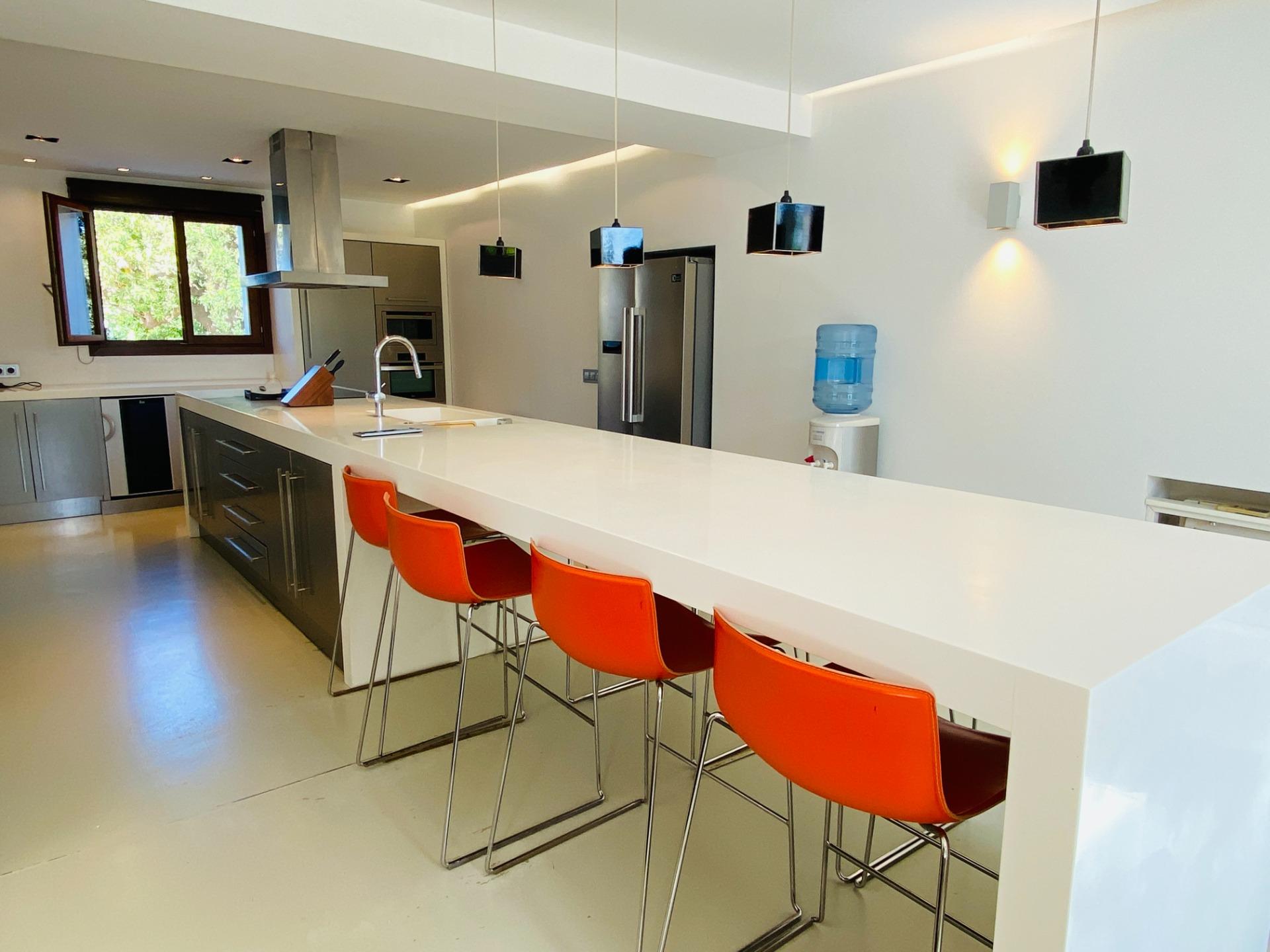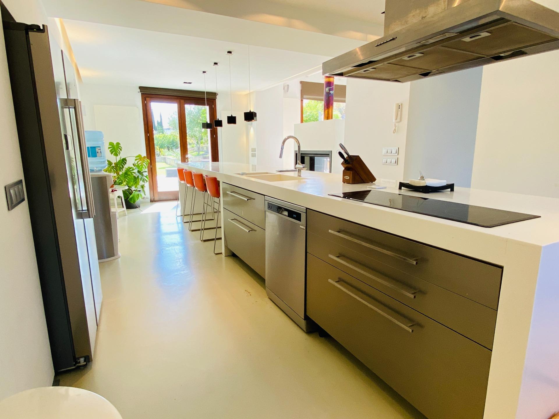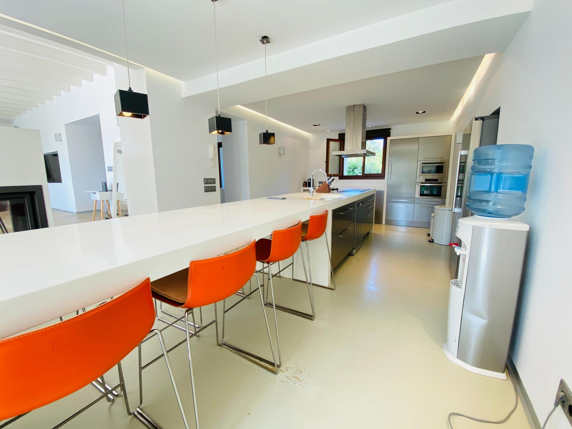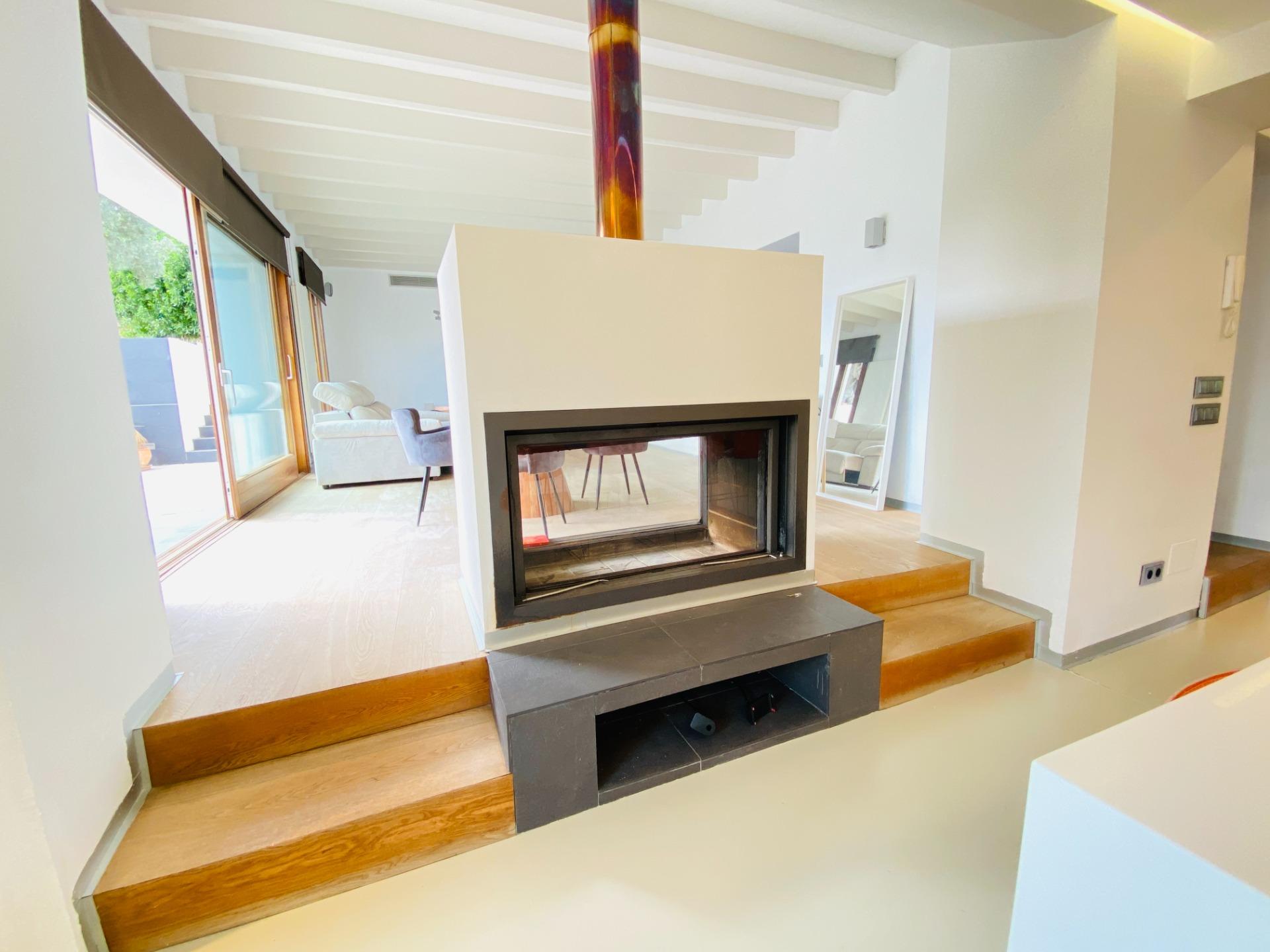 Distribuido en planta baja con su amplio hall de entrada de doble altura, desde donde accedes a su luminoso salón con chimenea y sus grandes ventanales con vistas al jardín, la cocina abierta con su larga isla, totalmente equipada y su diseño vanguardista convierten esta estancia en un acogedor lugar donde disfrutar de la familia y amigos entre fogones.