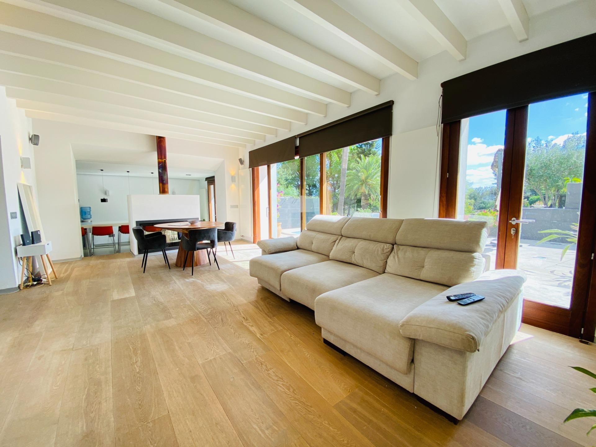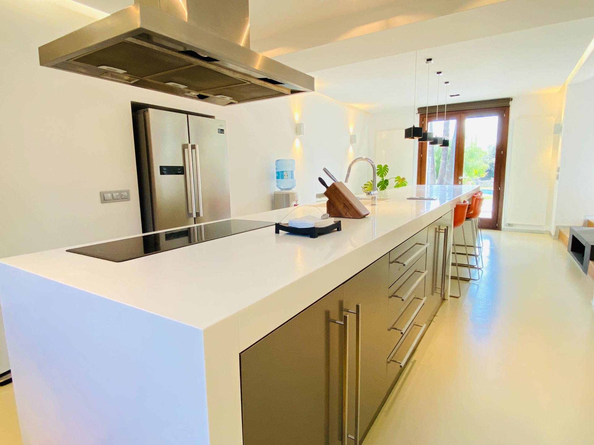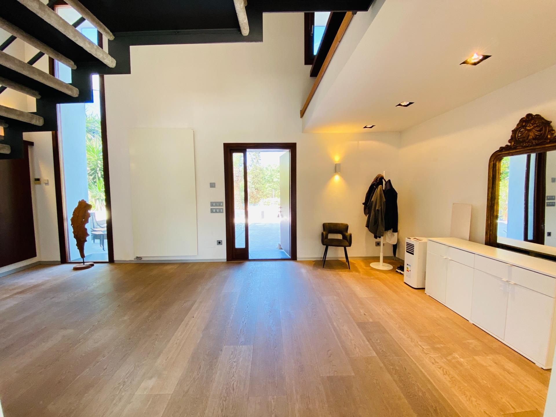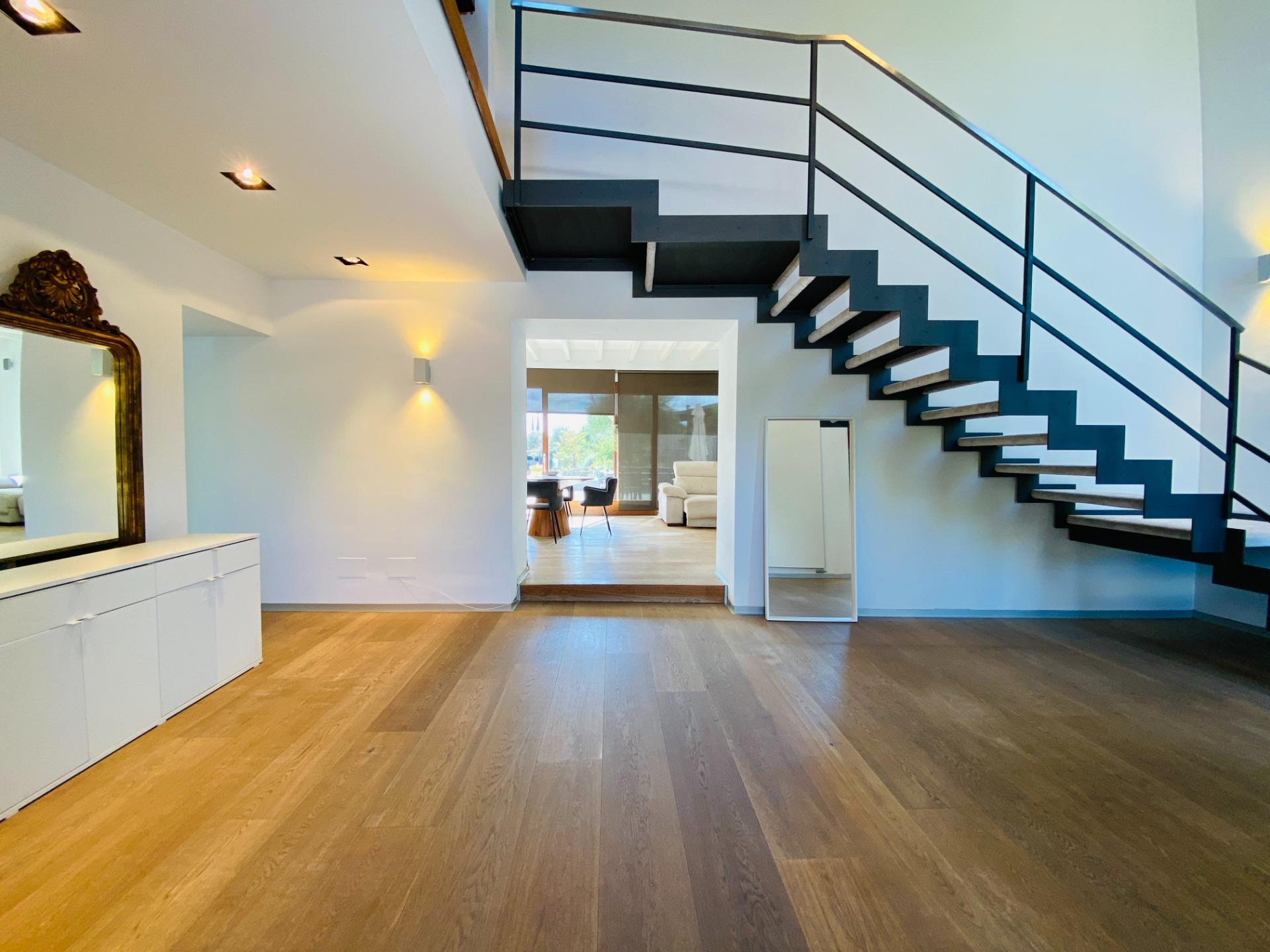 Distribuido en planta baja con su amplio hall de entrada de doble altura, desde donde accedes a su luminoso salón con chimenea y sus grandes ventanales con vistas al jardín, la cocina abierta con su larga isla, totalmente equipada y su diseño vanguardista convierten esta estancia en un acogedor lugar donde disfrutar de la familia y amigos entre fogones.