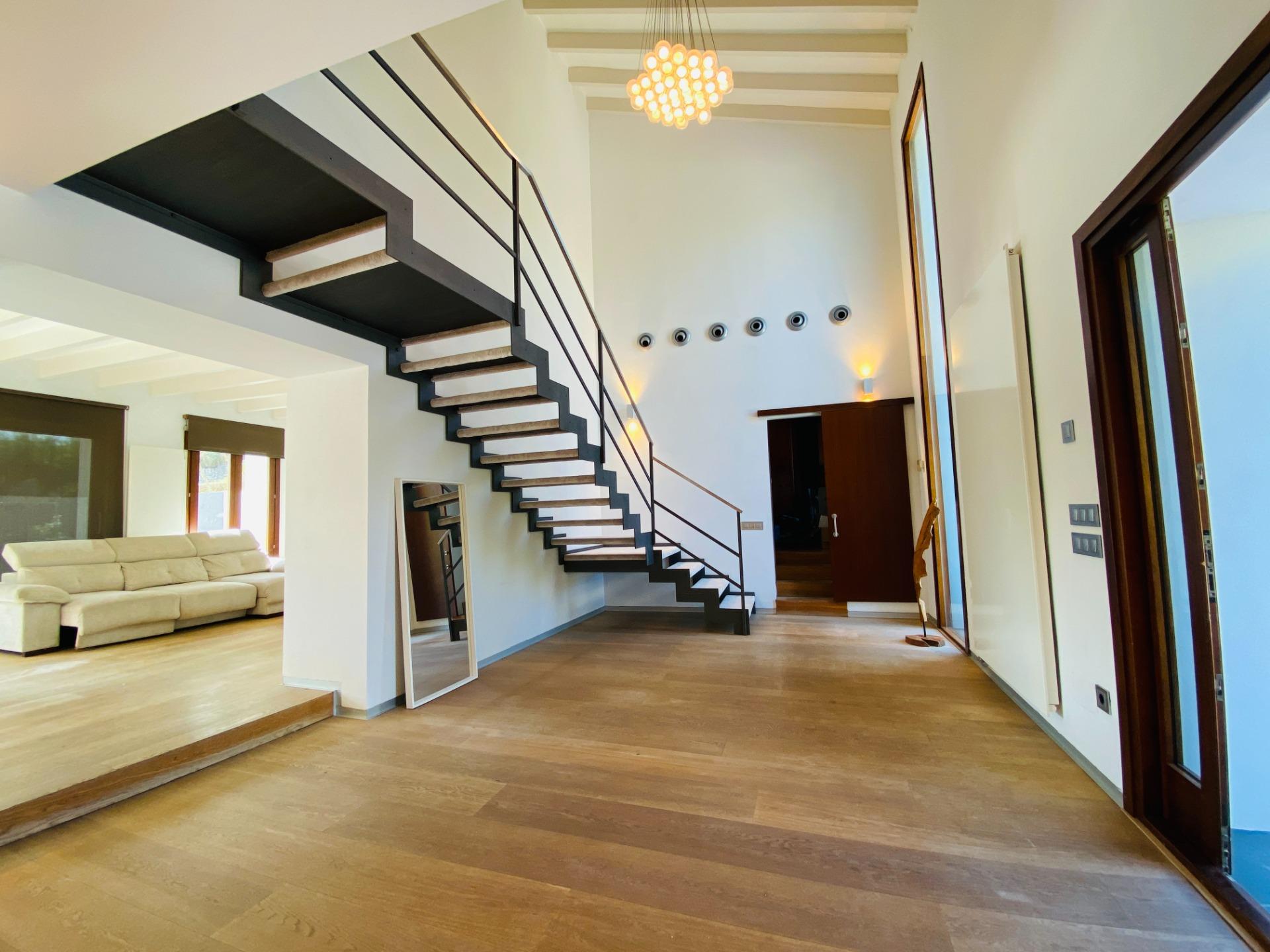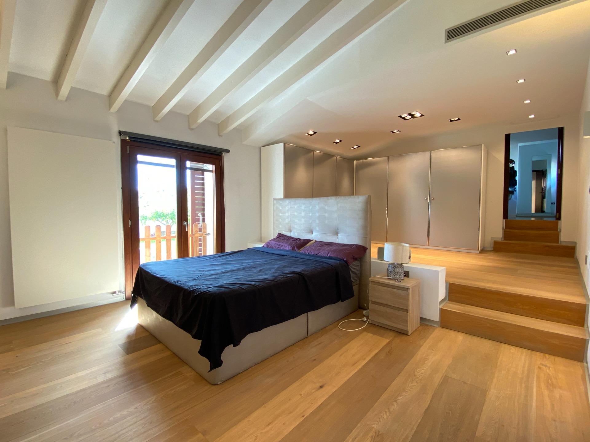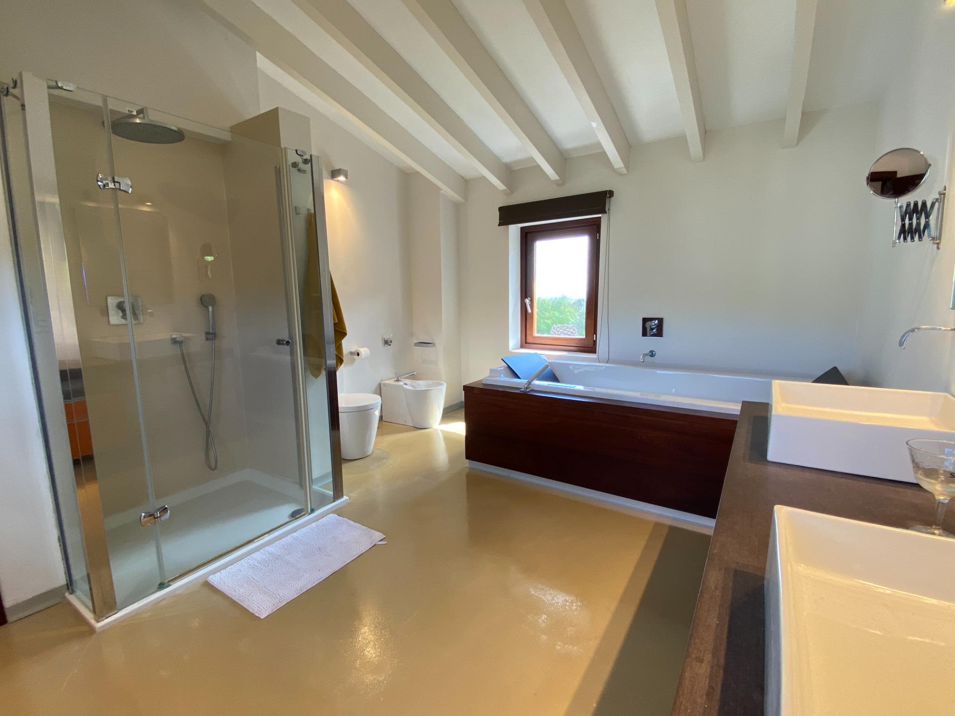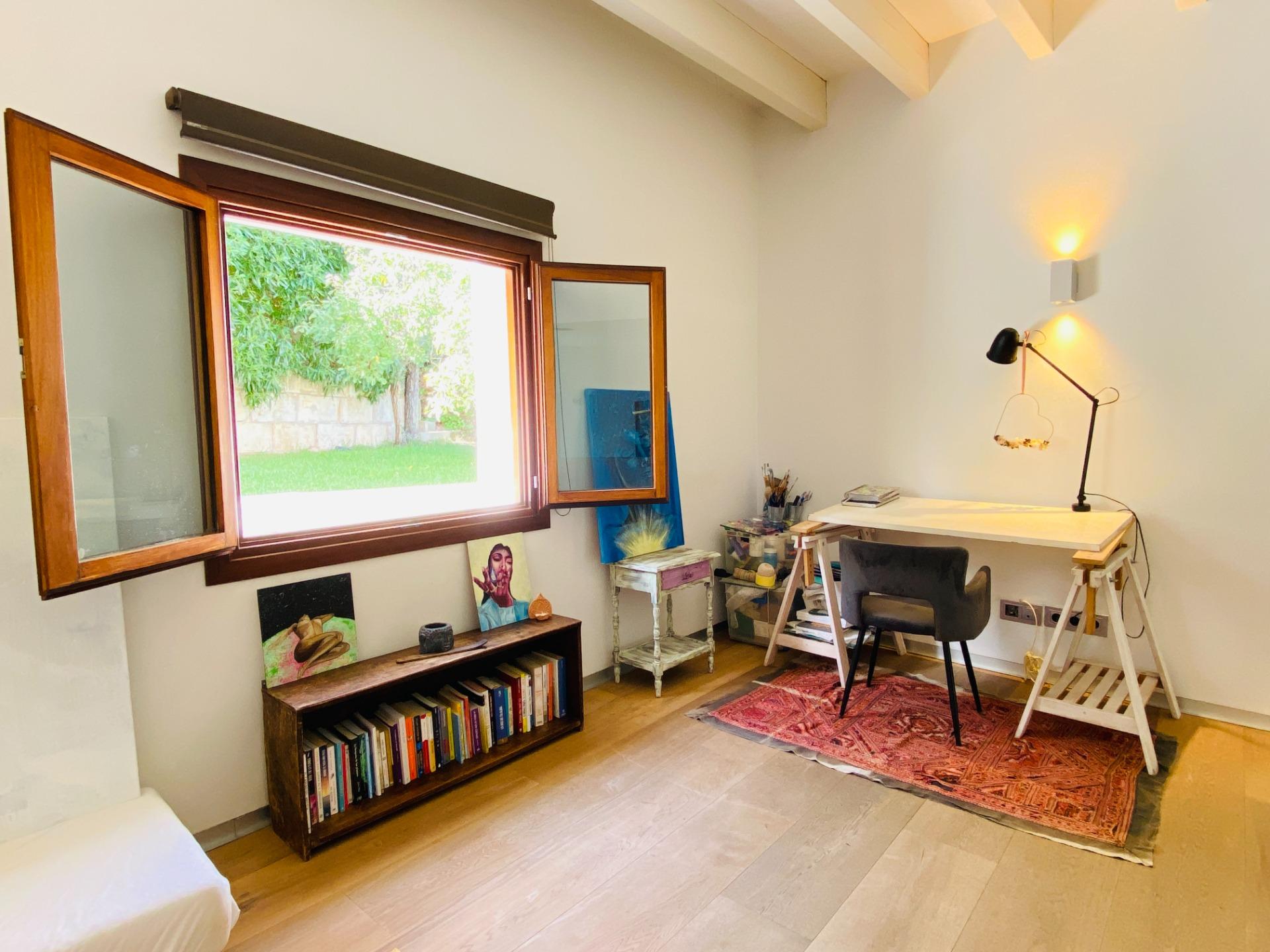 Subiendo a la primera planta por su escalera de hierro forjado, tendrás una zona abierta de oficina o lugar de lectura, una segunda habitación con vestidor y baño en suite y la enorme habitación principal, con su vestidor abierto y su magnifico baño con ducha y jacuzzi, para terminar con un segundo baño turco.