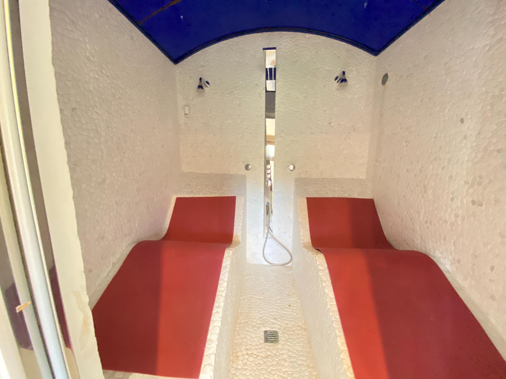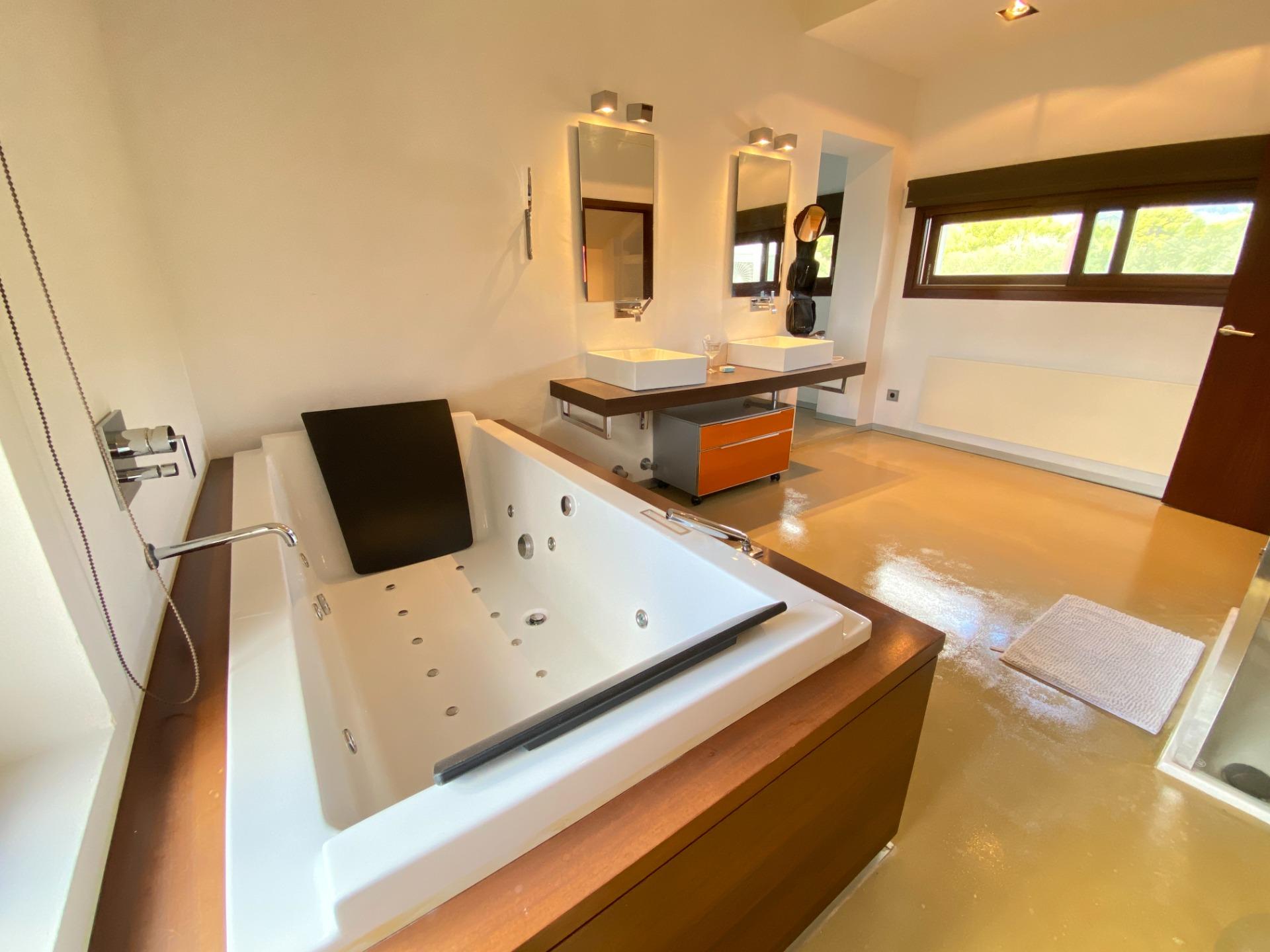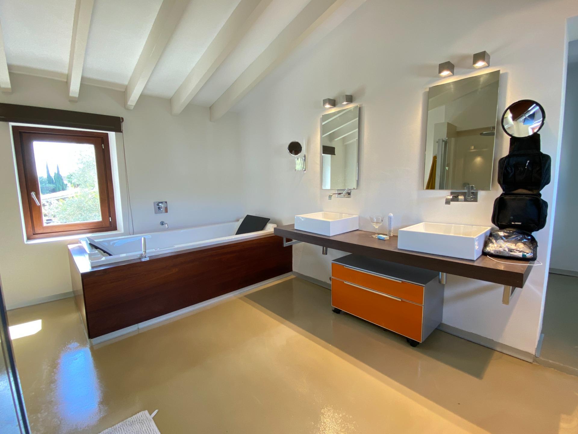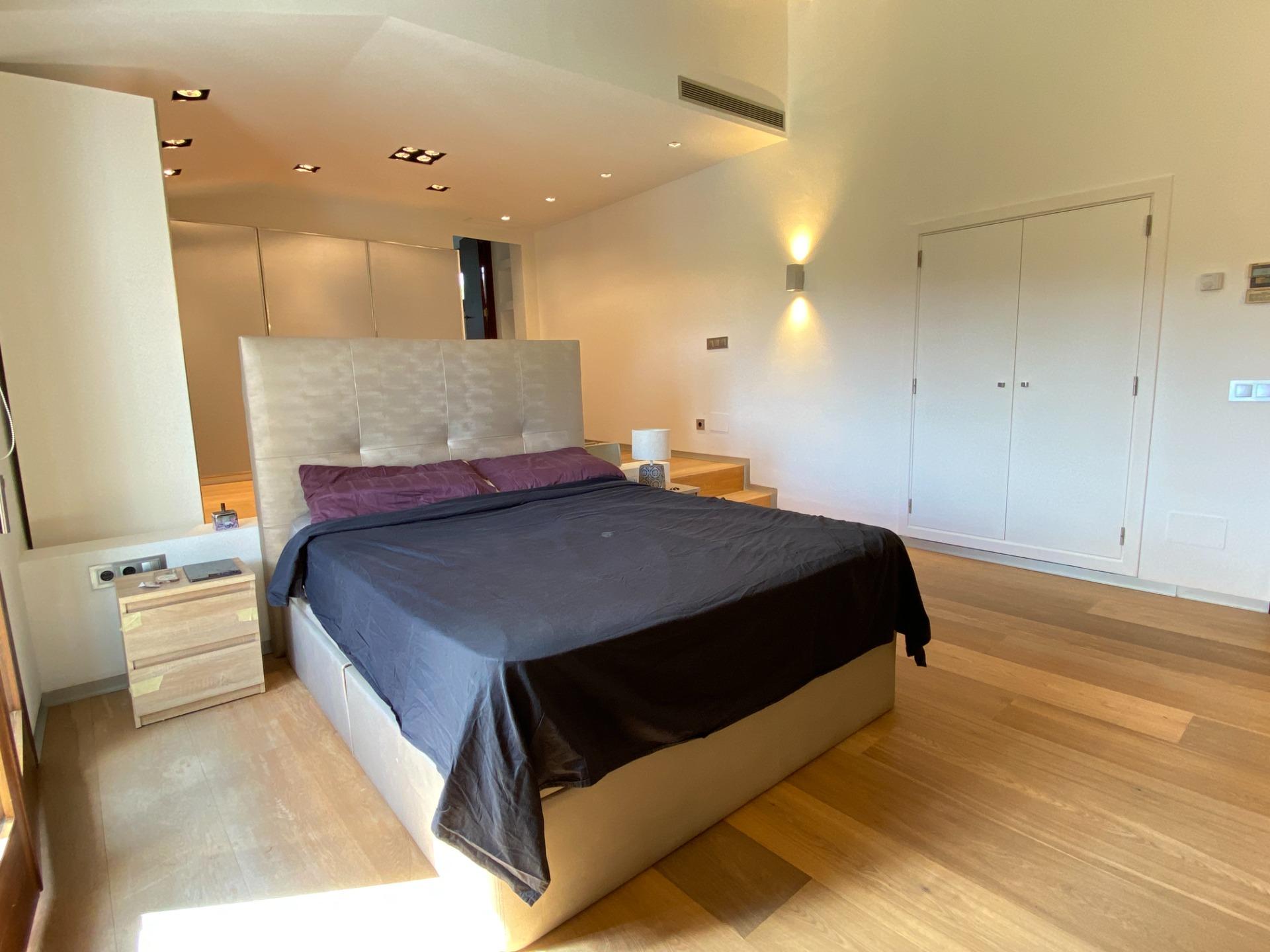 Subiendo a la primera planta por su escalera de hierro forjado, tendrás una zona abierta de oficina o lugar de lectura, una segunda habitación con vestidor y baño en suite y la enorme habitación principal, con su vestidor abierto y su magnifico baño con ducha y jacuzzi, para terminar con un segundo baño turco.