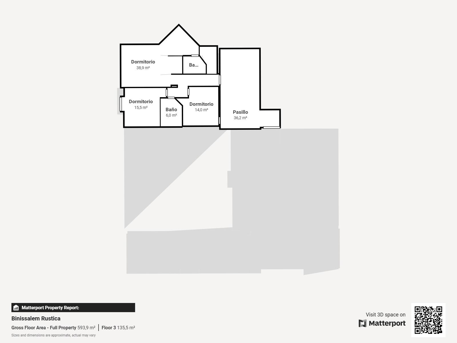 Nada mas entrar a travs de su patio interior, dispones de una habitacin con bao en suite y vestidor para visitas, totalmente independiente de la casa principal, que esta distribuida en planta baja con un espacioso saln de techos altos y grandes ventanales con vistas al sur, una habitacin doble y un bao completo, gran cocina sin equipar, despensa y coladuria. En la primera planta se encuentran dos habitaciones dobles con un bao compartido y la espectacular suite con vestidor y bao.
