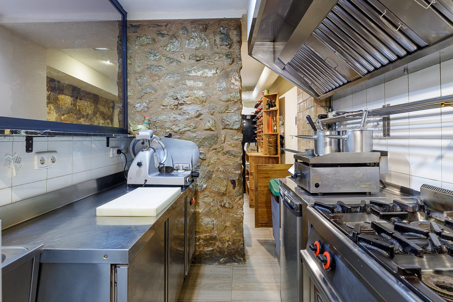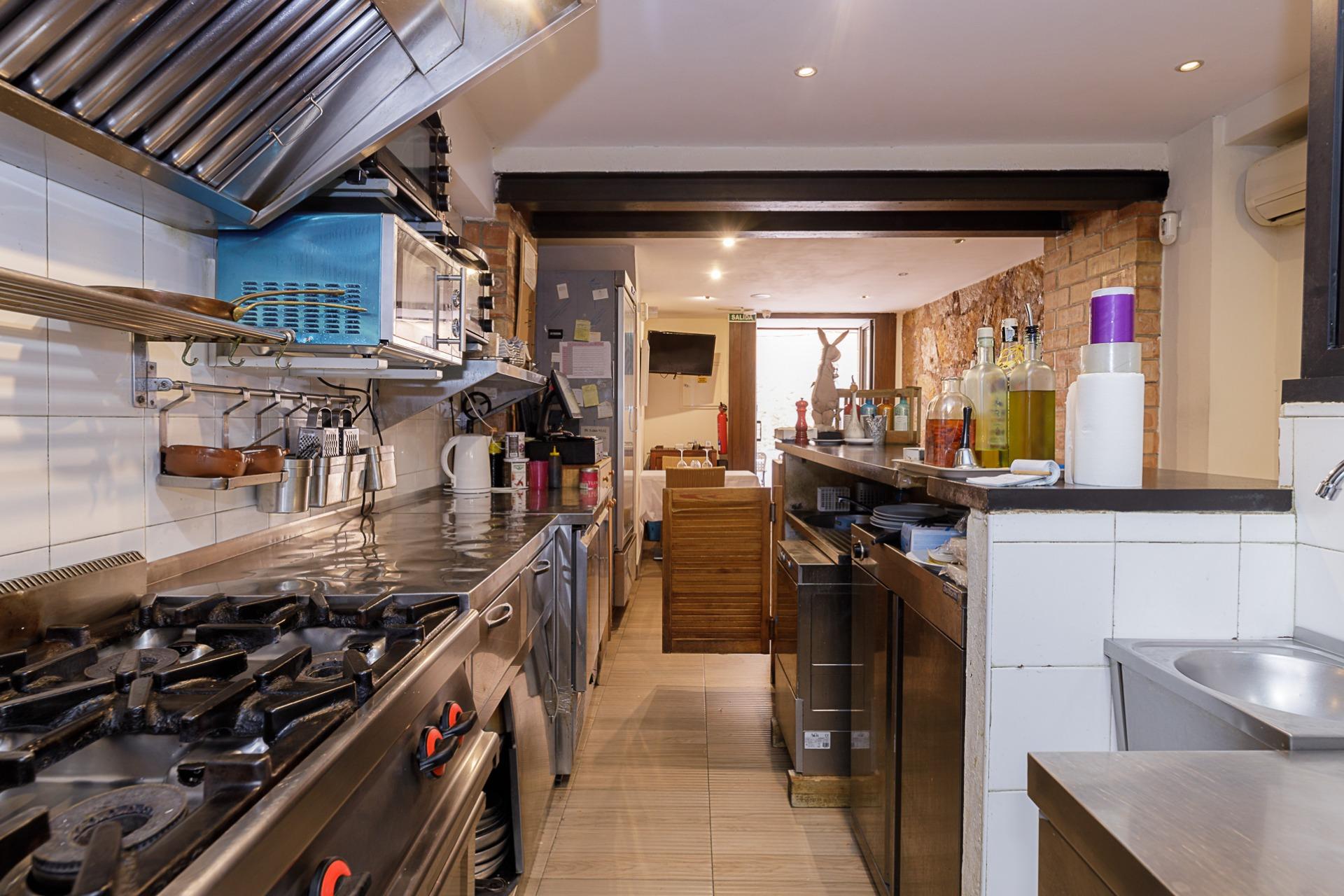 Listo para operar con el siguiente inventario: Cocina de 4 fogones, plancha 30x50cm, lavavajillas, lava-vasos, nevera alta vino blanco, 3 neveras medias vino tinto, 1 horno con 5 fogones, nevera industrial doble puerta, 2 microondas, nevera baja conservación doble puerta, mesa platos calientes, nevera baja 2 puertas, nevera alta refrescos, 2 frigoríficos, 2 congeladores horizontales y 1 vertical, mobiliario interior (mesas y sillas) para 40 comensales y mesas y sillas exteriores para terraza. (Precio inventario: 30.000€ negociables).