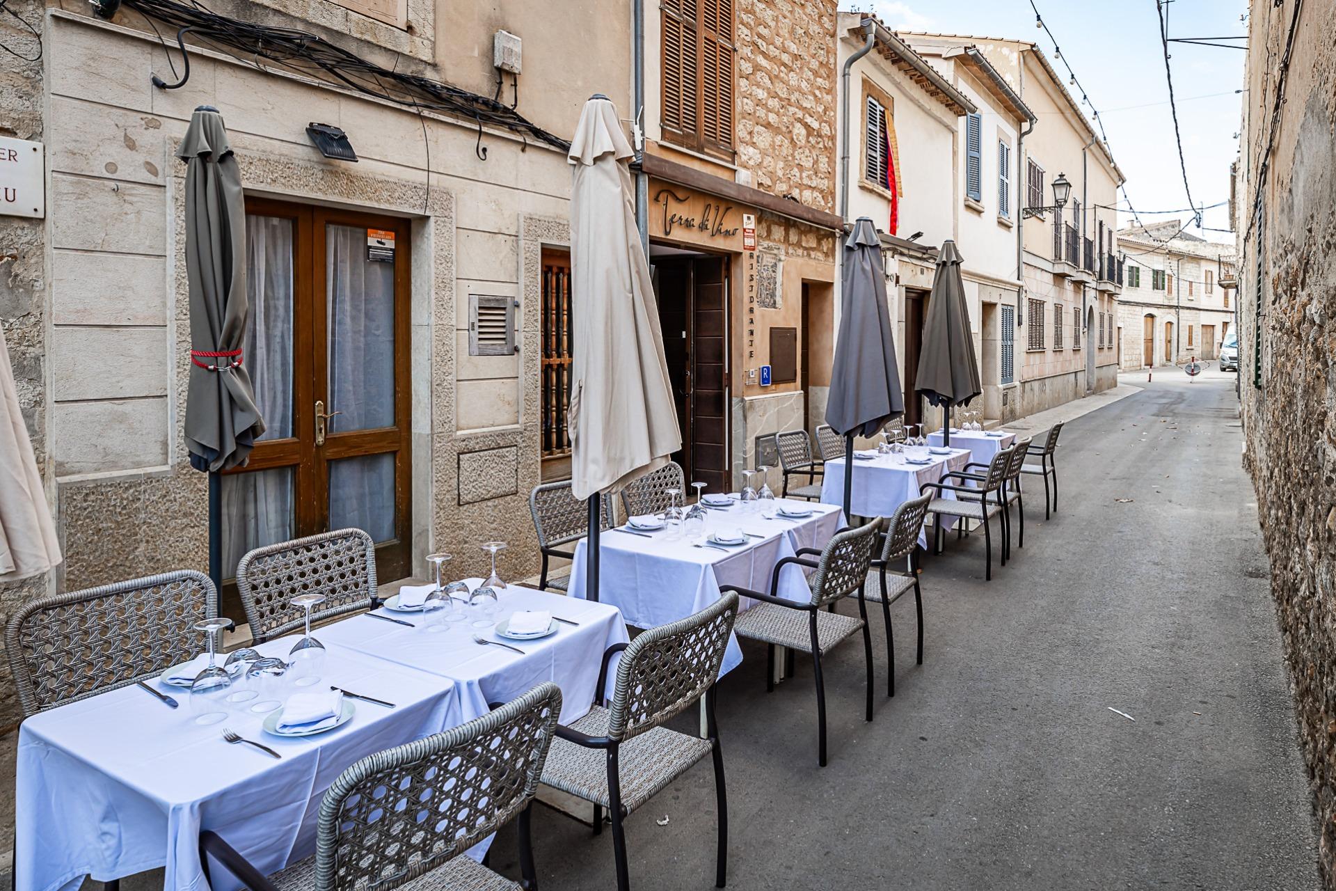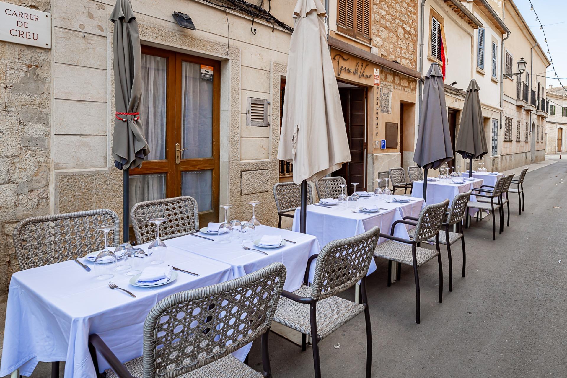 Tienes posibilidad de montar mesas exteriores en la calle cerrada al transito enfrente del portal del propio restaurante, y también en la plaza del pueblo, donde dispondrás de un espacio con vistas al campanario de la iglesia.