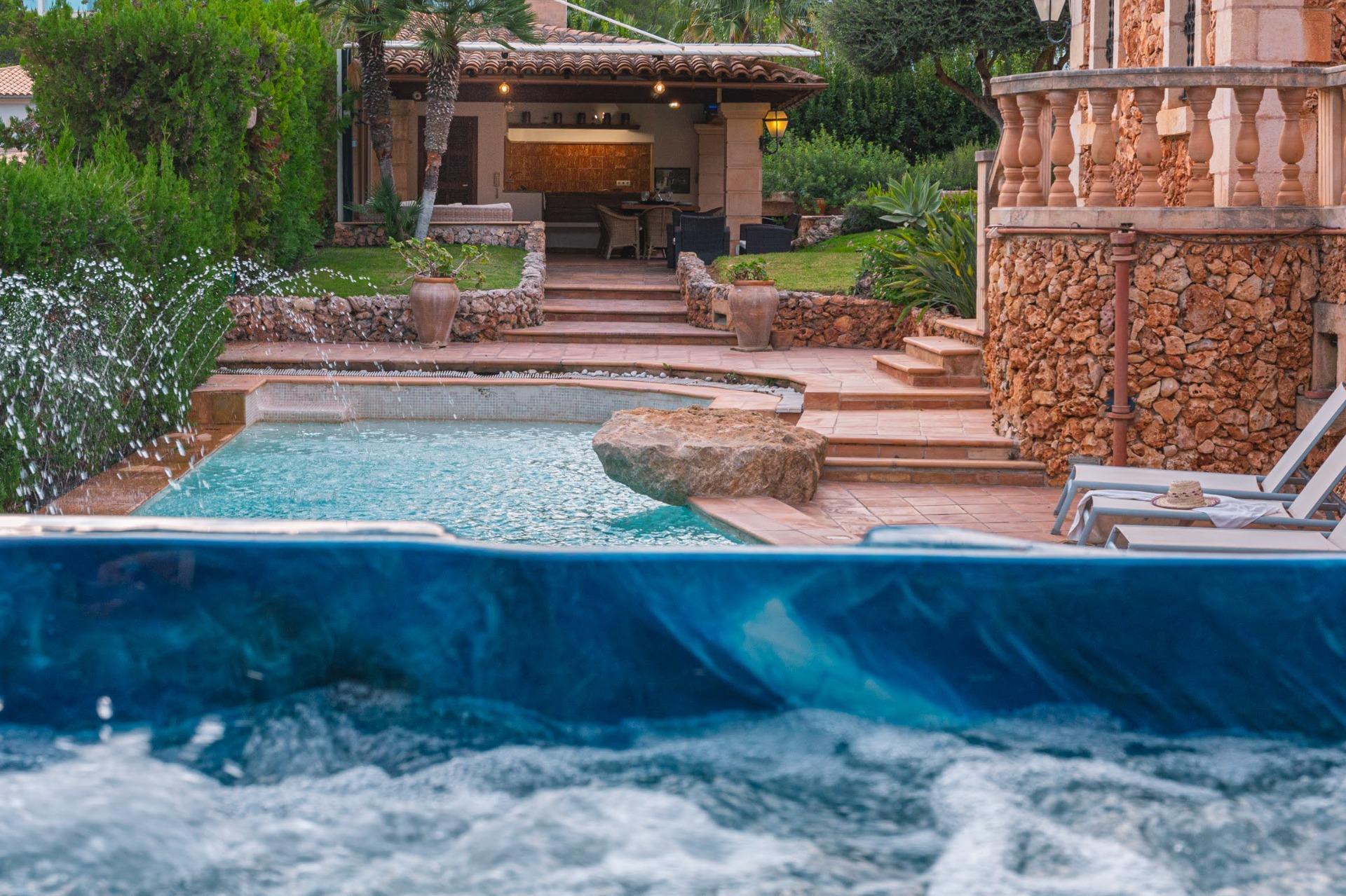En la zona de Relax se encuentra la gran piscina de 50m2, terraza solarium, Jacuzzi, sauna y la puerta de acceso al camino que nos llevara a una bonita y tranquila Cala....Donde no podrás evitar desconectar tu mente!!!