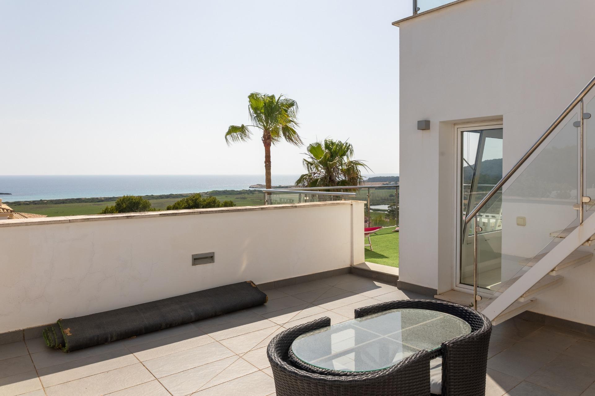 Podemos destacar infinidad de detalles del chalet, pero tenemos que hacer hincapié en sus MARAVILLOSAS VISTAS tanto al mar, como a la playa de Son Bou , como al bosque por su parte posterior. De esto nos damos cuentas al subir a su magnífico solarium situado en la parte mas alta de la propiedad, las vistas son simplemente increibles. Sitio ideal para aquellos que gusten de disfrutar con un buen telescopio el cielo estrellado que Menorca ofrece a diario. Una experiencia inolvidable.