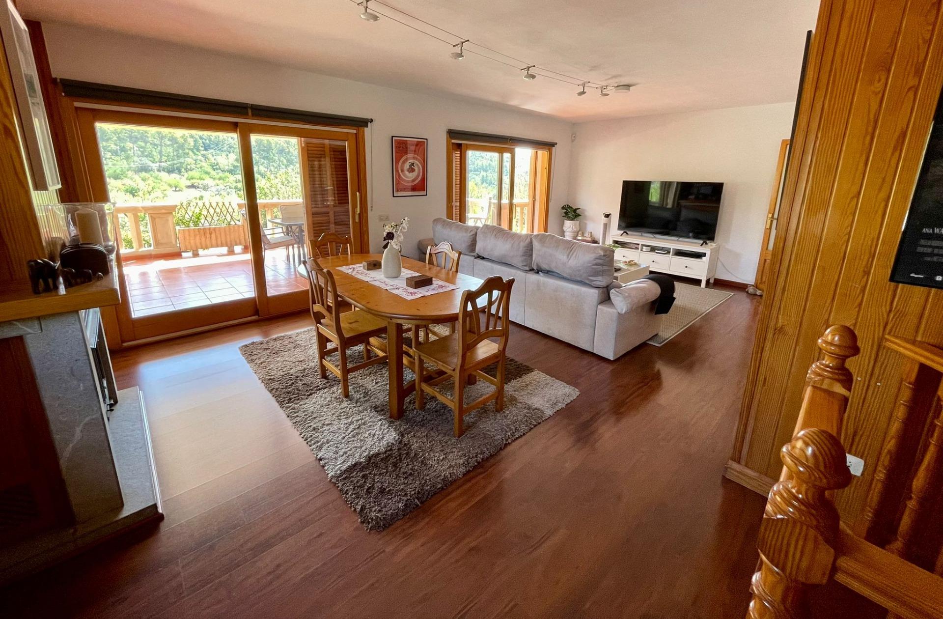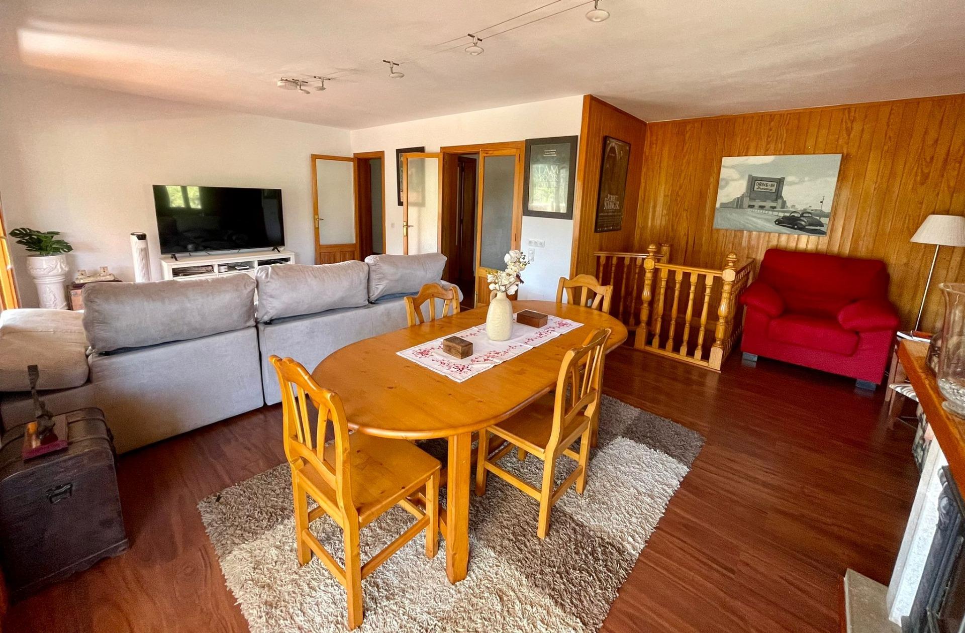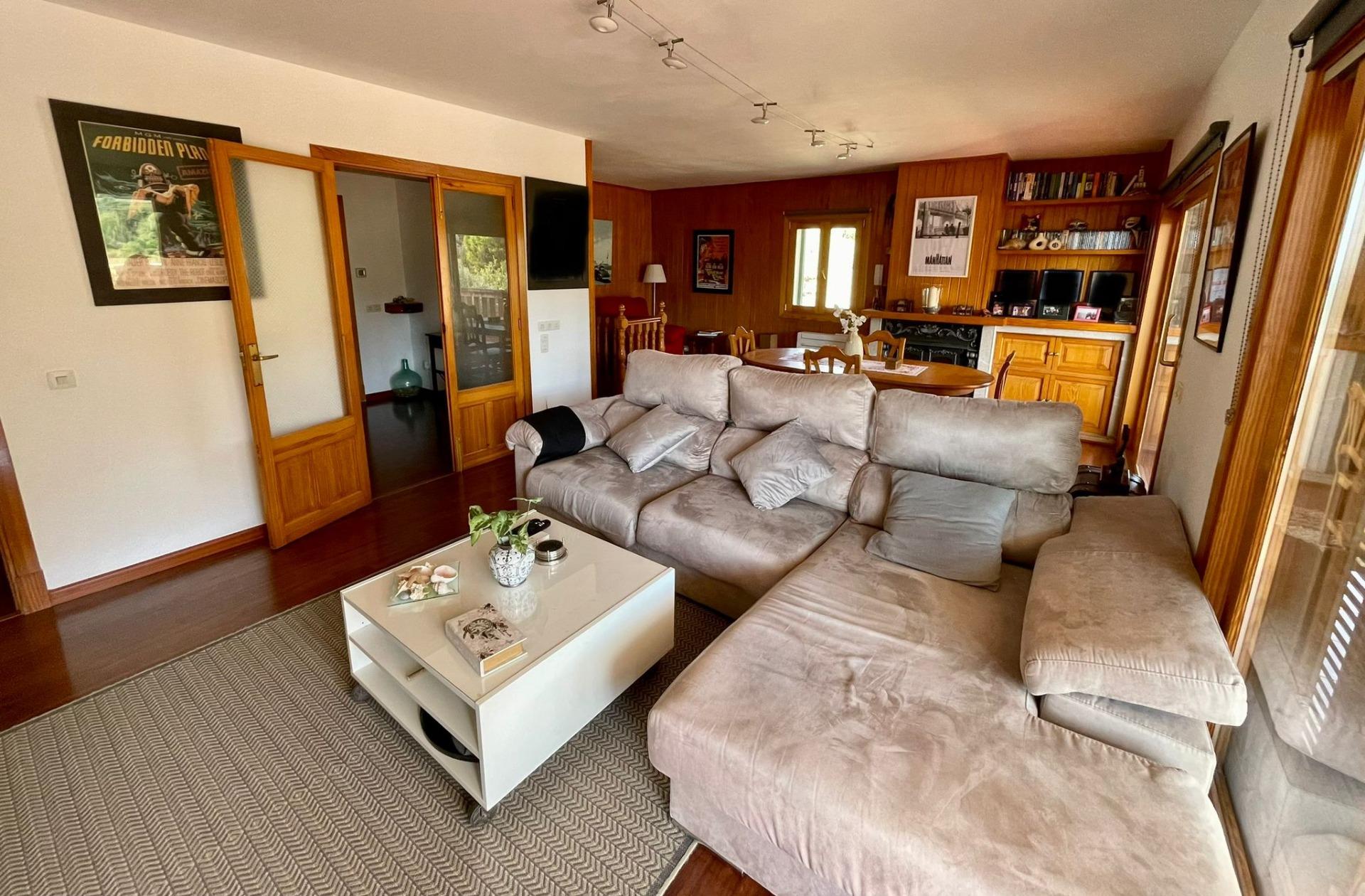 - En la primera planta encontramos 3 dormitorios dobles, 2 baños completos, un amplio salón-comedor con chimenea y preciosas vistas, cocina equipada y amueblada y lavadero, además de una gran terraza.