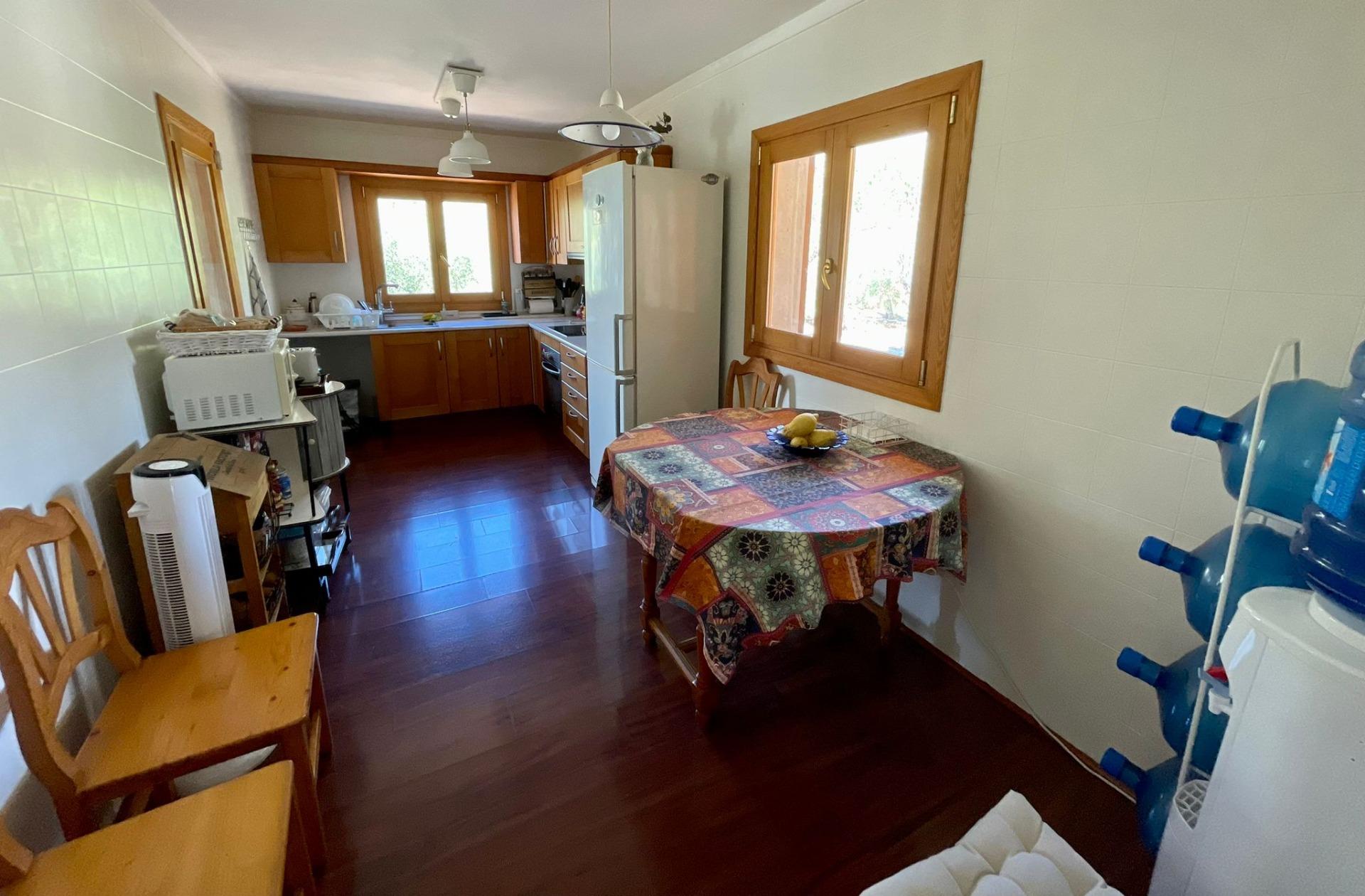 - En la planta baja encontramos 4 dormitorios dobles, 2 baños completos, cocina amueblada y equipada, salón-comedor y un porche.