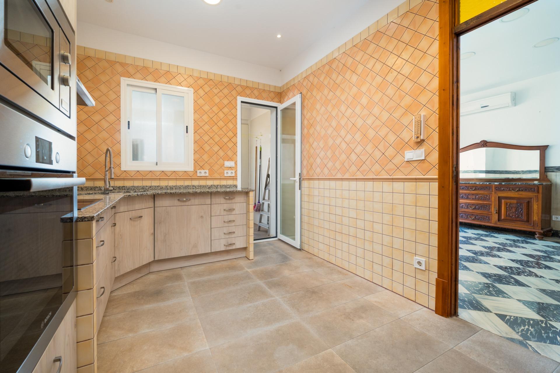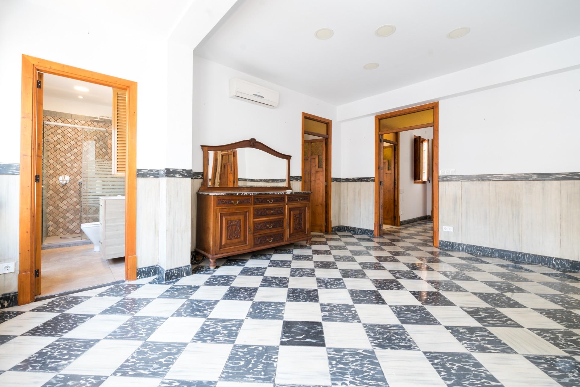 La vivienda principal, en el tercer piso, ofrece 155 m² distribuidos en dos luminosos salones de 31 y 21 m², cocina equipada con despensa y lavandería, cuatro dormitorios (tres dobles y uno simple) con armarios empotrados y dos baños completos. El edificio no dispone de ascensor, pero cuenta con silla salvaescaleras para facilitar el acceso.