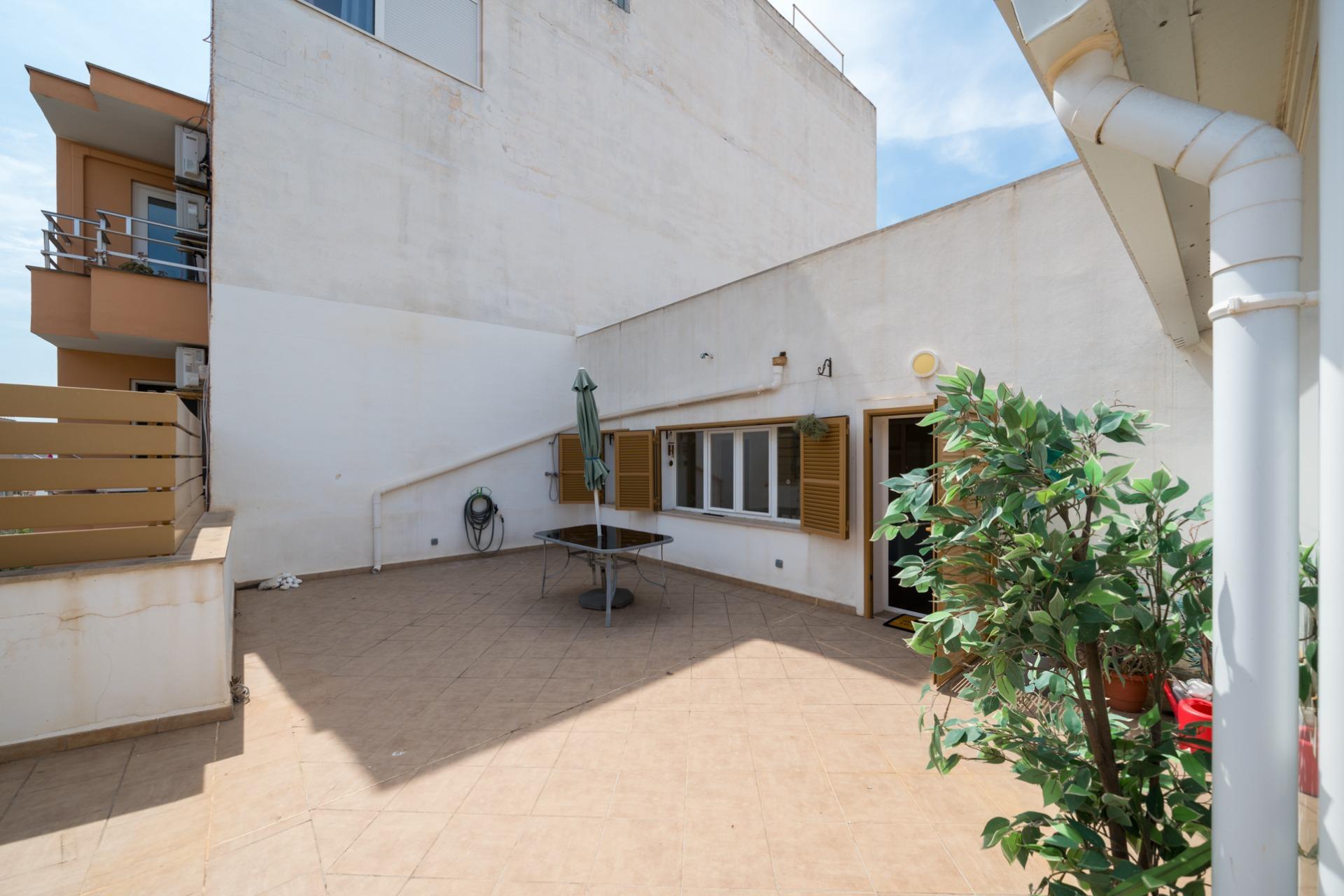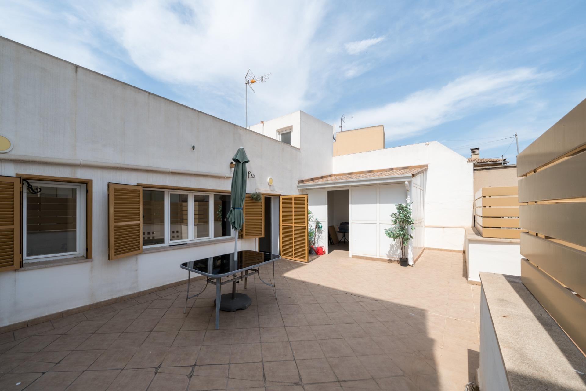 Exclusiva propiedad de dos plantas con terraza privada en Son Armadams. Conjunto de 240 m² construidos: la vivienda principal en tercera planta, junto con una planta superior reformada ideal para invitados o estudio, y salida a una terraza de 65 m².
