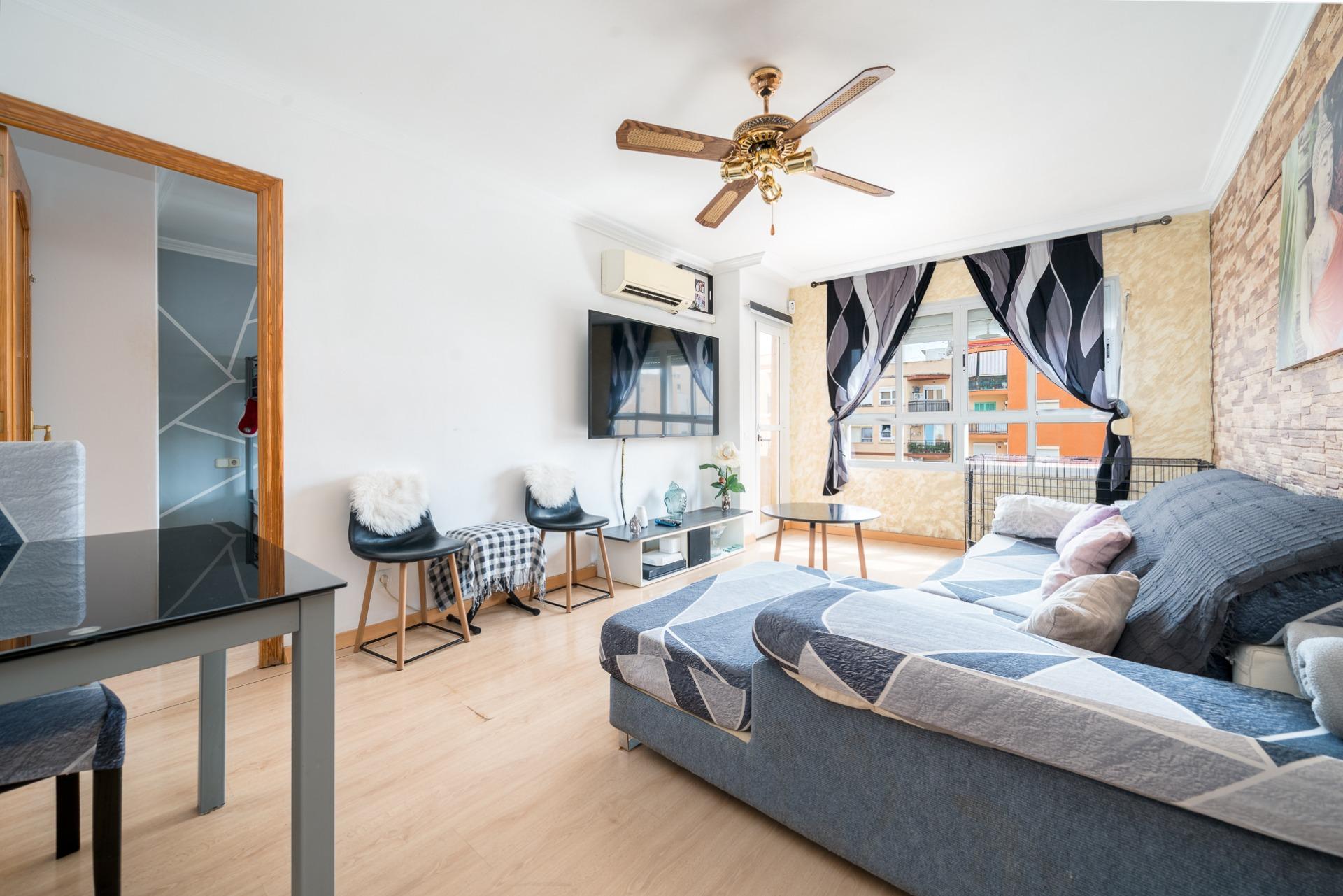 Te presentamos esta acogedora vivienda situada en la tranquila zona de Son Cotoner. Se trata de un cuarto piso SIN ASCENSOR ideal para quienes buscan un hogar funcional y bien ubicado. La propiedad se vende amueblada y cuenta con 3 habitaciones, dos de ellas dobles y una individual, perfectas para una familia, despacho o cuarto de invitados. Dispone de un baño completo y una cocina equipada, lista para entrar a vivir. El salón-comedor tiene acceso a un pequeño balcón que aporta luz natural y ventilación. Además, el edificio cuenta con una terraza comunitaria, ideal para disfrutar del aire libre. La vivienda se encuentra en buen estado, con suelo de gres y tarima flotante, aire acondicionado frío/calor, y carpintería exterior mixta de madera y Climalit, que ofrece un buen aislamiento térmico y acústico. Como extra, incluye un trastero privado. Una opción interesante en una zona bien comunicada, con todos los servicios cerca y a pocos minutos del centro de Palma. Precio: 285.000€