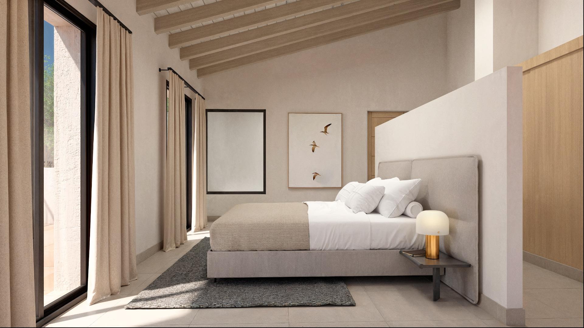 En Es Camí de Sa Ràpita, una de las zonas costeras más exclusivas de Mallorca, se encuentra a la venta este terreno cercado de 14.119 m², con licencia para construir. El proyecto contempla una vivienda moderna distribuida en varias plantas: en el sótano se ubicarán las instalaciones, mientras que la planta baja ofrece un amplio y luminoso recibidor, un salón en dos ambientes con cocina abierta y una zona de noche con dos dormitorios dobles con armarios empotrados, un baño completo y una suite principal con vestidor y baño en suite. Desde aquí se accede a un porche de 11 m² y a la piscina de 34 m². La planta superior alberga una espectacular master suite con salida a una terraza desde donde se disfrutan vistas despejadas al jardín y la piscina. Todo esto a solo cinco minutos de la playa de Sa Ràpita, y a apenas diez minutos de Ses Covetes y la famosa playa de Es Trenc, ofreciendo una combinación única de tranquilidad, privacidad y cercanía al mar. Conseguir un terreno de más de 14.000 m² tan próximo a suelo urbano es prácticamente imposible, lo que convierte esta propiedad en una oportunidad única para crear tu hogar soñado o para promotores en busca de un proyecto con gran potencial.