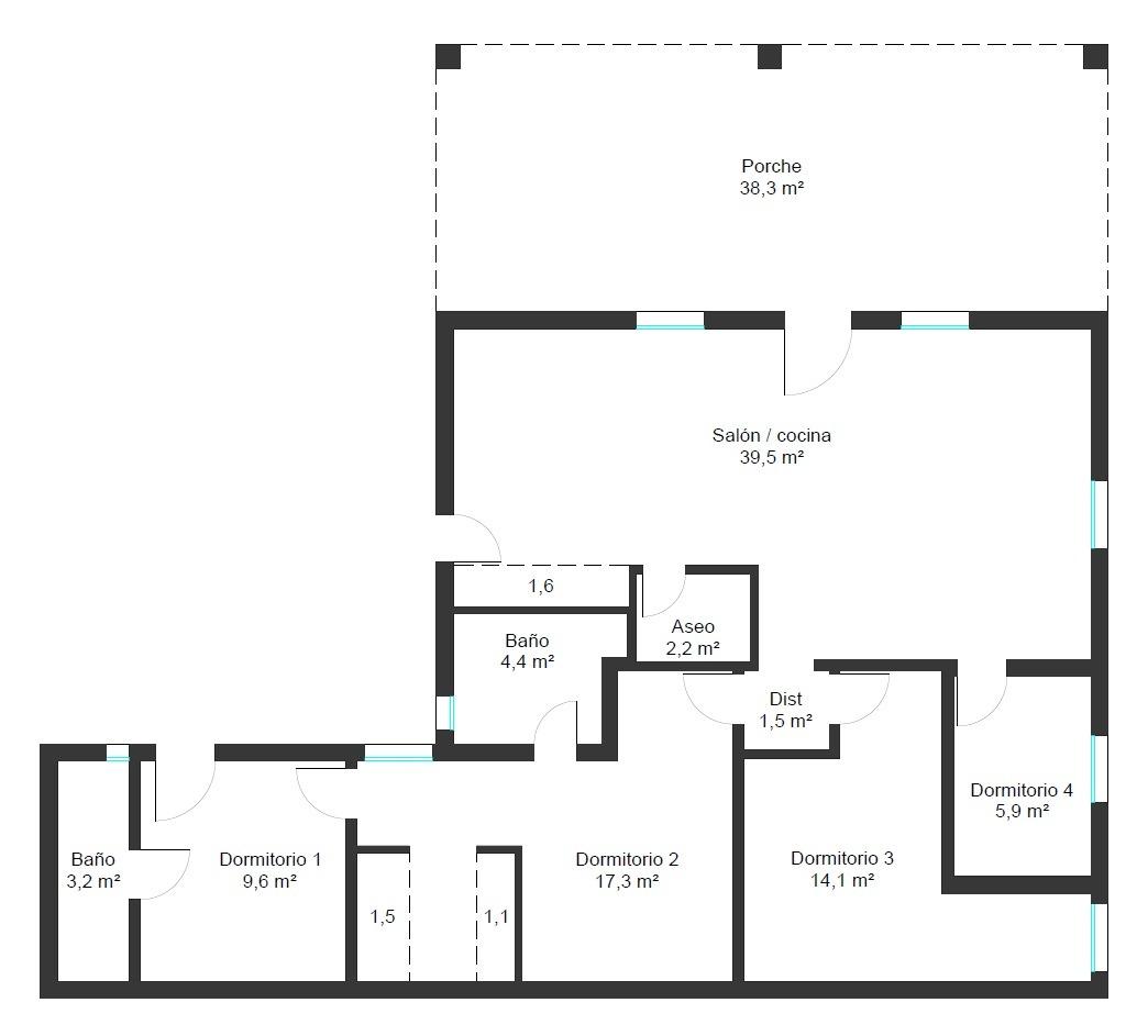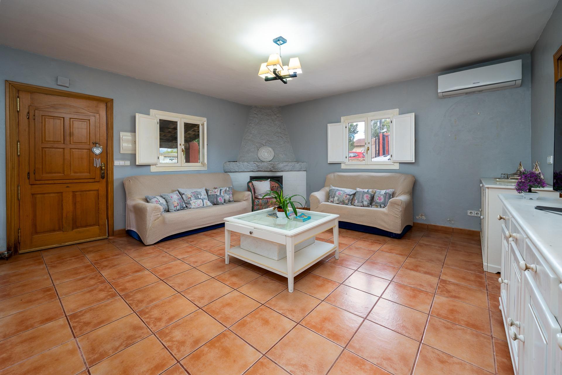 Vivienda principal, construida toda en una sola planta, sobre un solar de 1.719 m2. Distribuida en 4 dormitorios, 2 baños completos con ducha, 1 aseo, cocina amueblada, amplio salón-comedor con chimenea y fantástico porche cenador